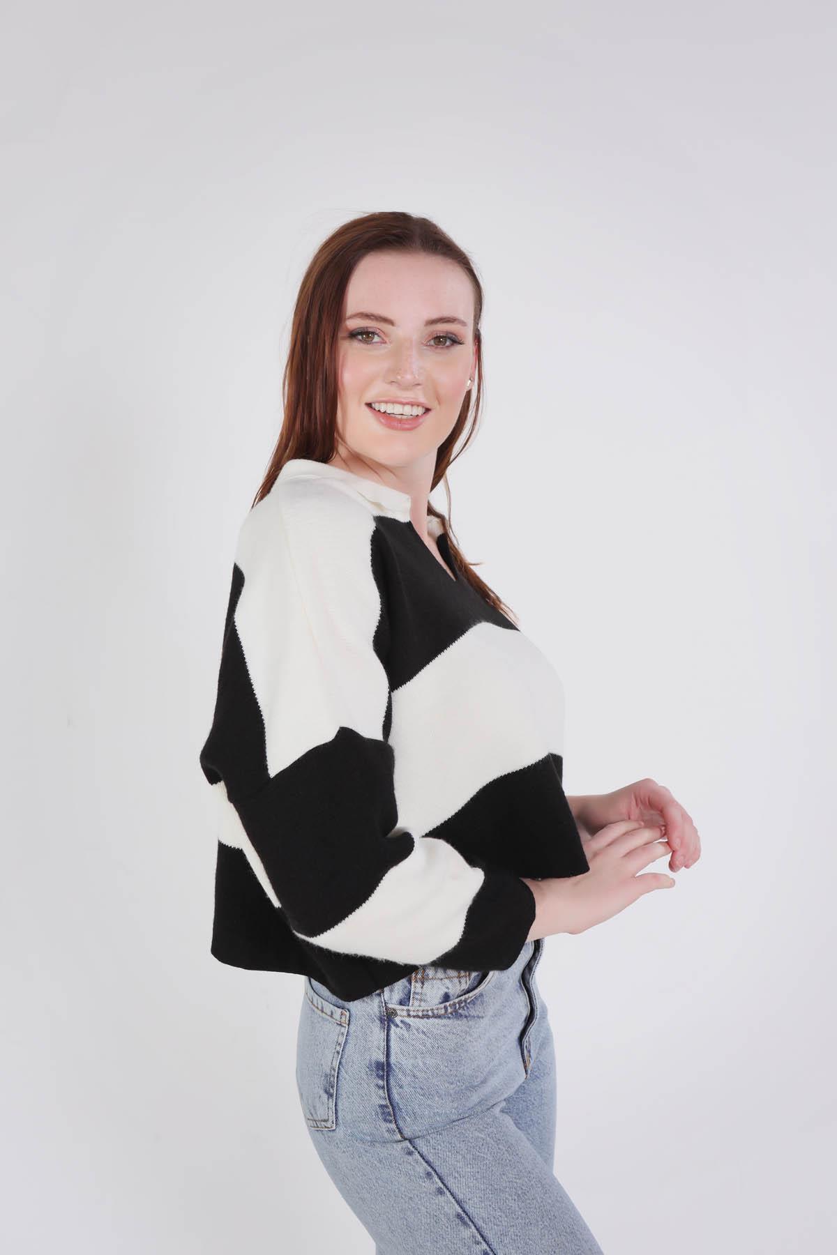 Siyah-Kırmızı Yıldız Baskılı Oversize Kazak 2474 - RAYS Siyah-Kırmızı Yıldız Baskılı Oversize Kazak 2474 - RAYS (1)