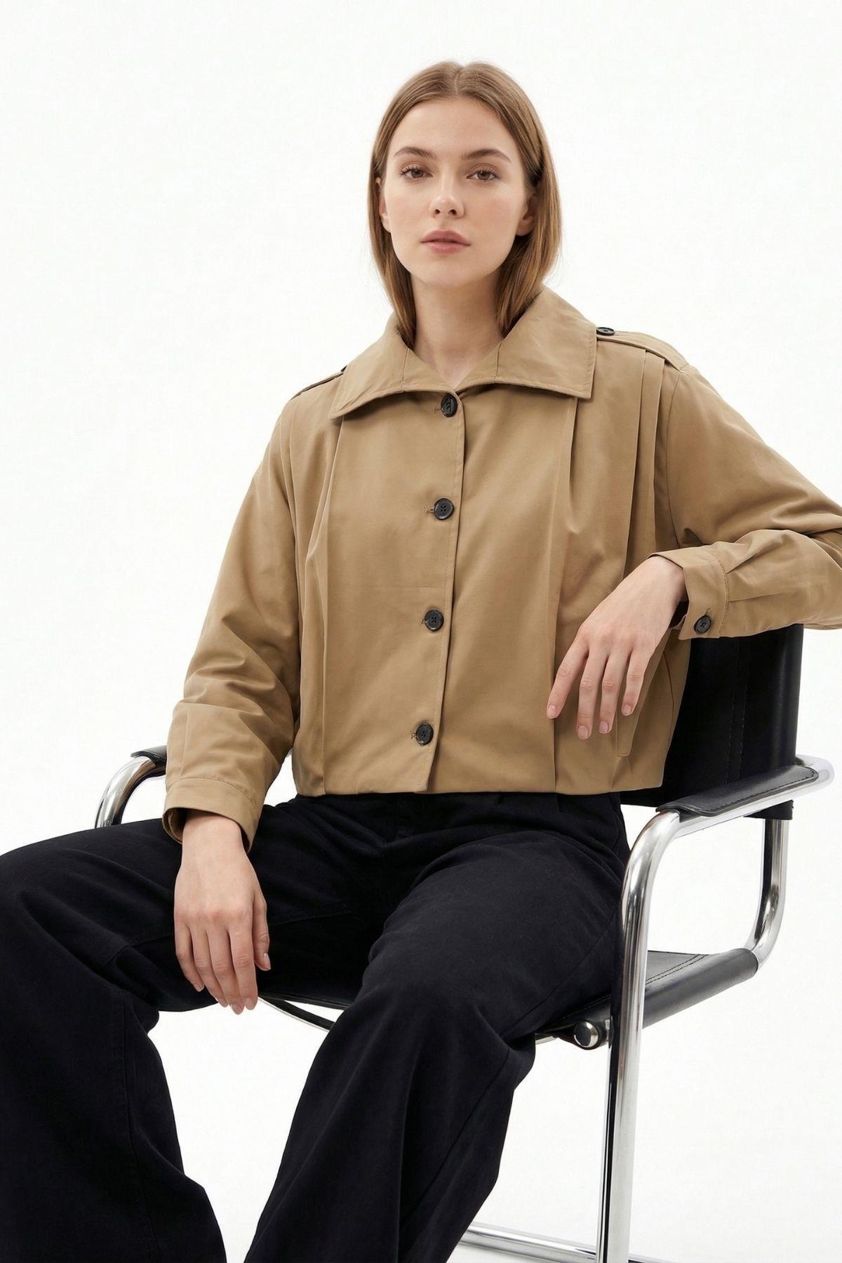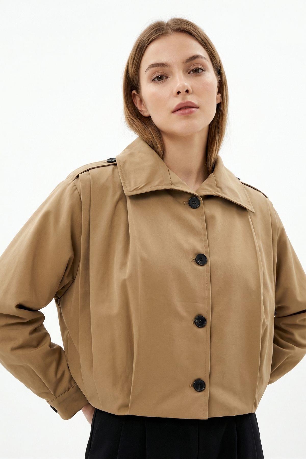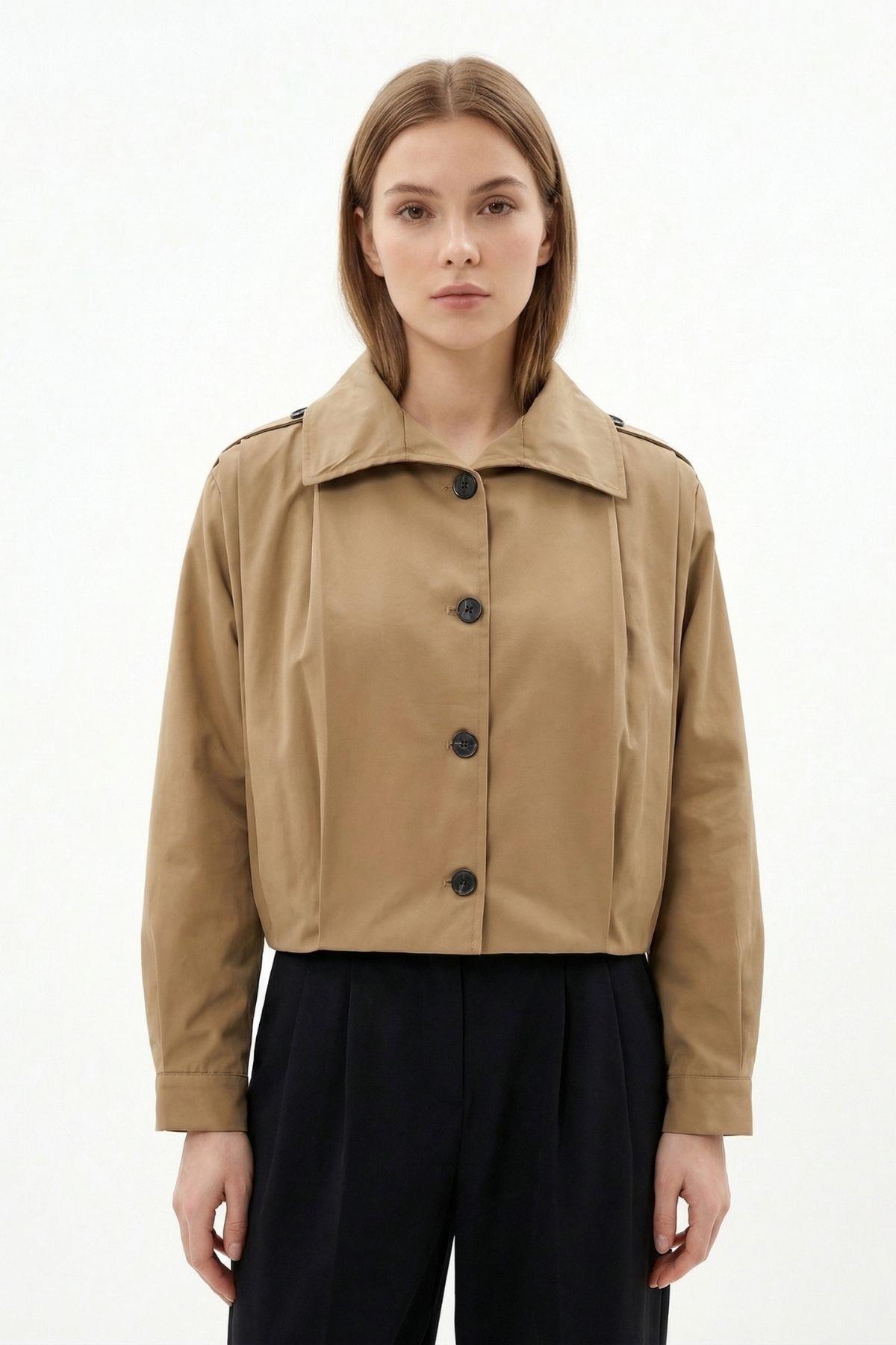 Camel Düğmeli Uzun Kol Ceket 60530