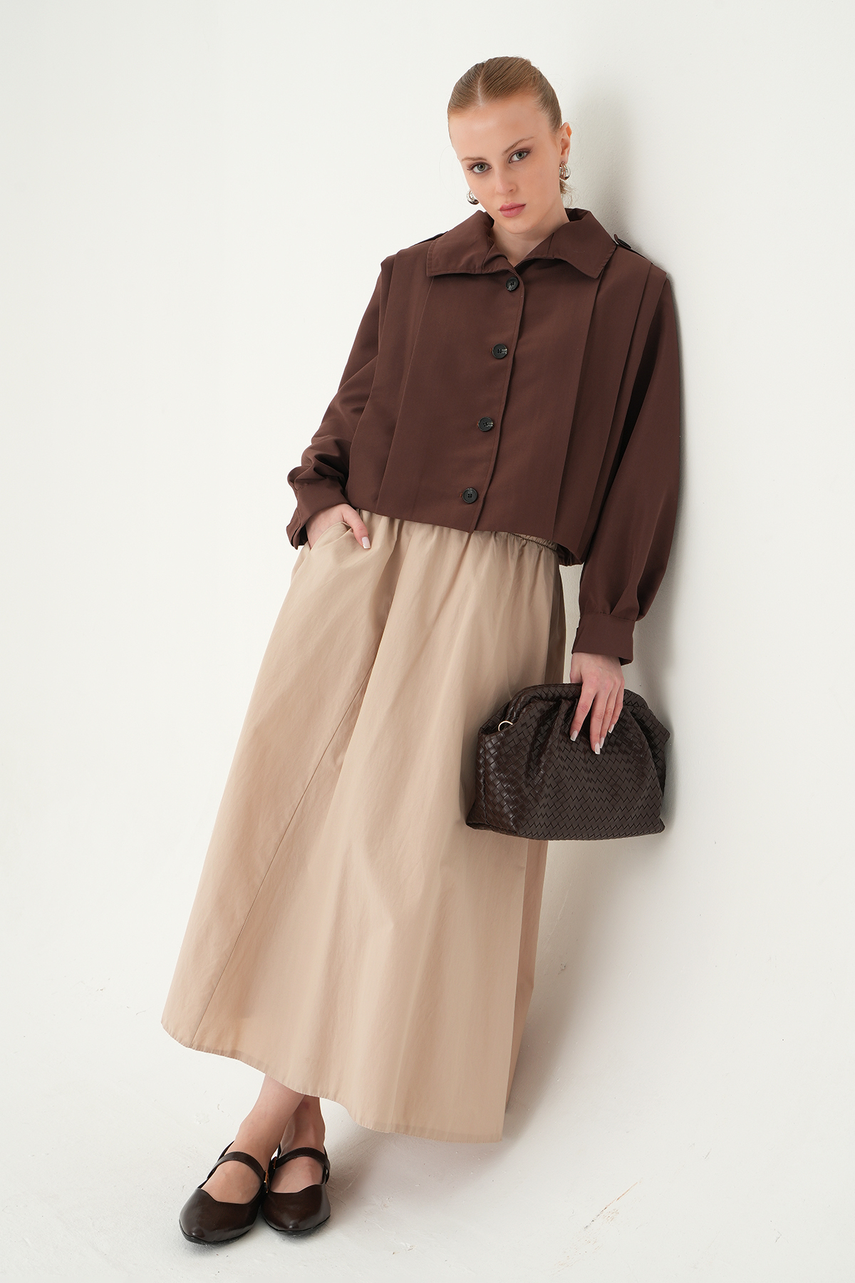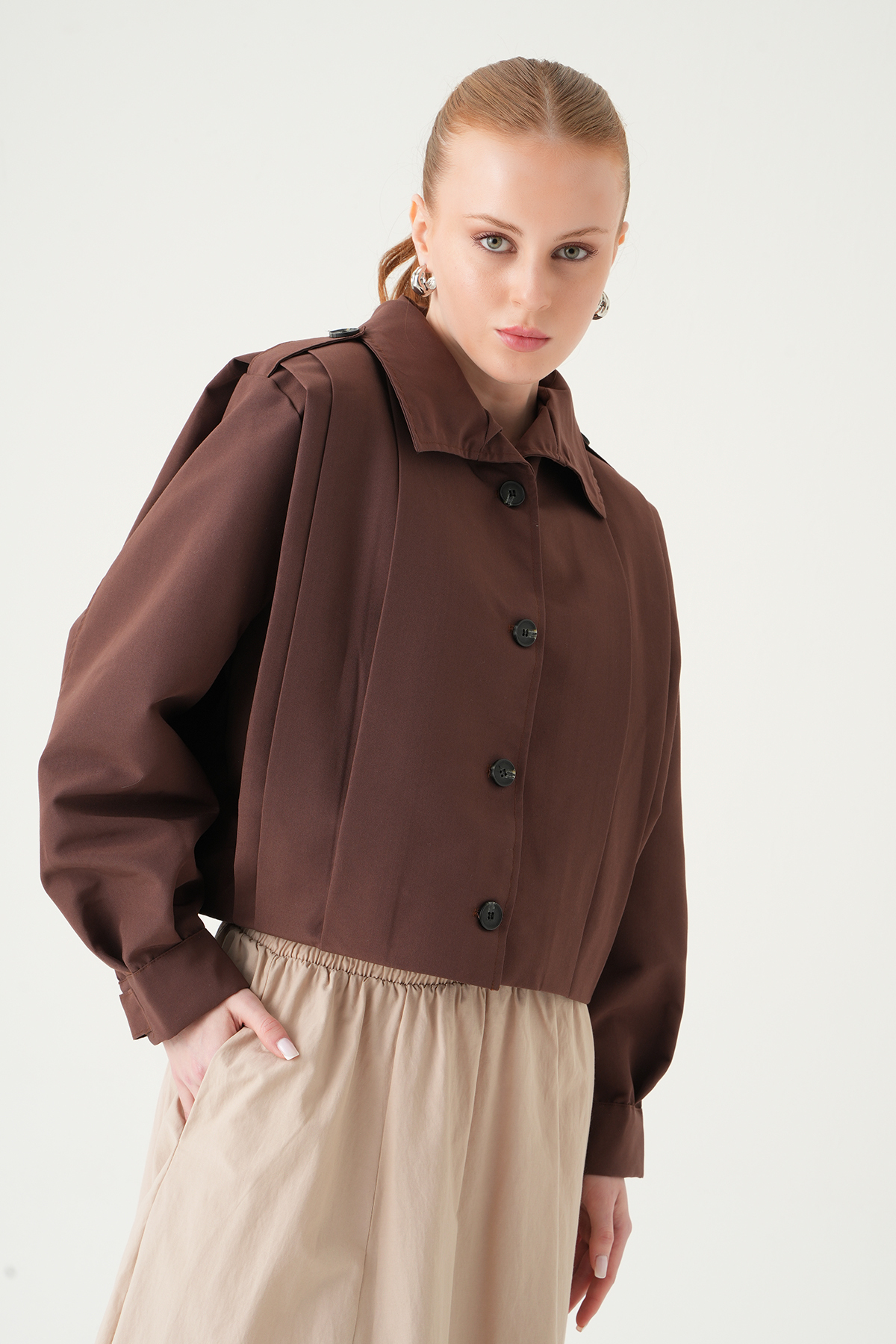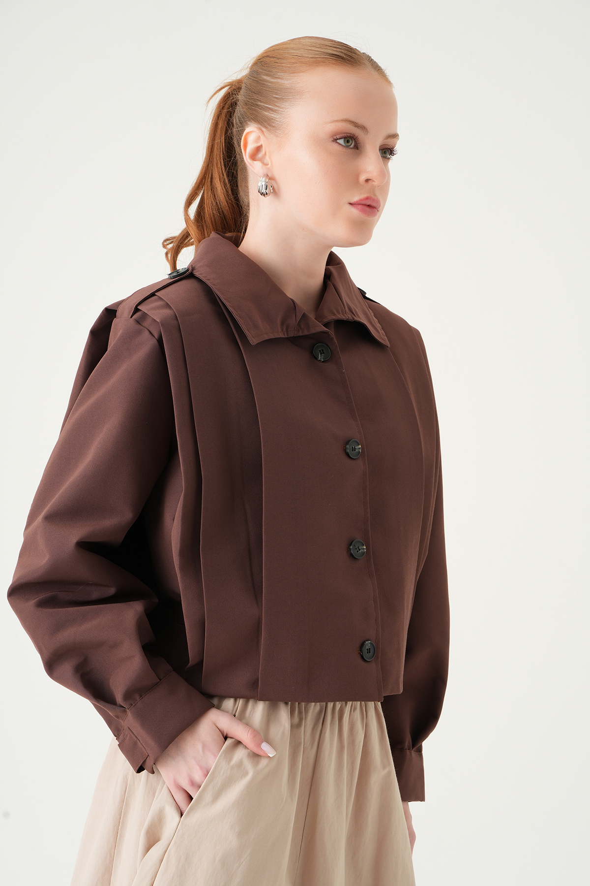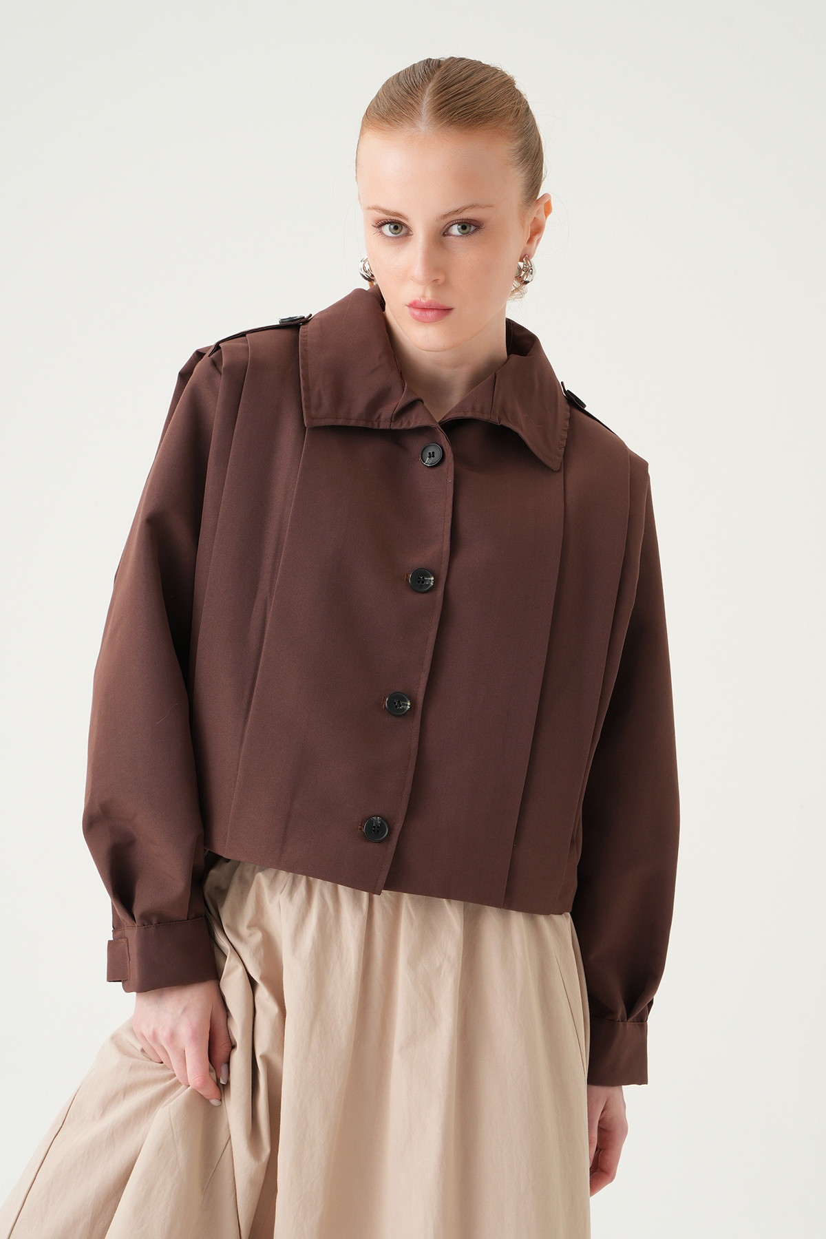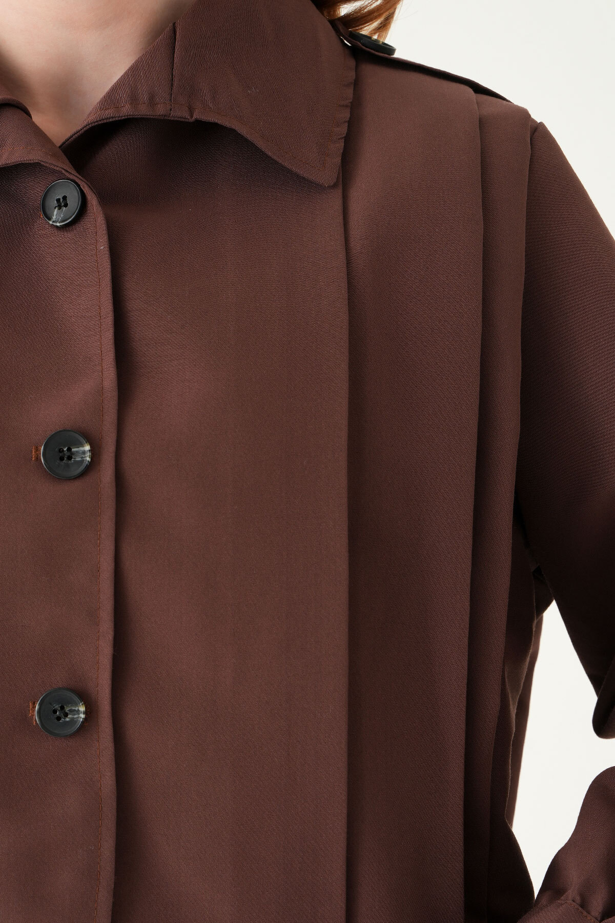 Kahve Düğmeli Uzun Kol Ceket 60530