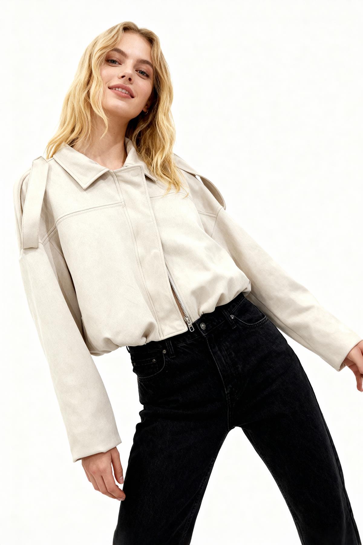 60538 Bel Lastikli Süet Ceket Açık Bej