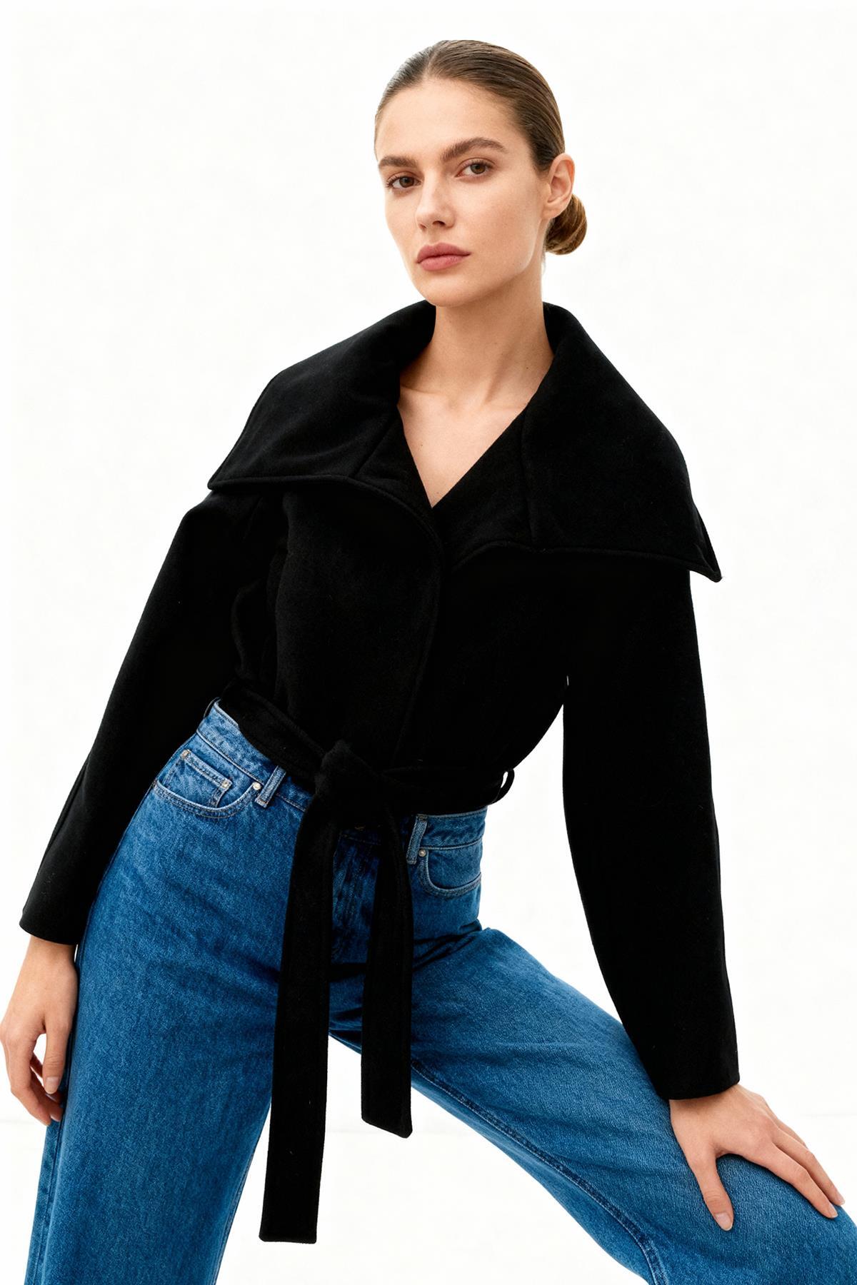 60566 Bel Bağlamalı Kaban Siyah