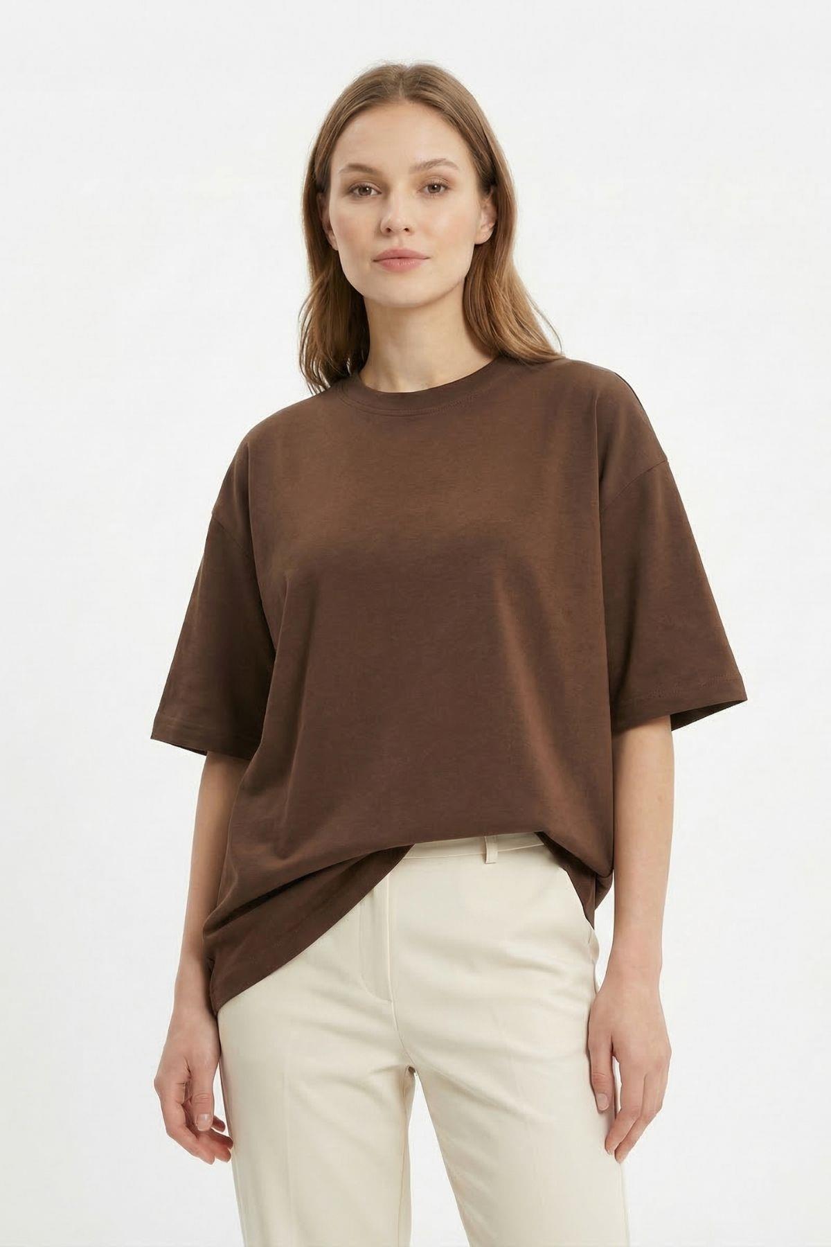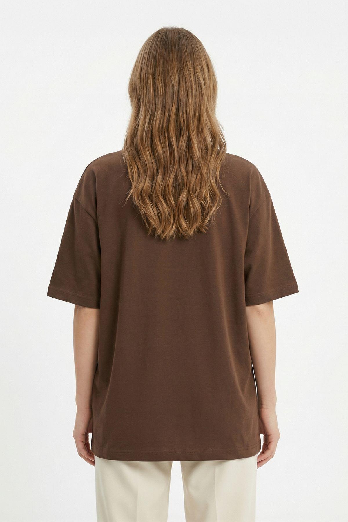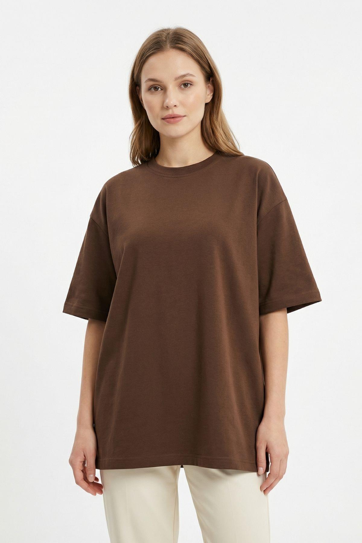 Kahve Bisiklet Yaka Kısa Kol Tişört 6109