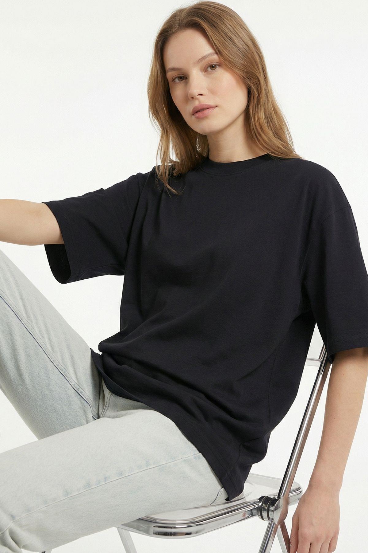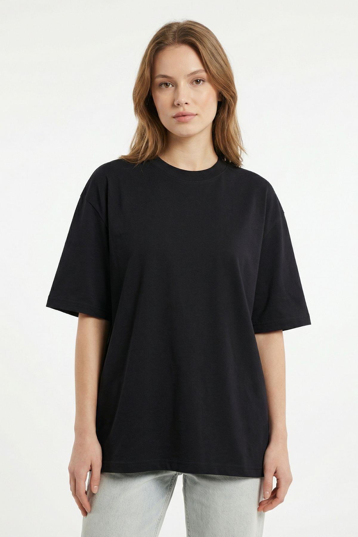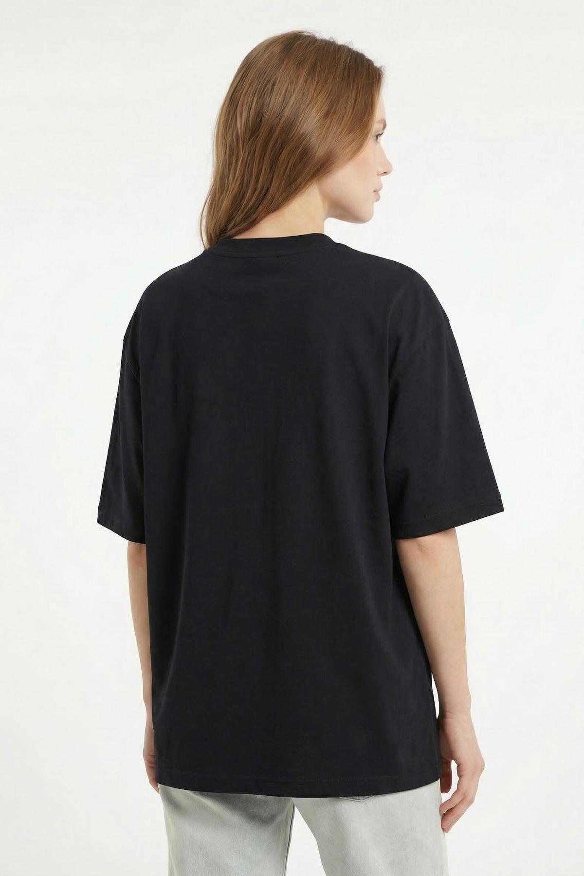 Siyah Bisiklet Yaka Salaş Tişört 0474
