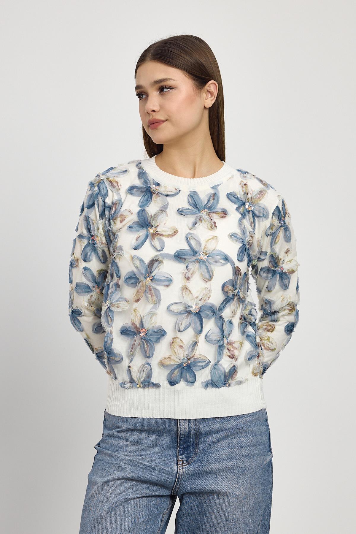 6109 Çiçek Detay Kazak Ekru