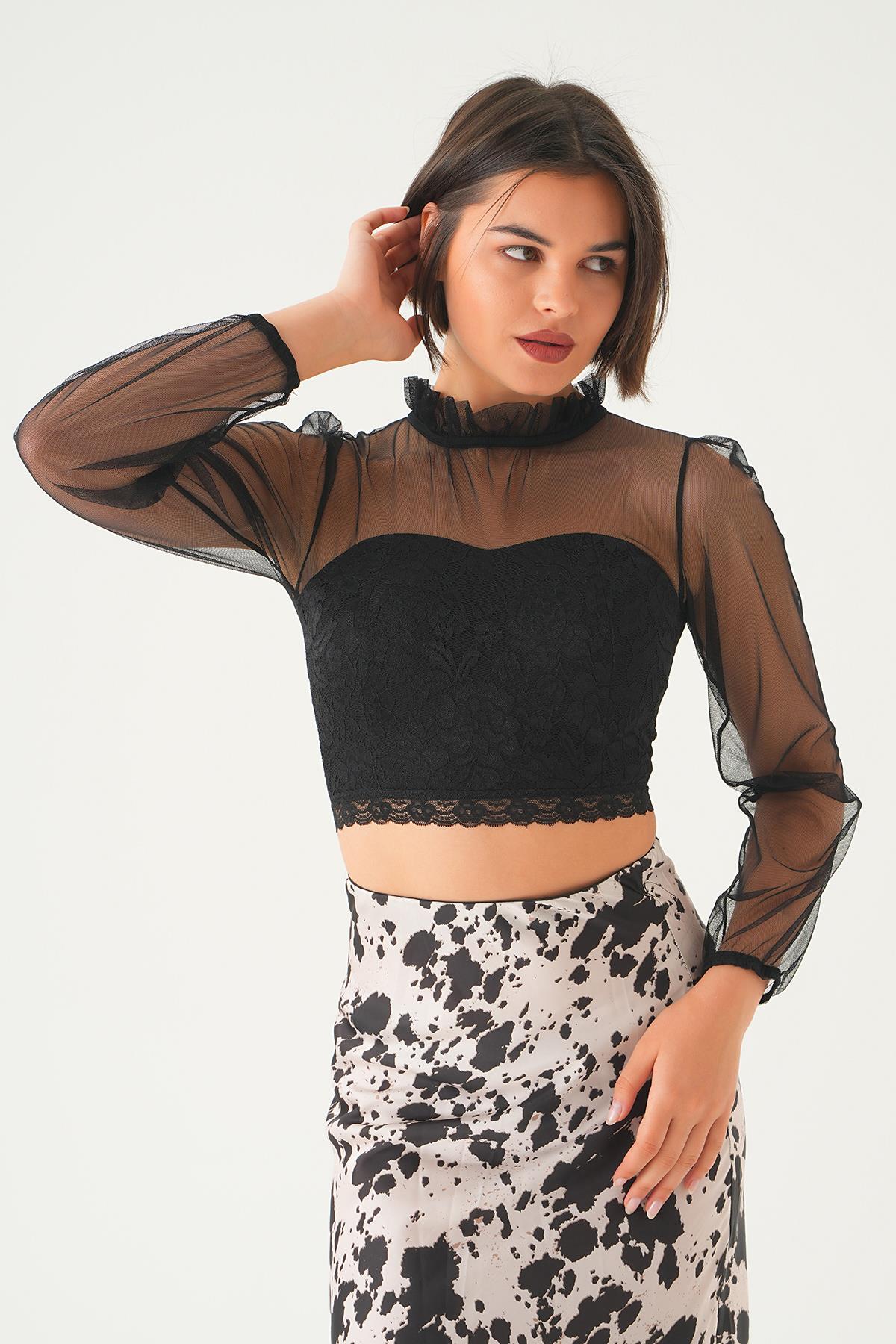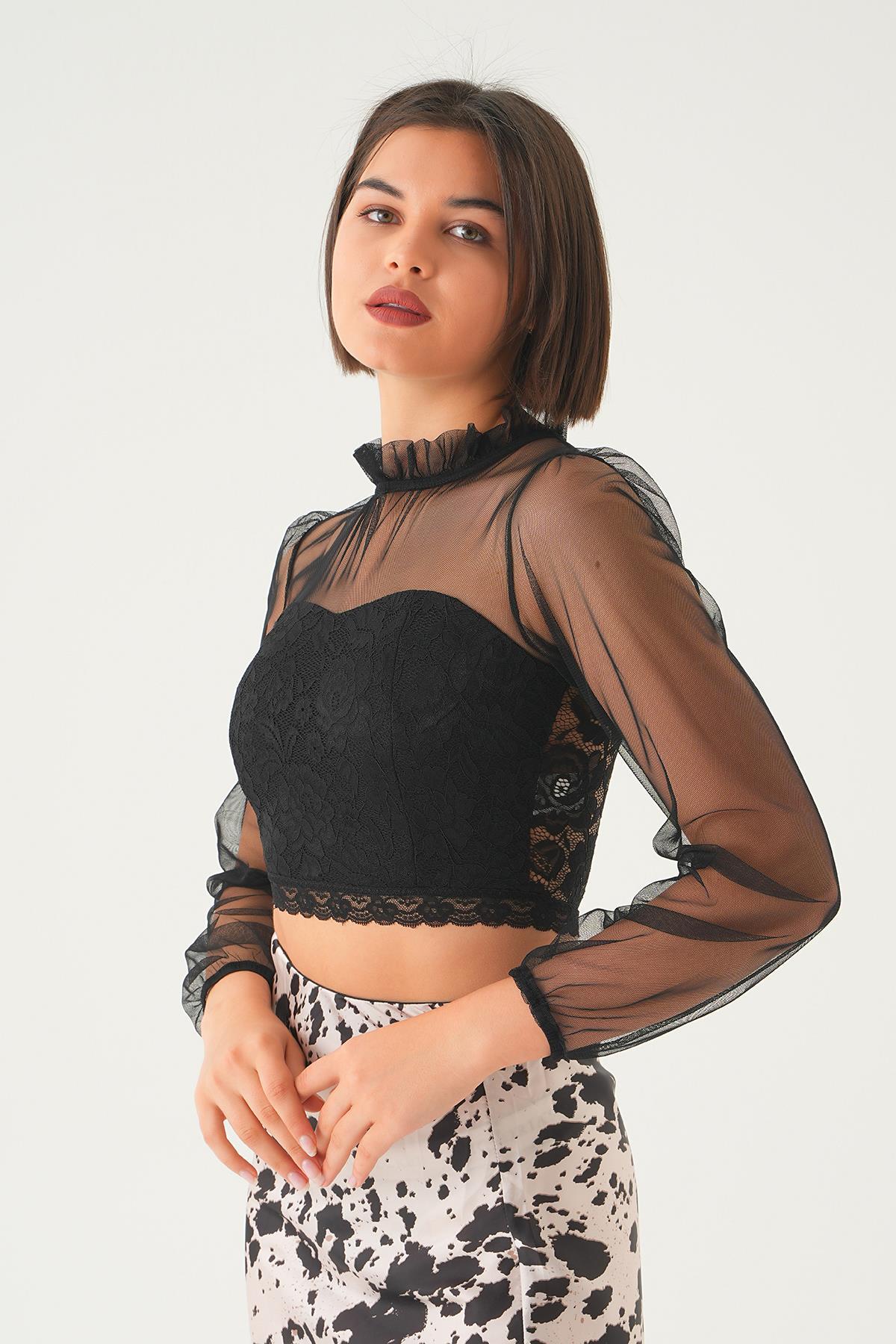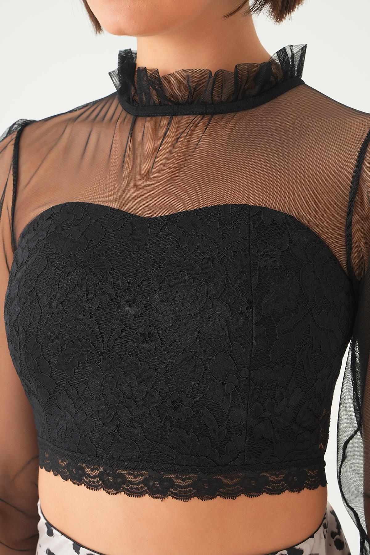 Siyah Yaka Büzgü Detay Bluz 6116