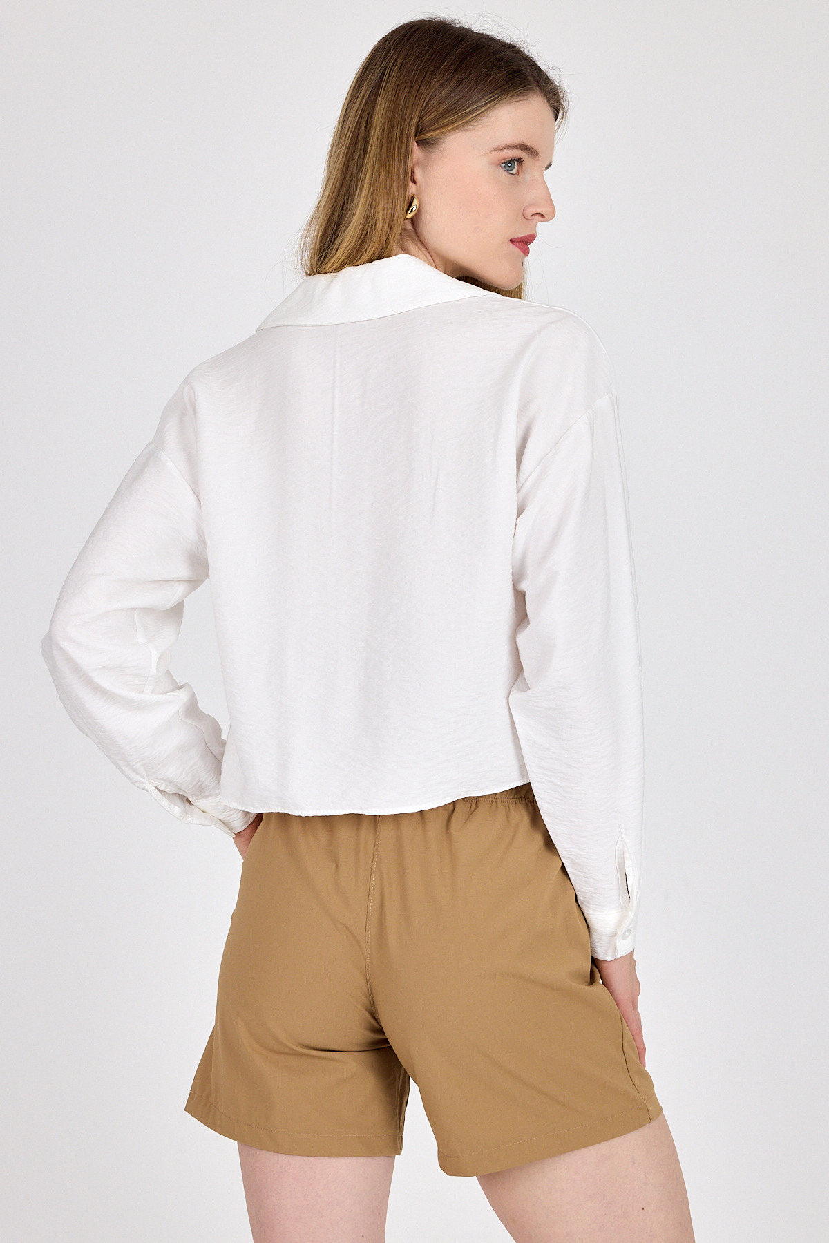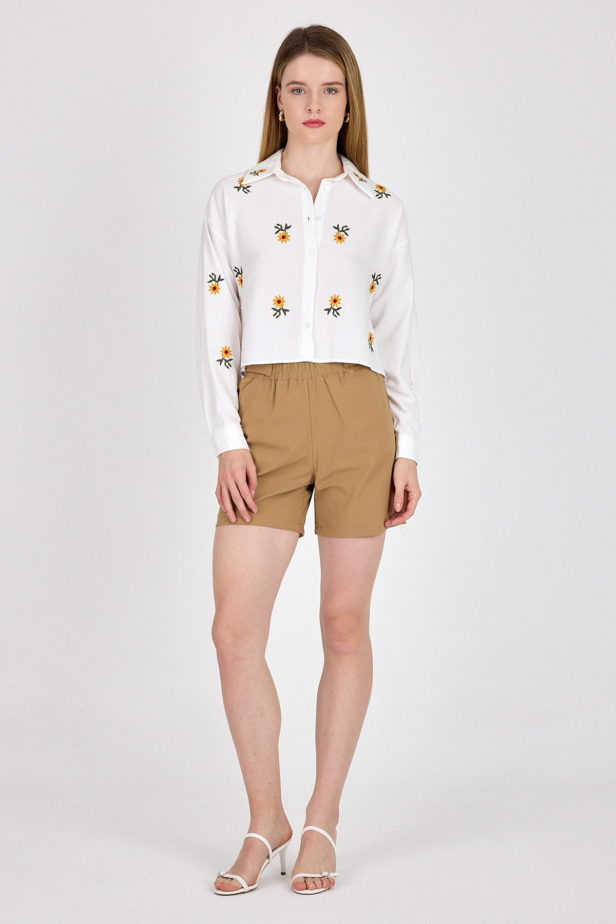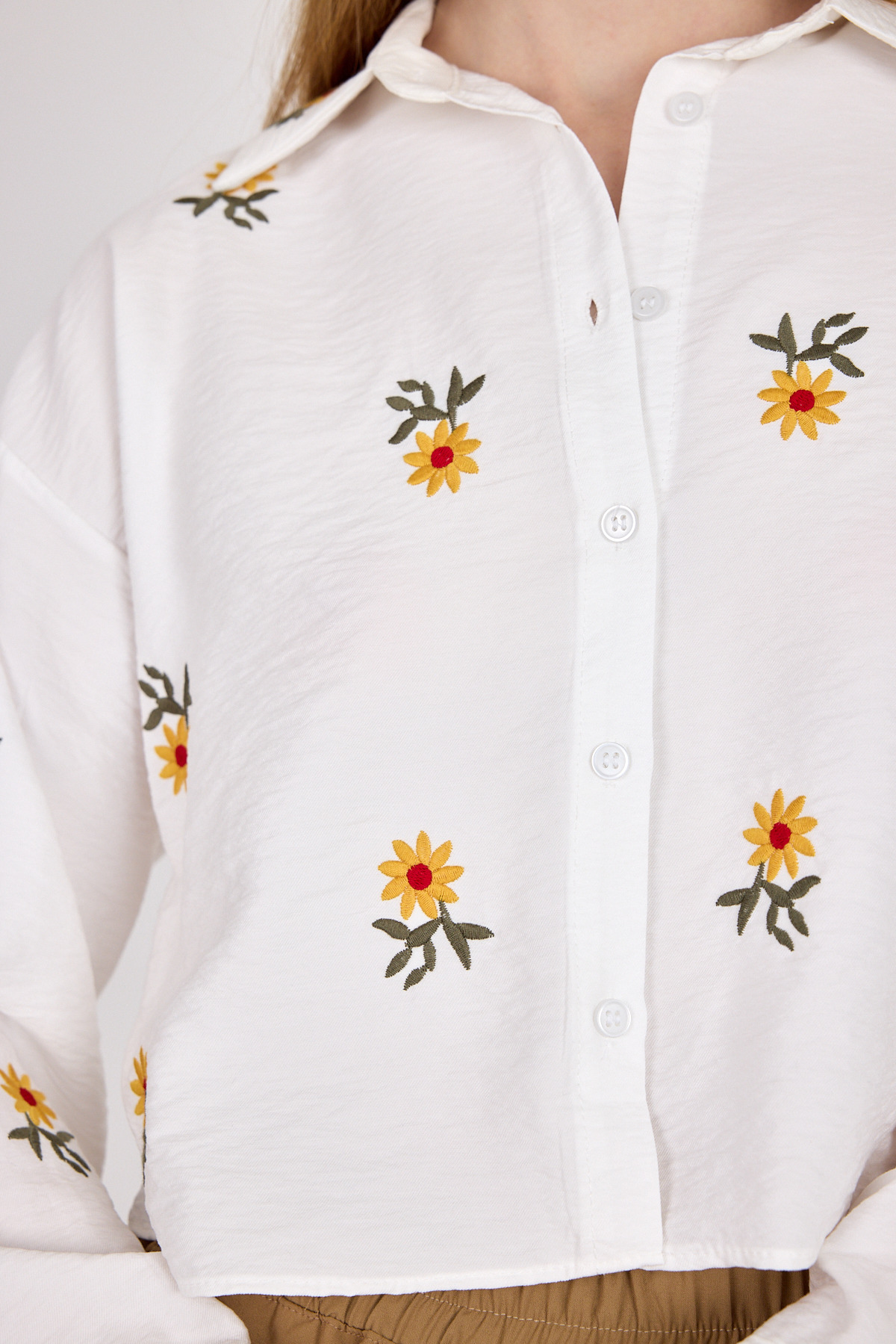 Beyaz Çiçek Nakışlı Gömlek 6232