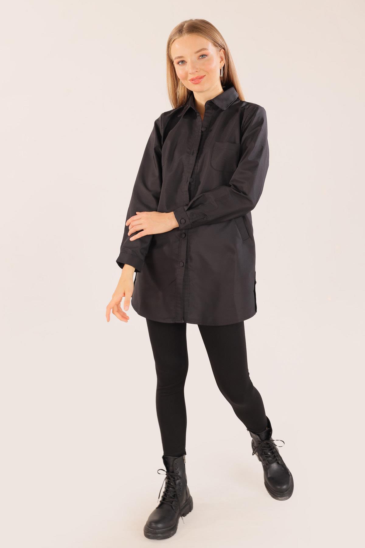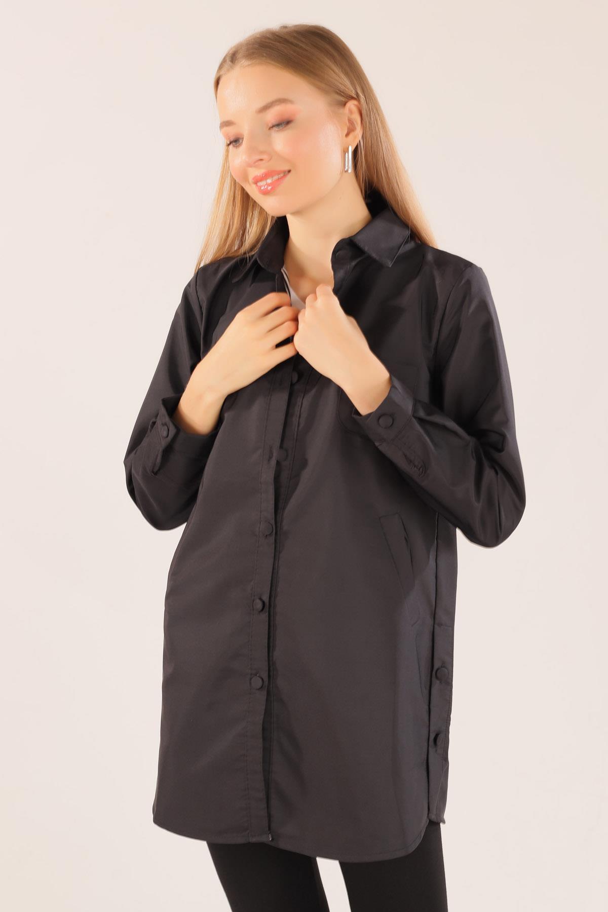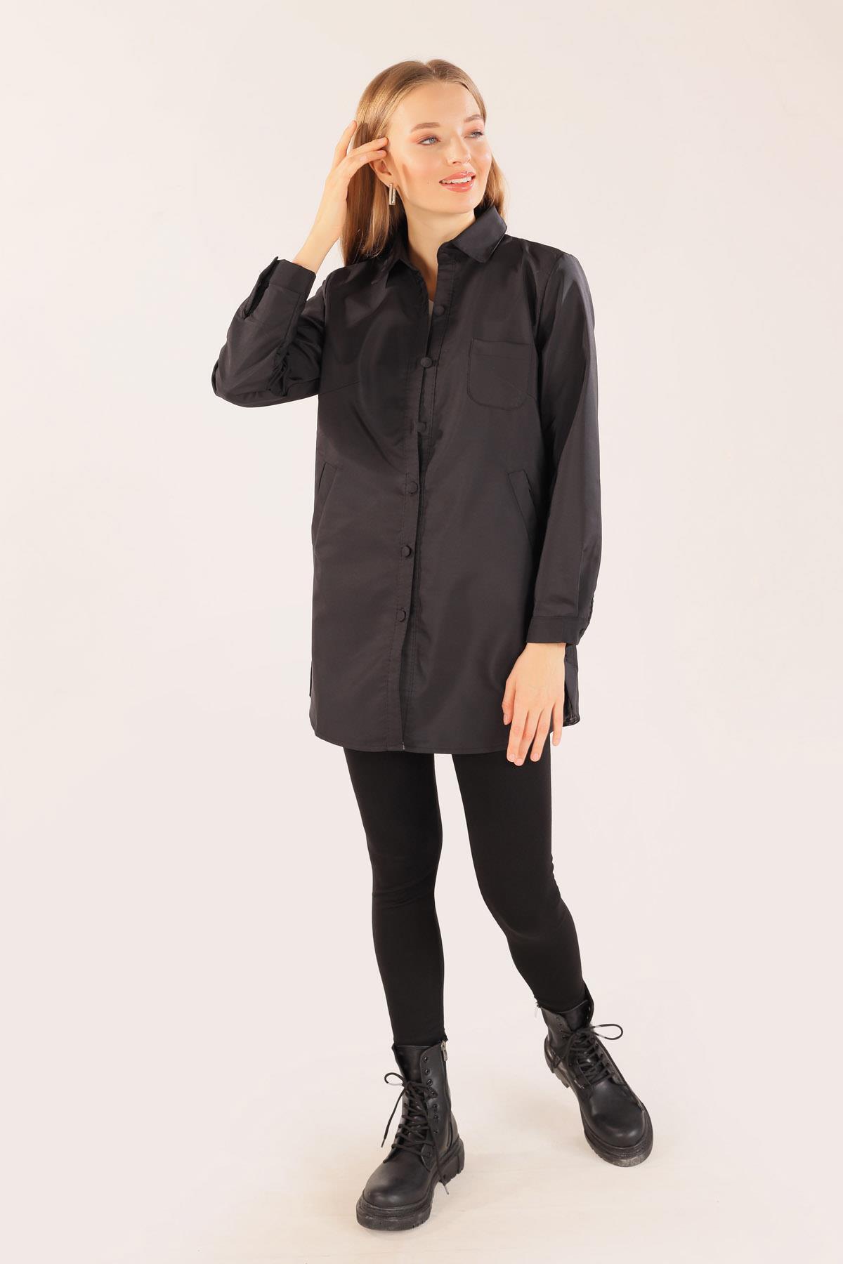 Siyah Cep Detay Düğmeli Trençkot 6265