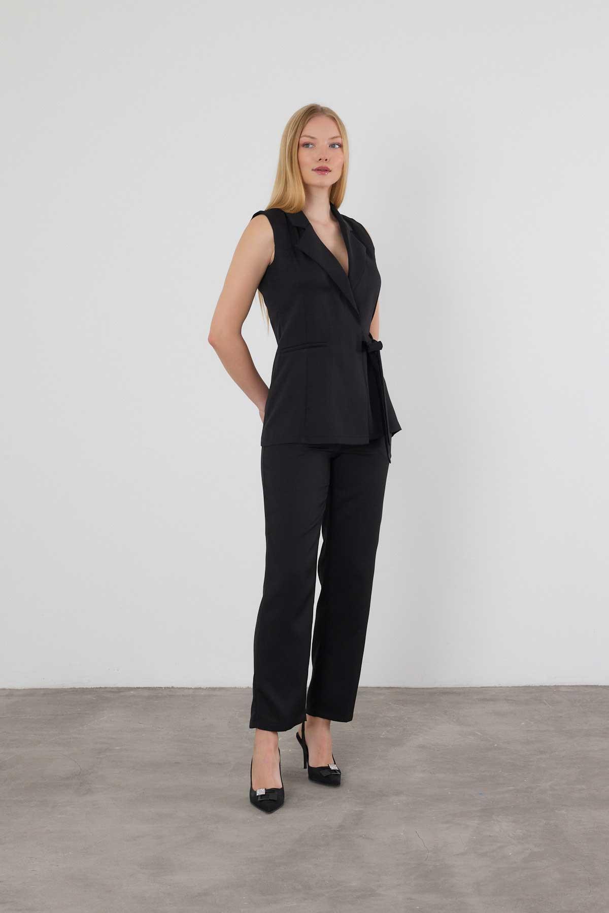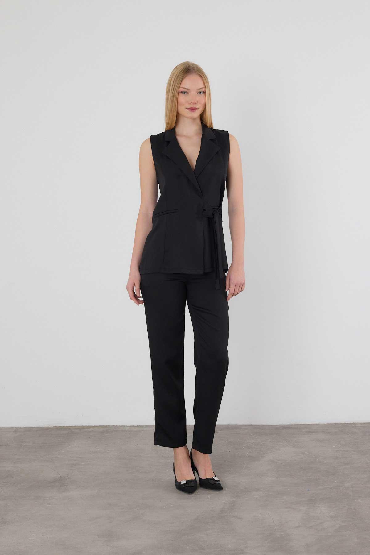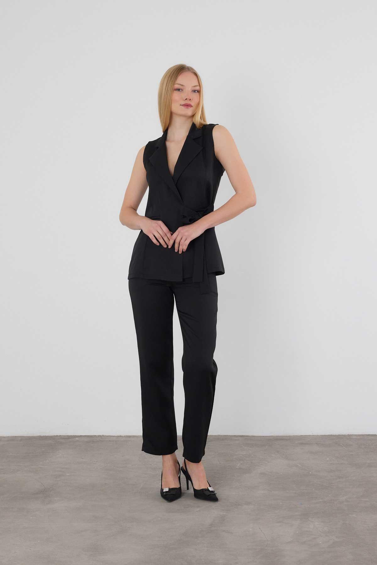 Siyah Bağlama Detay Pantolon Takım 6307