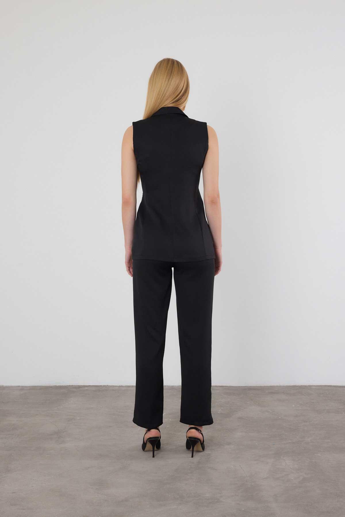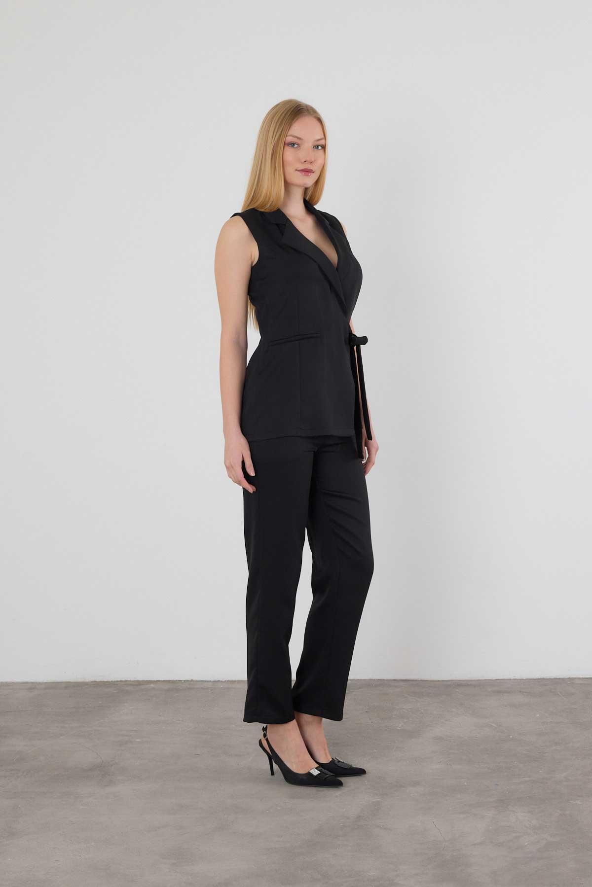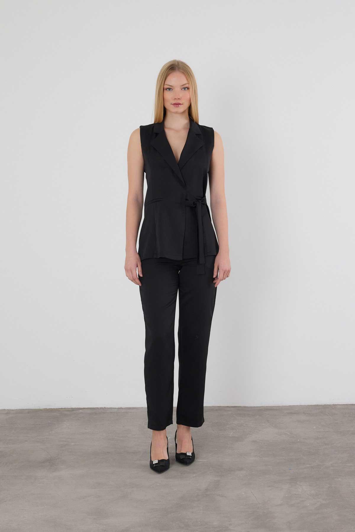 Siyah Bağlama Detay Pantolon Takım 6307