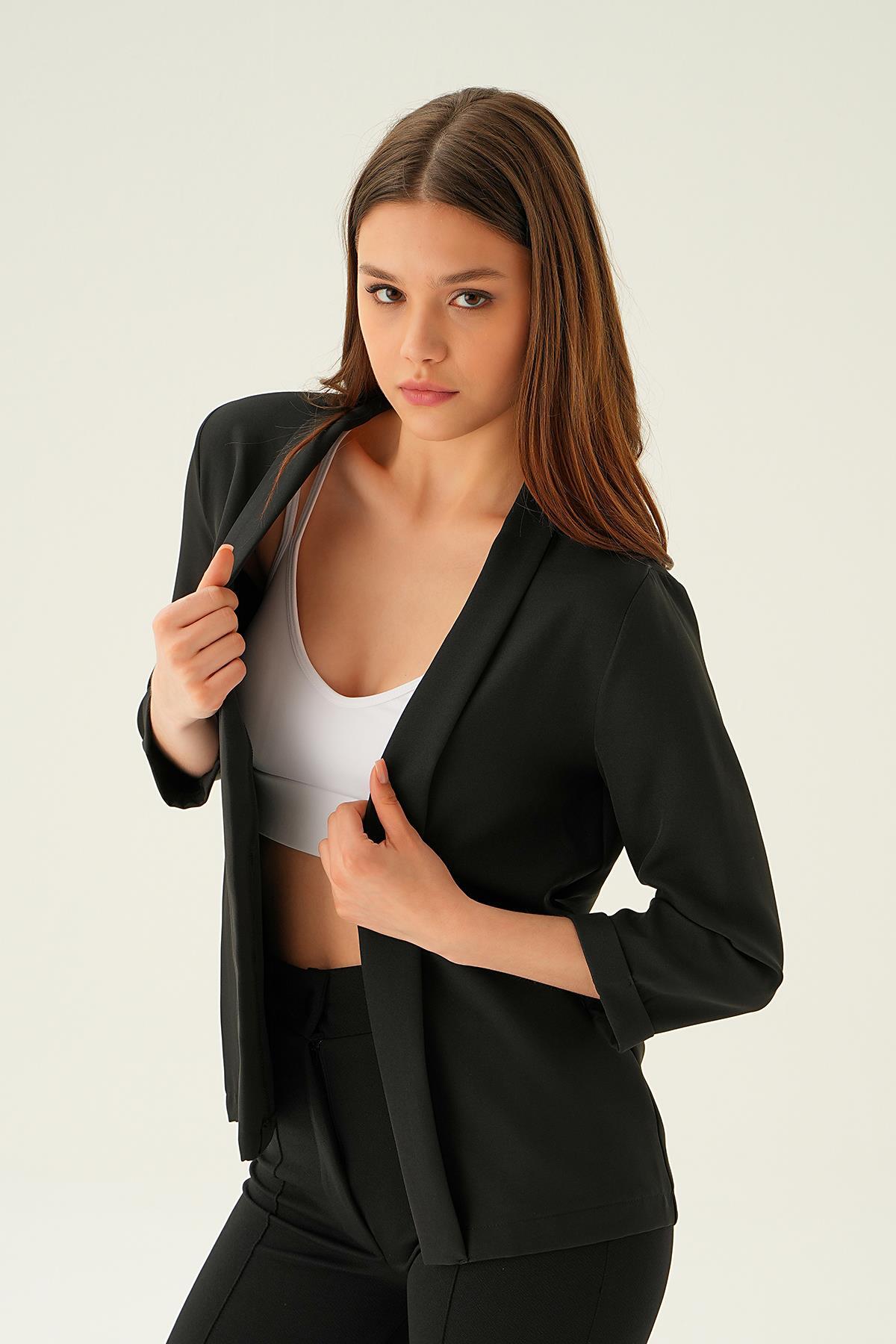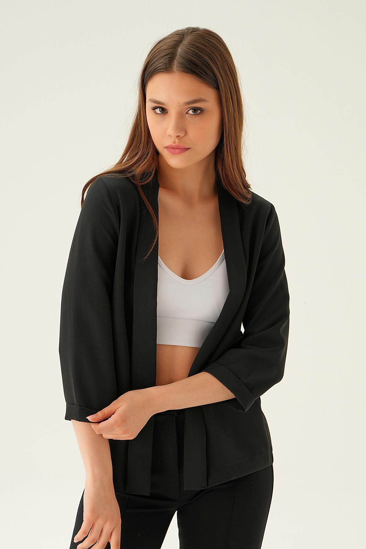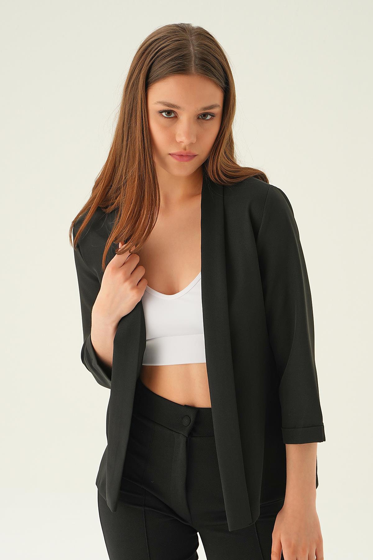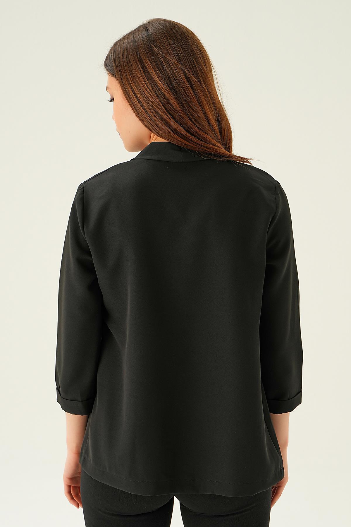 Siyah Kol Katlamalı Ceket 6382-1