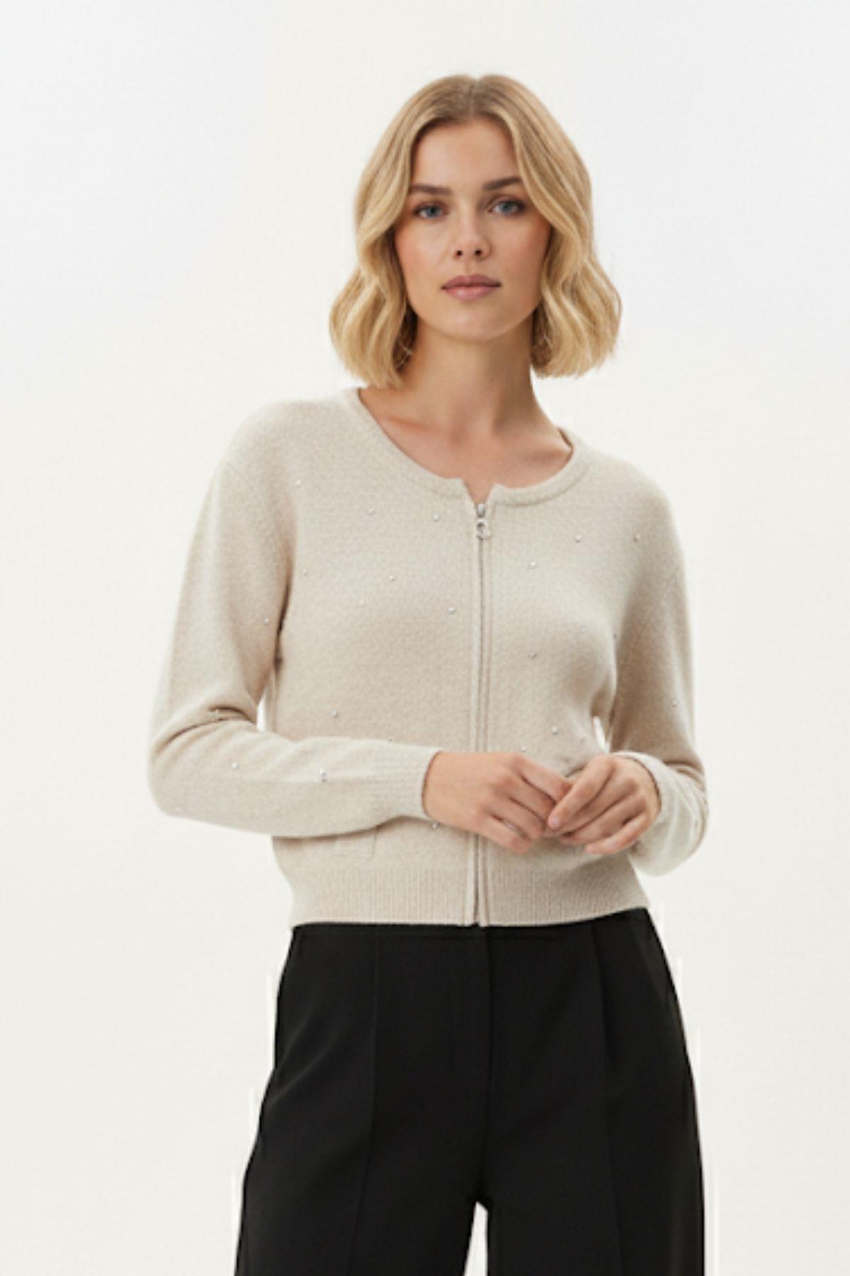 6405 Fermuarlı Uzun Kol Hırka Natural