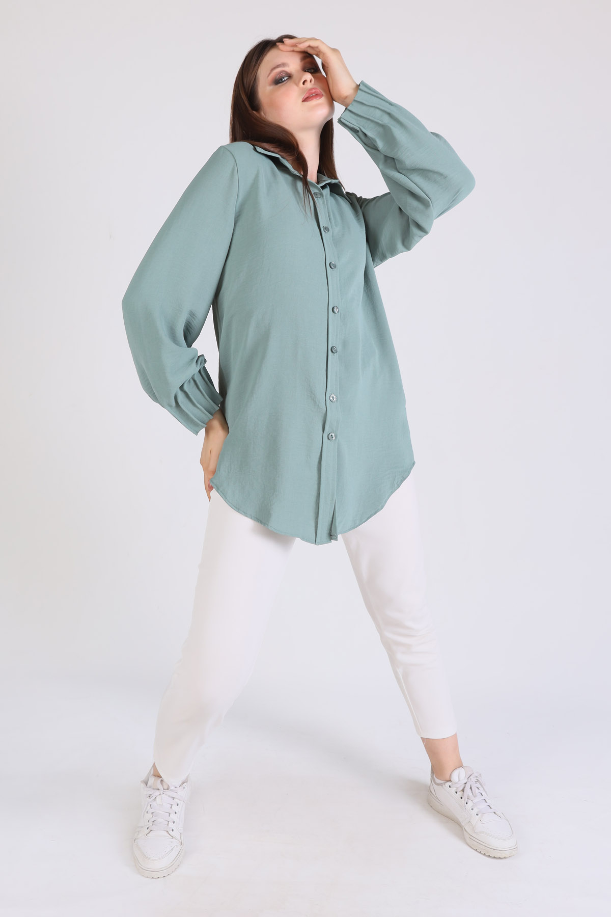 Çağla Kol Drape Detay Gömlek 6454A