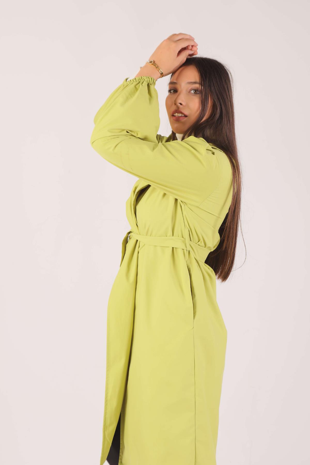 6528-1 Balon Kol Trençkot Olive Yeşili