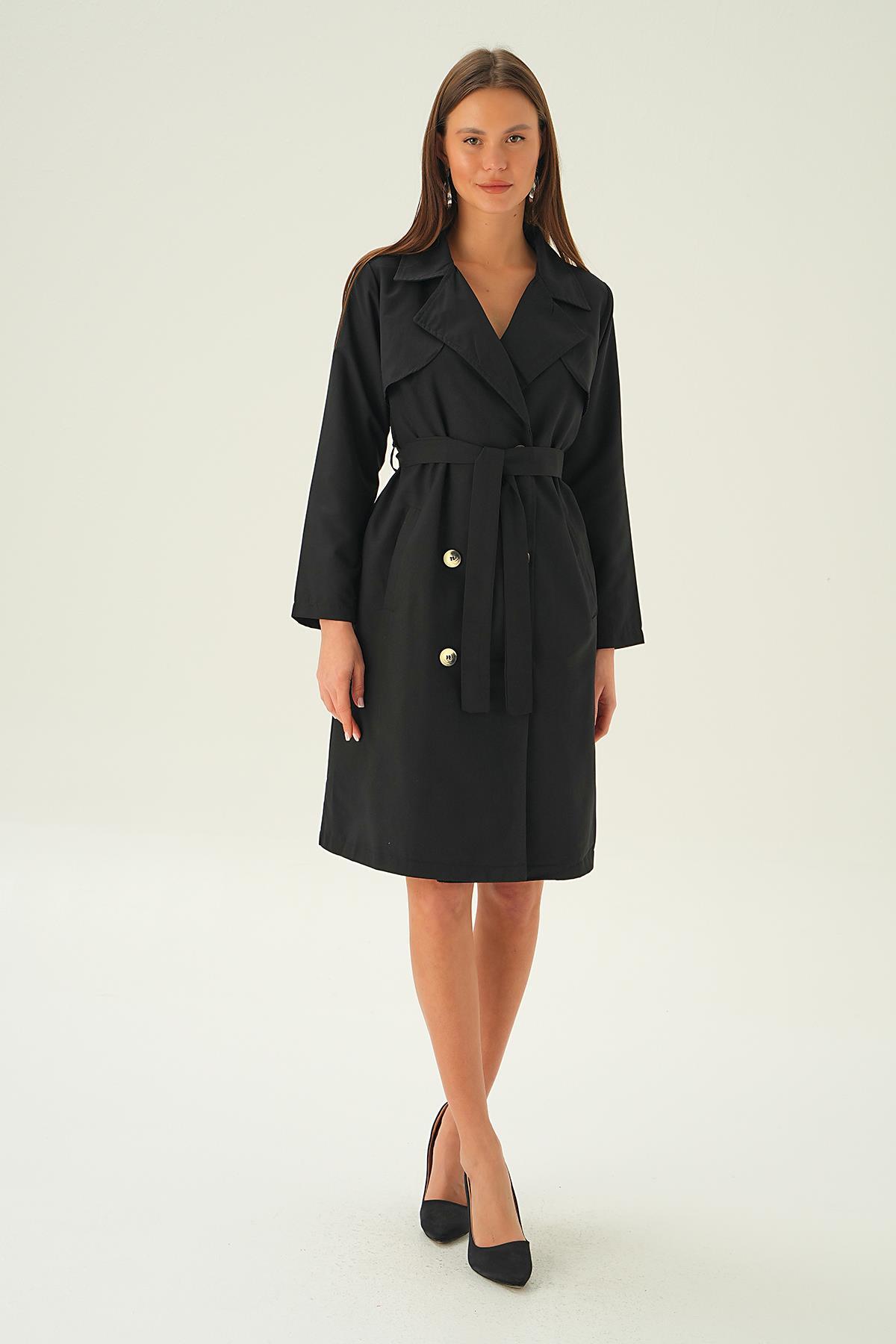Siyah Kruvaze Kuşaklı Kadın Trençkot 3033A