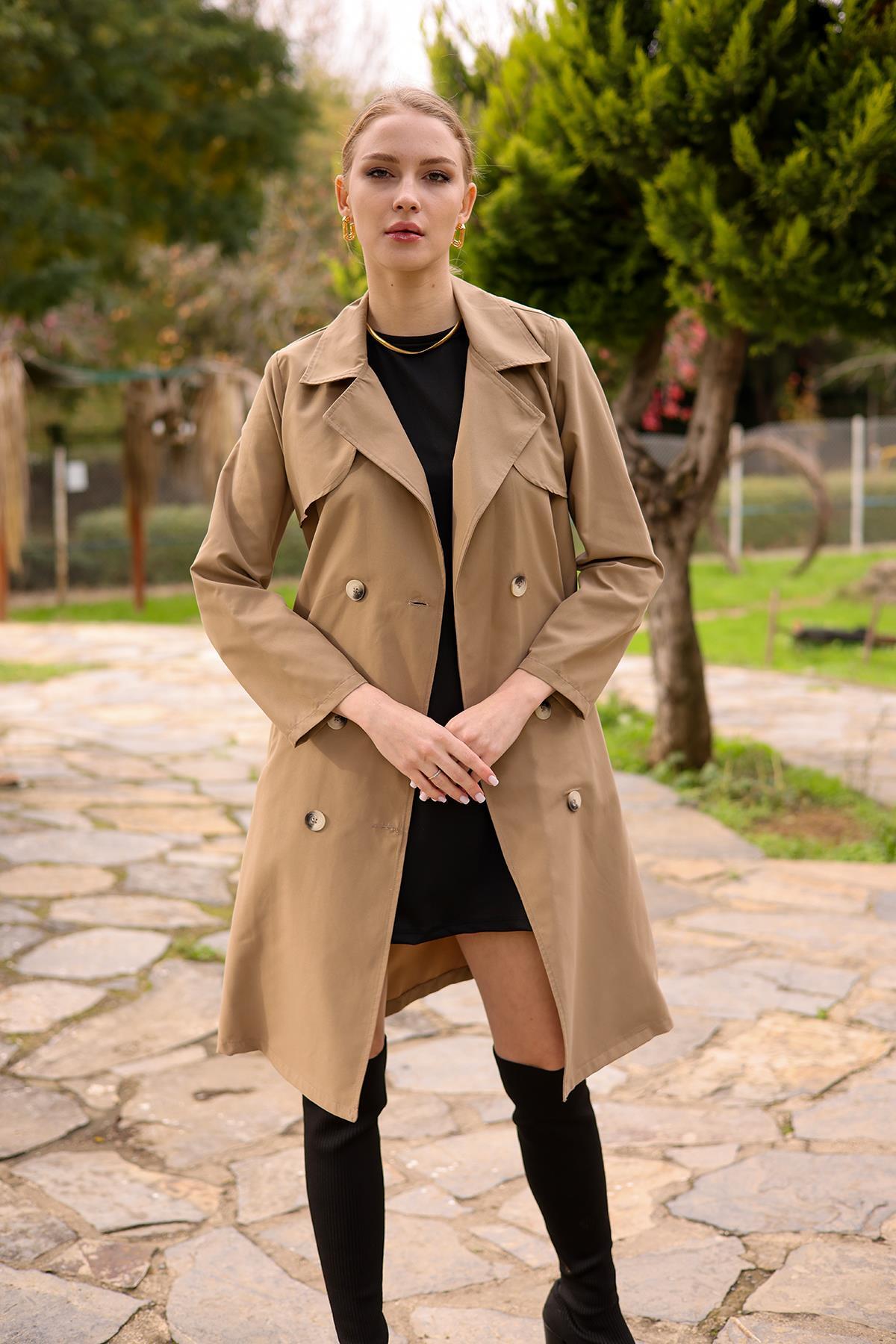 6531-1 Parçalı Düğmeli Trençkot Vizon