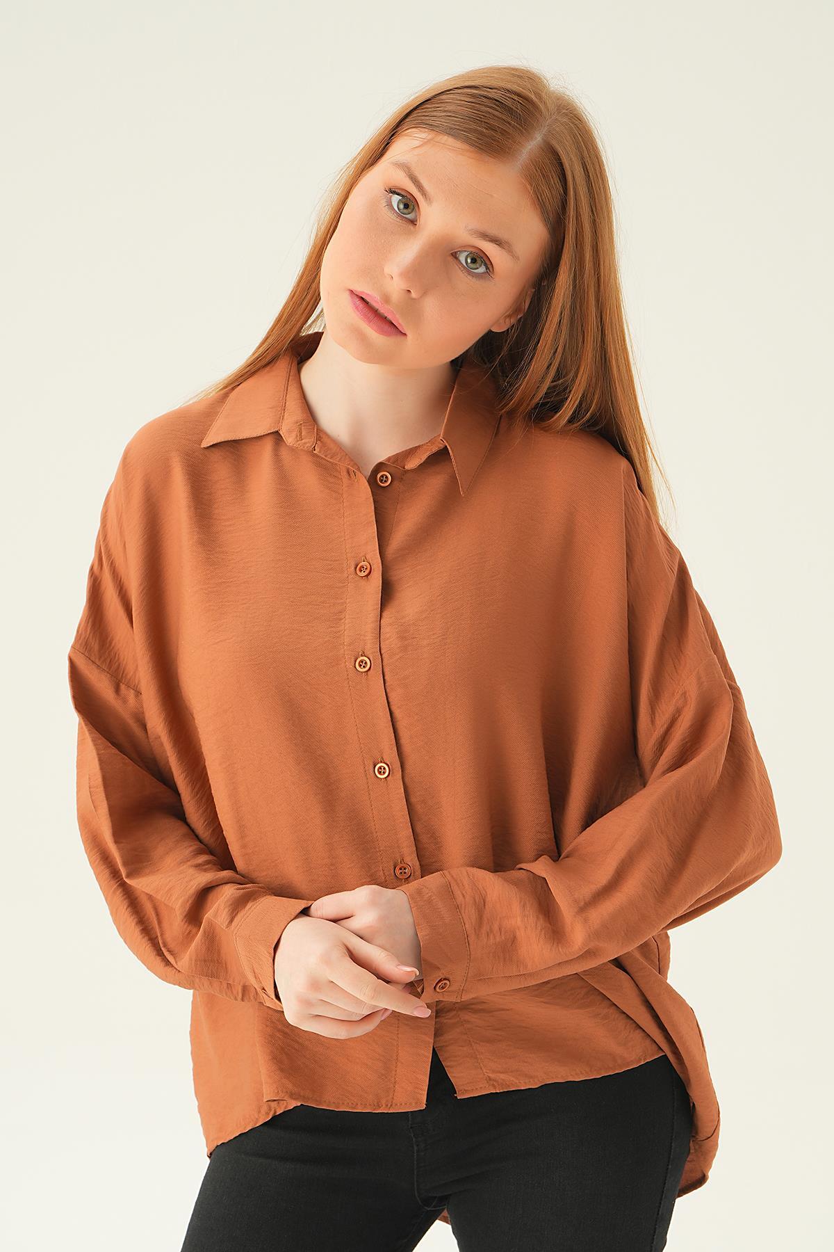 8225 Püsküllü Gömlek Acı Kahve - RAYS