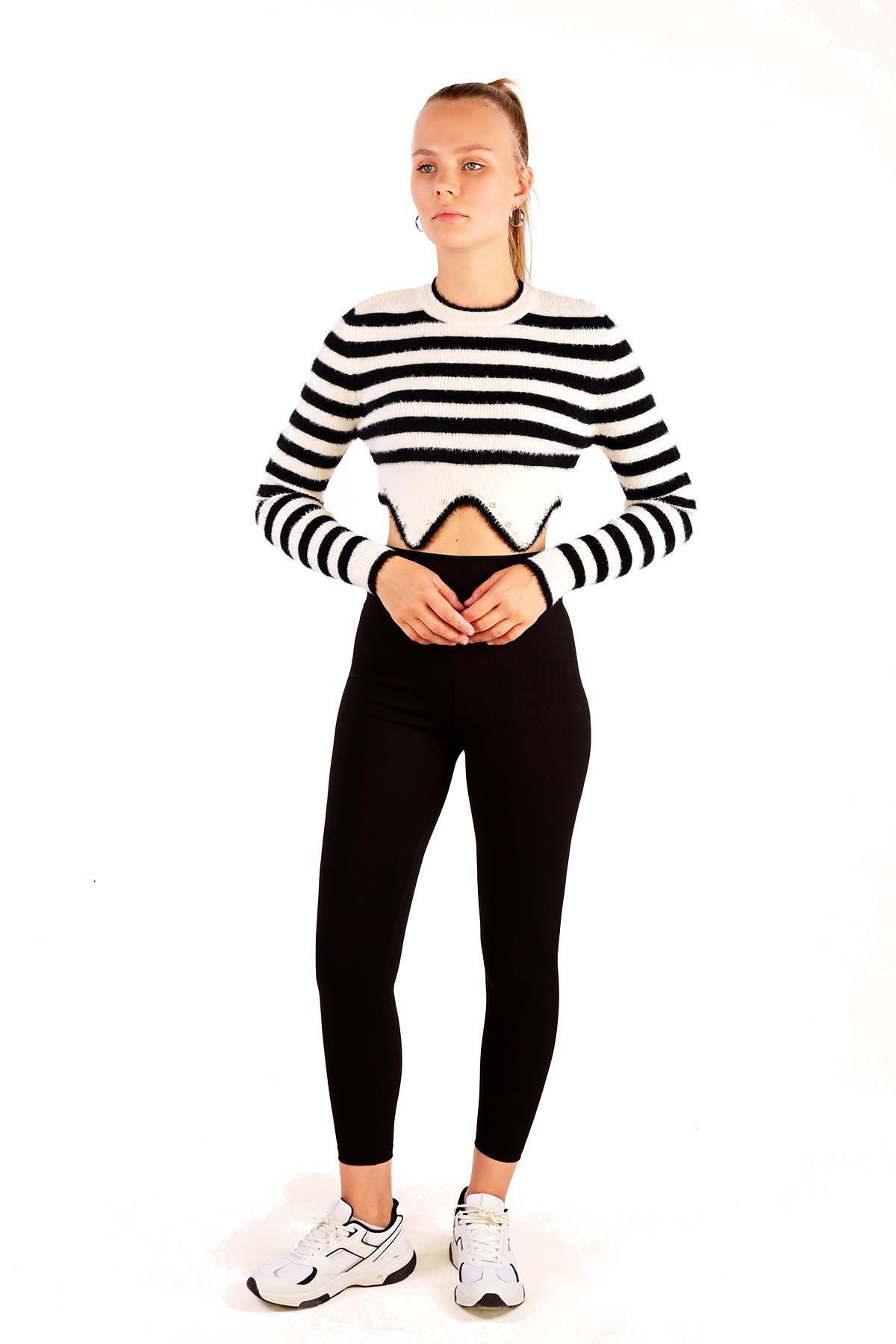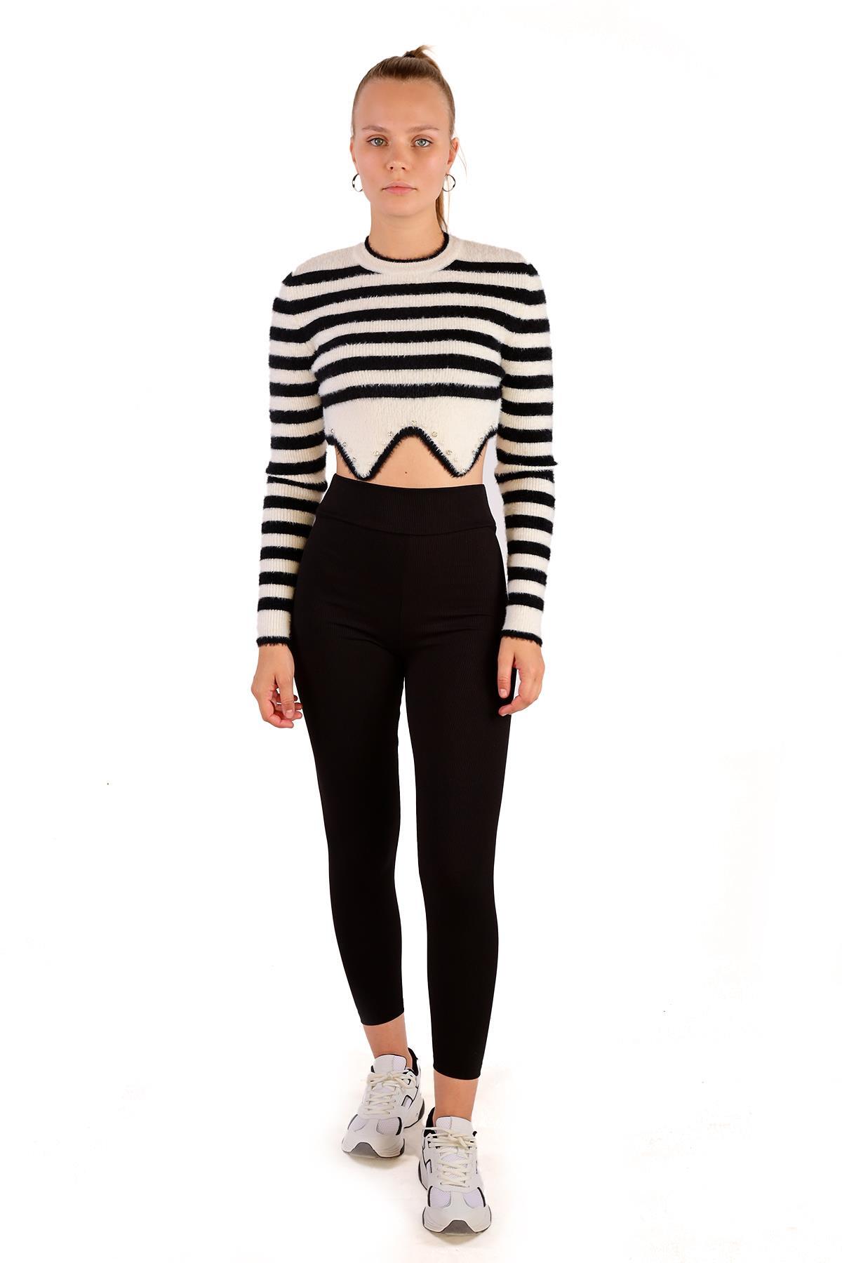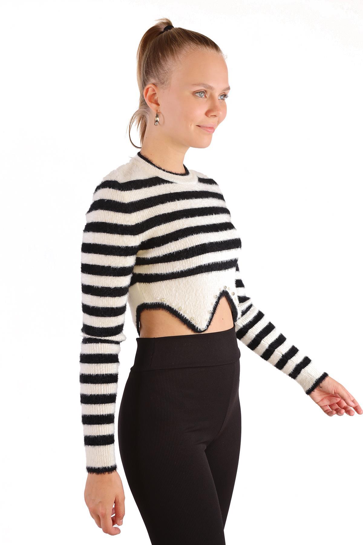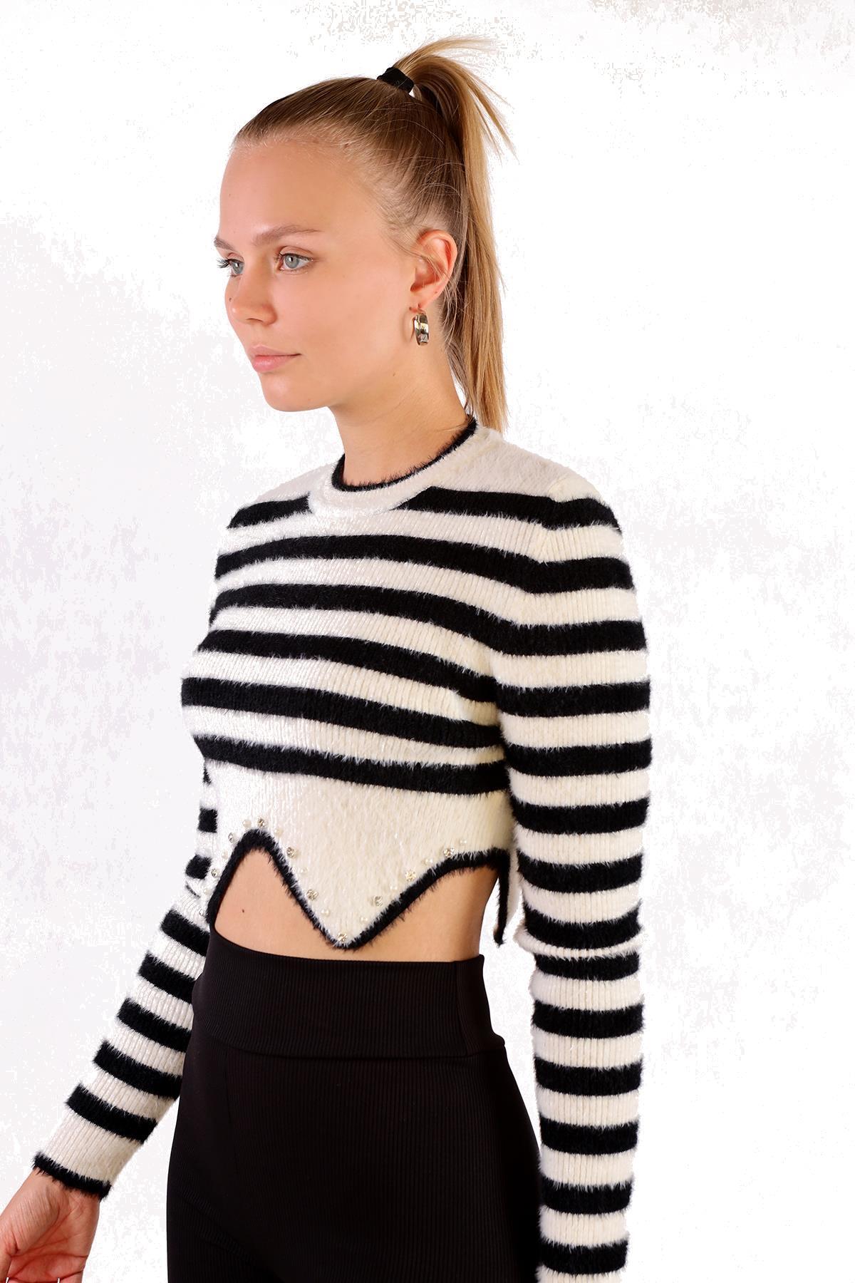 Ekru Etek Boncuk Detay Yumoş Kazak 6611