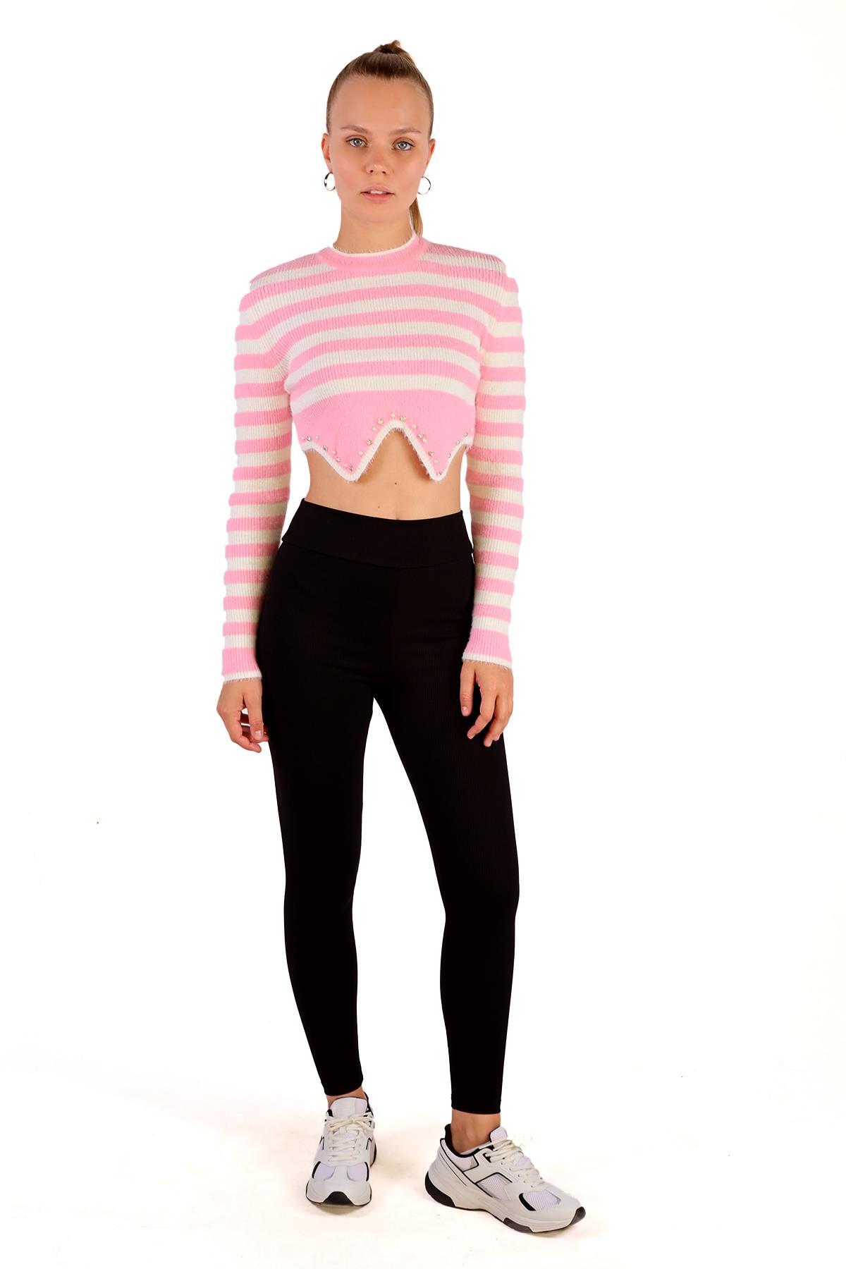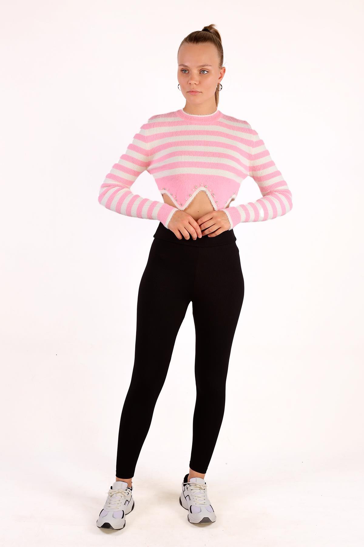 Pembe Etek Boncuk Detay Yumoş Kazak 6611