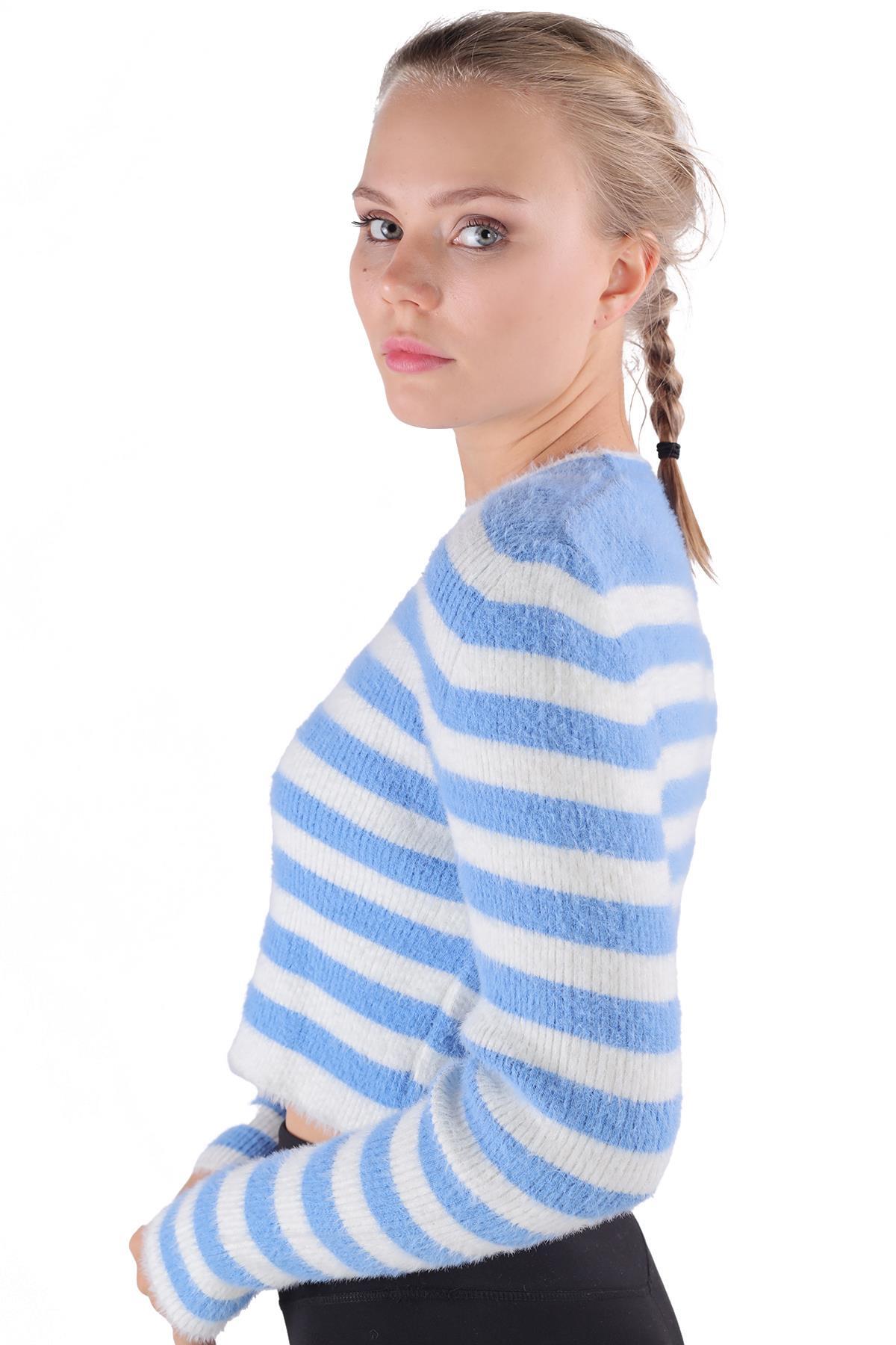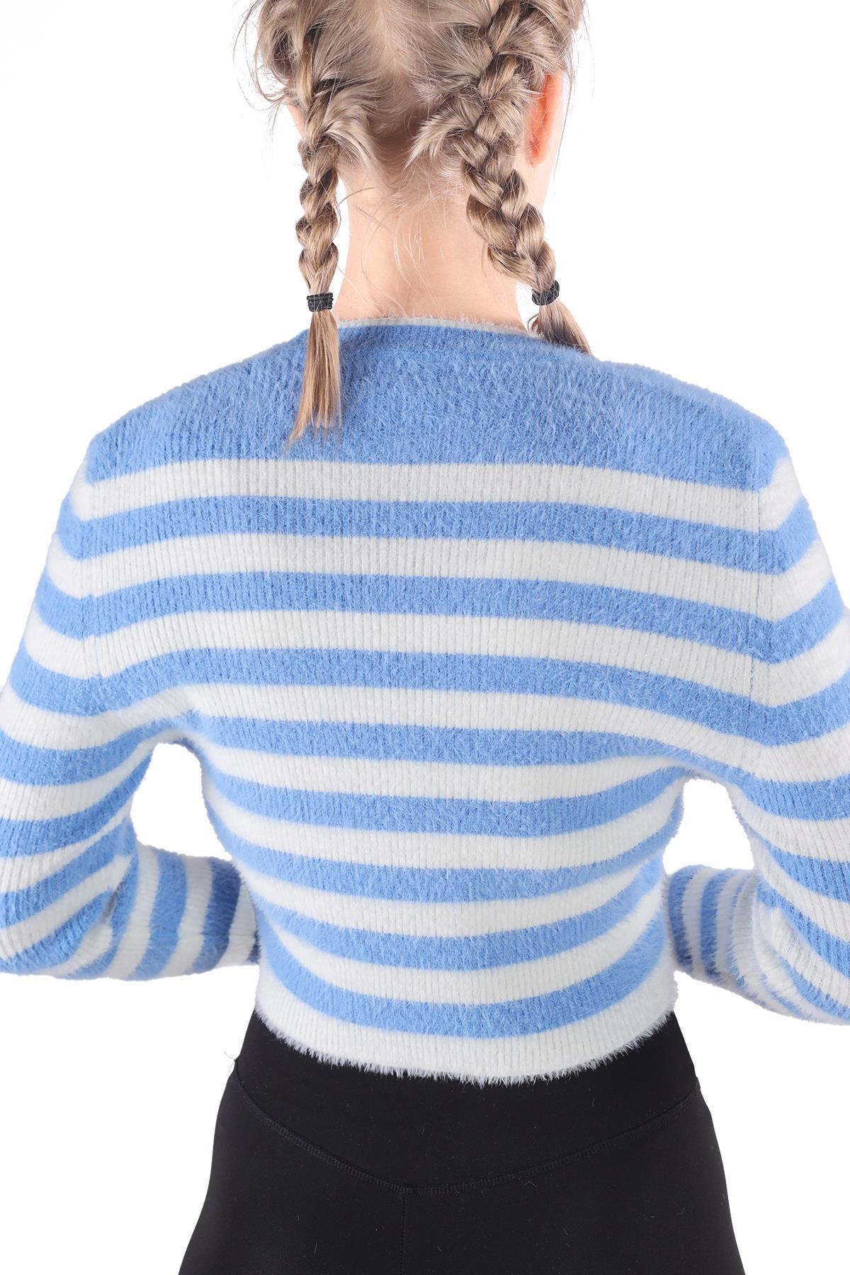 Mavi Çizgili Sakallı Yumoş Kazak 6618