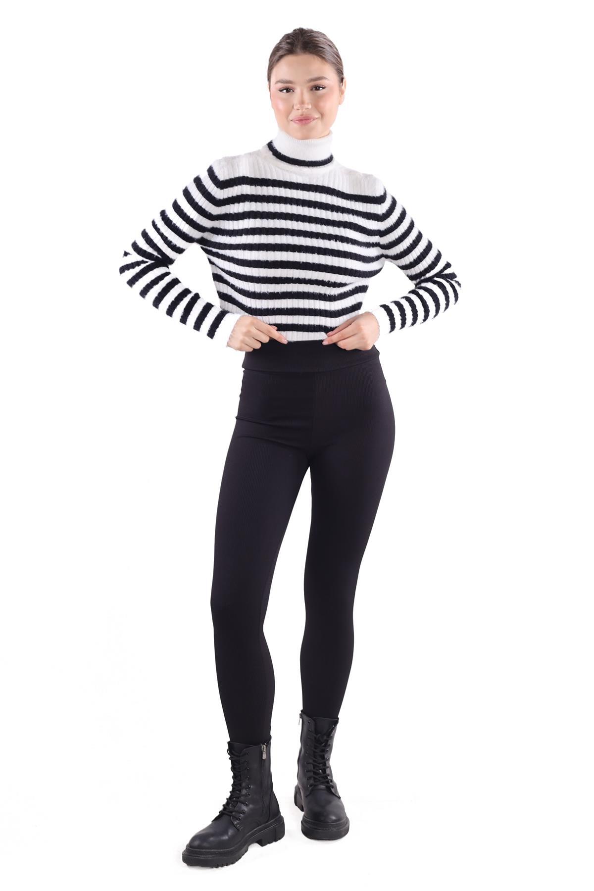 6622 Boğazlı Çizgili Yumoş Kazak Ekru