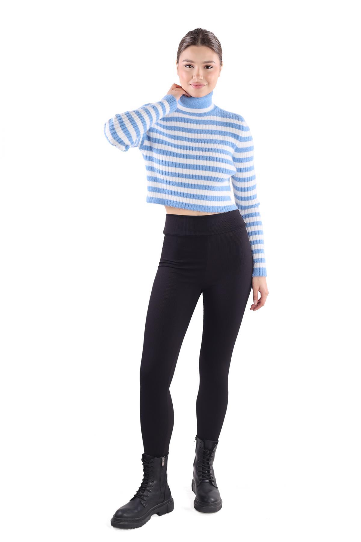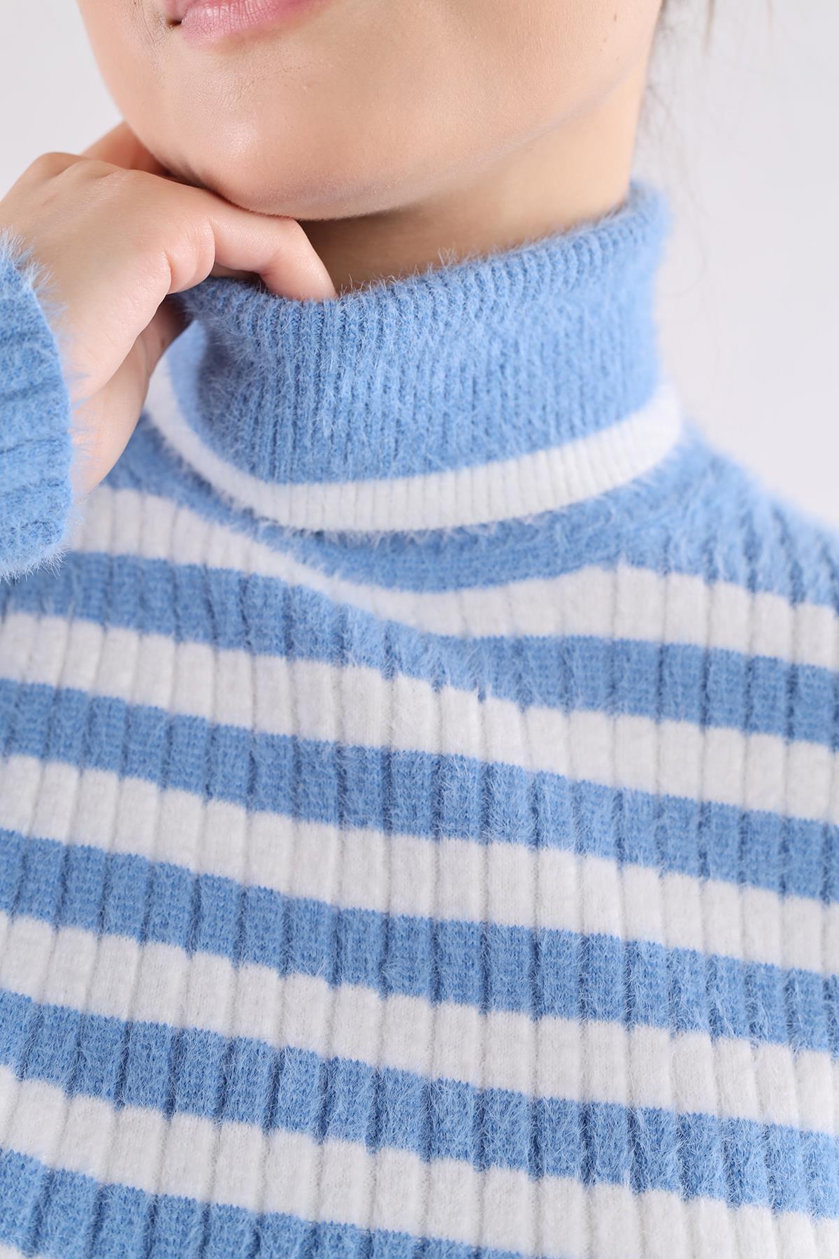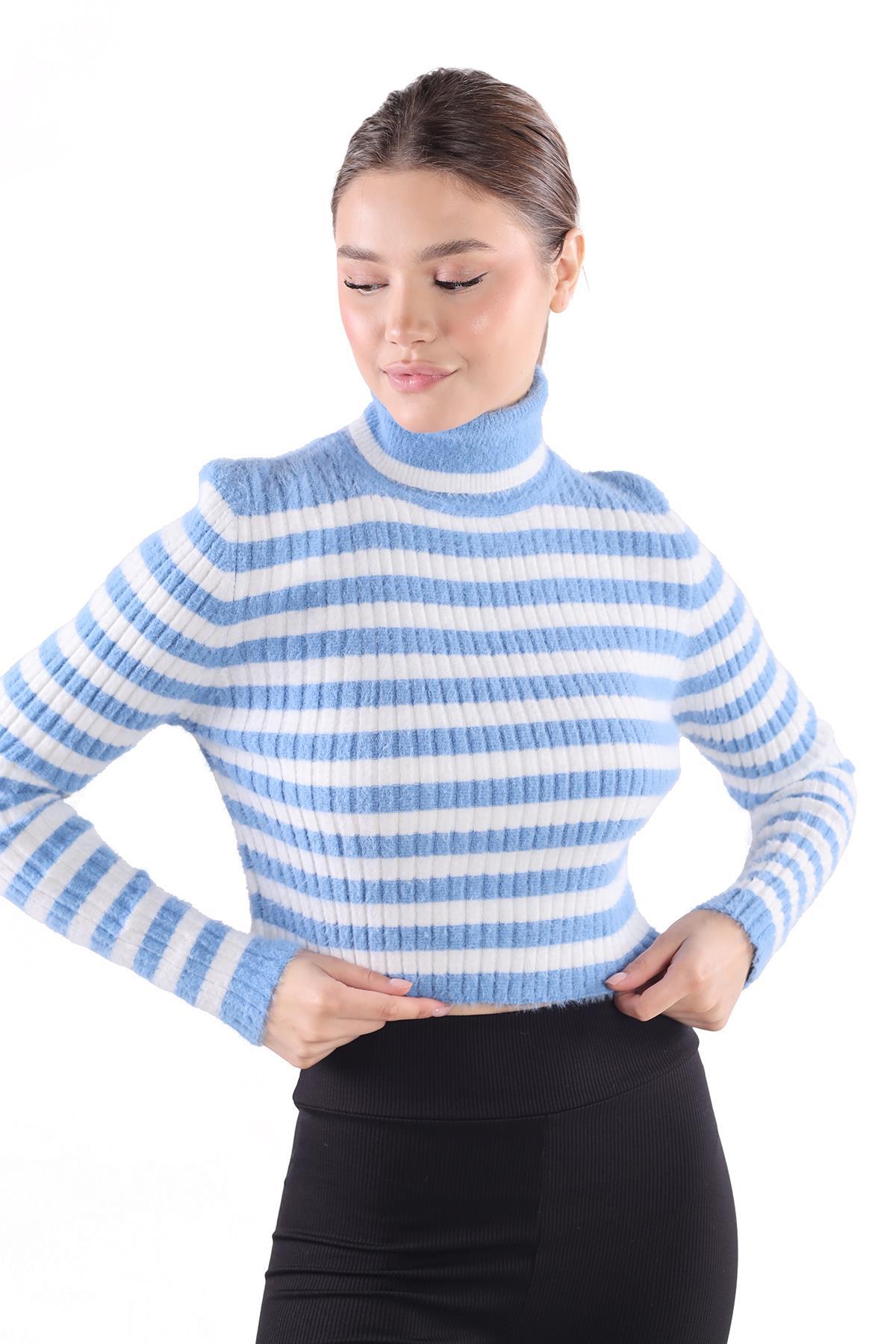 Mavi Boğazlı Çizgili Yumoş Kazak 6622