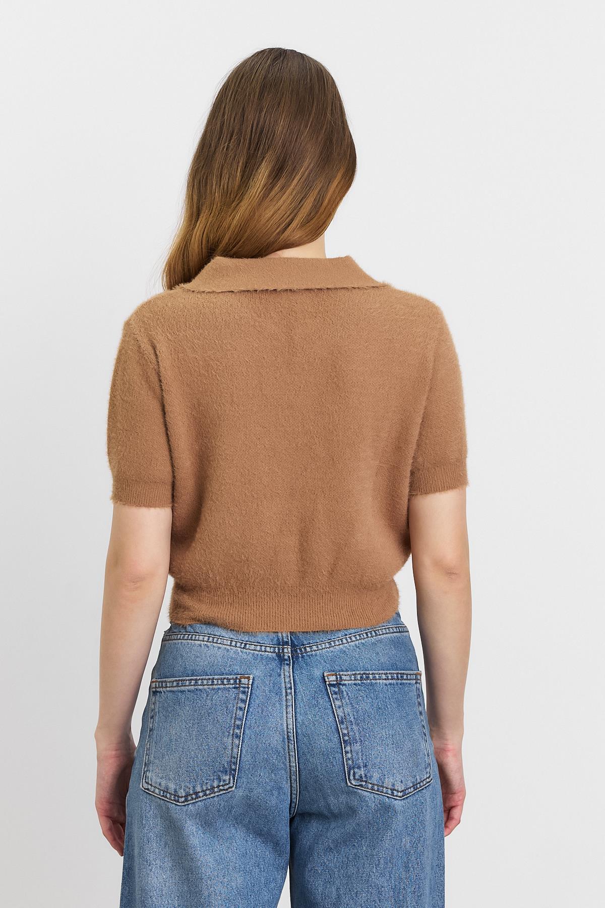 Kahve Gömlek Yaka Kazak 3082A