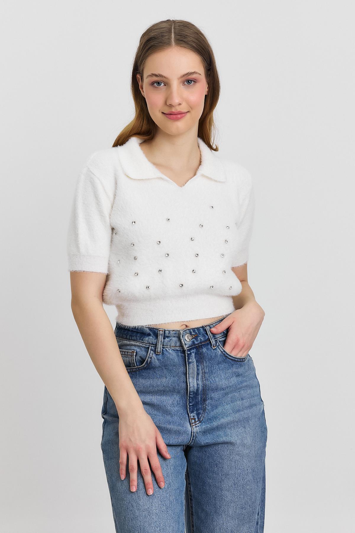 6625 İnci Detay Yumoş Kazak Ekru