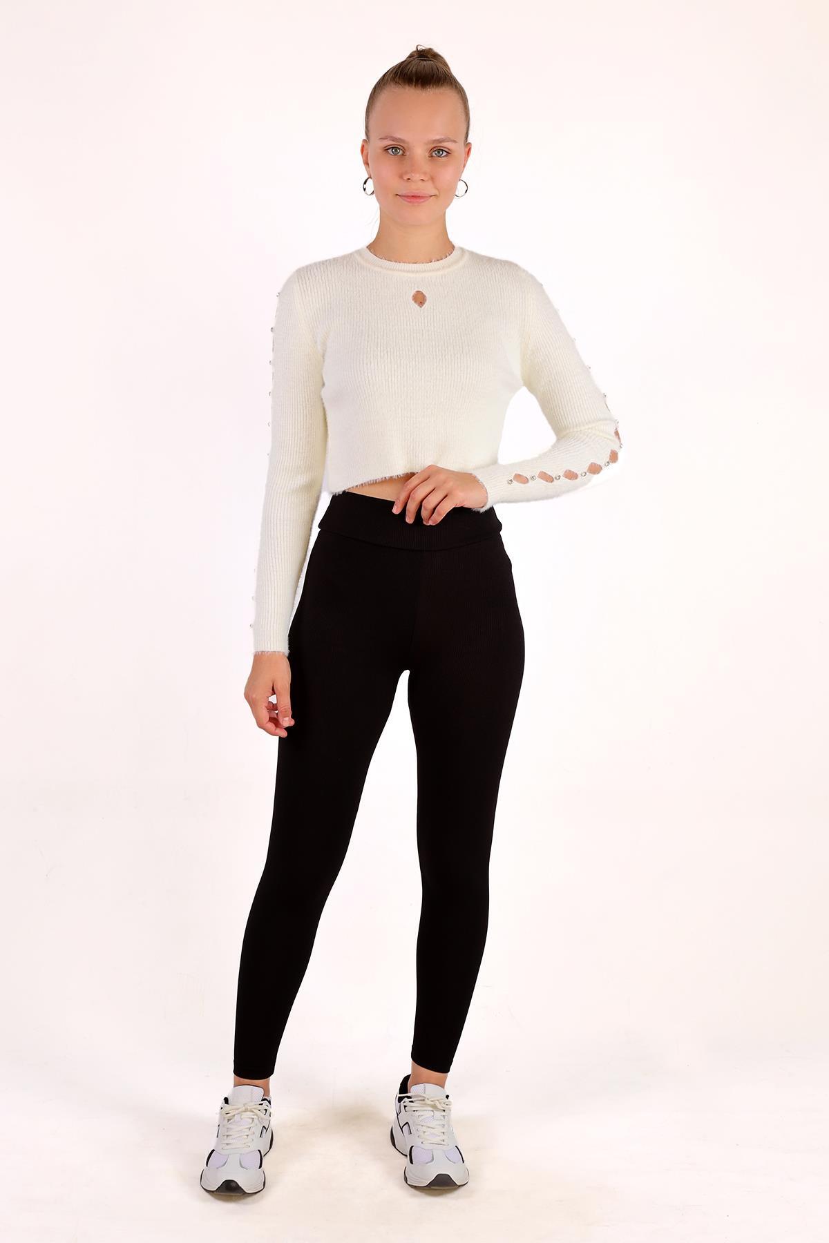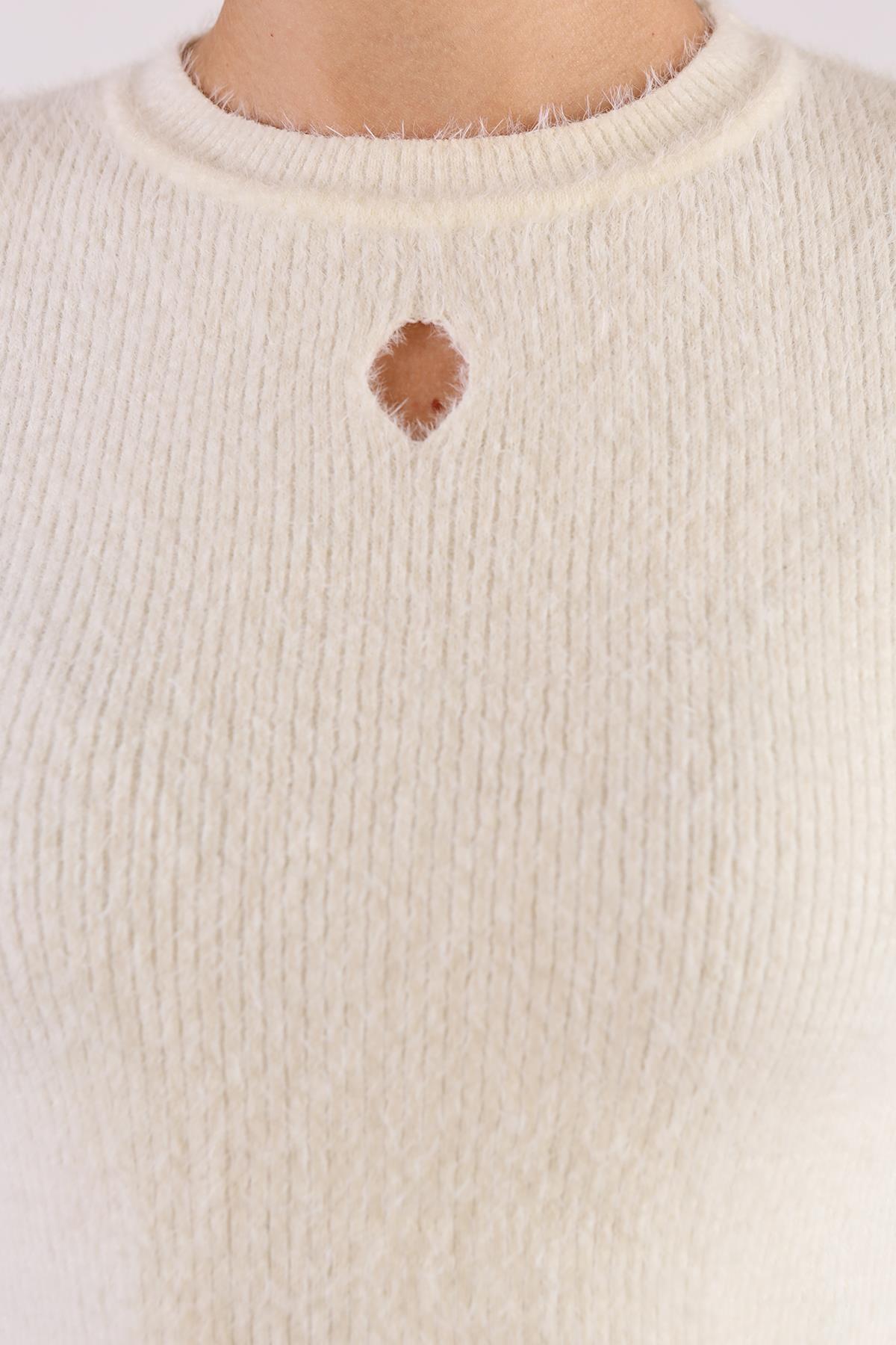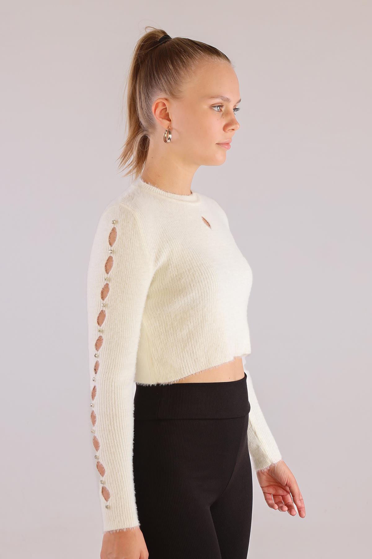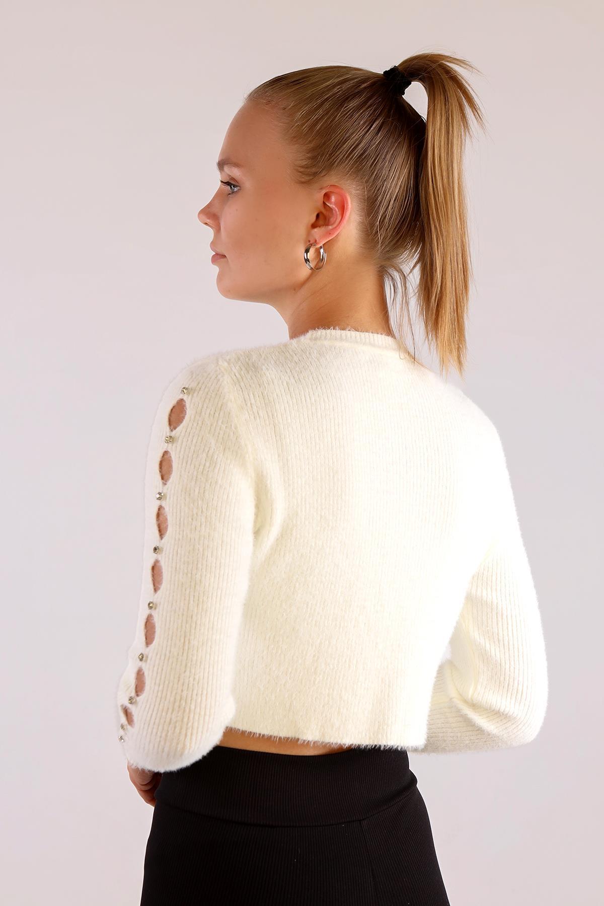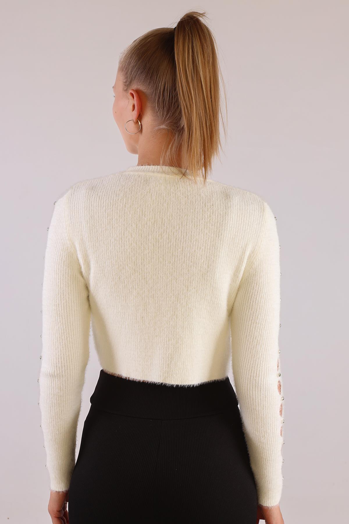 Ekru Kol Taş Detay Yumoş Kazak 6626