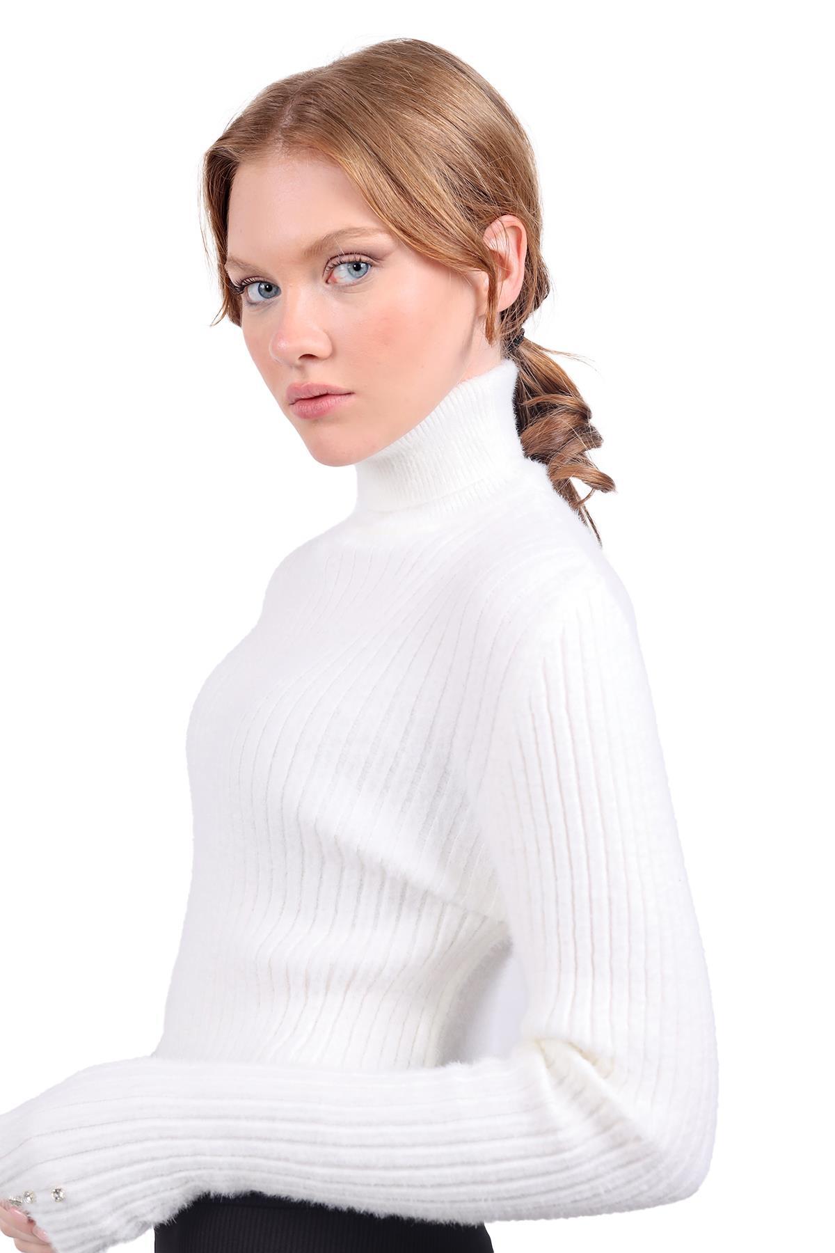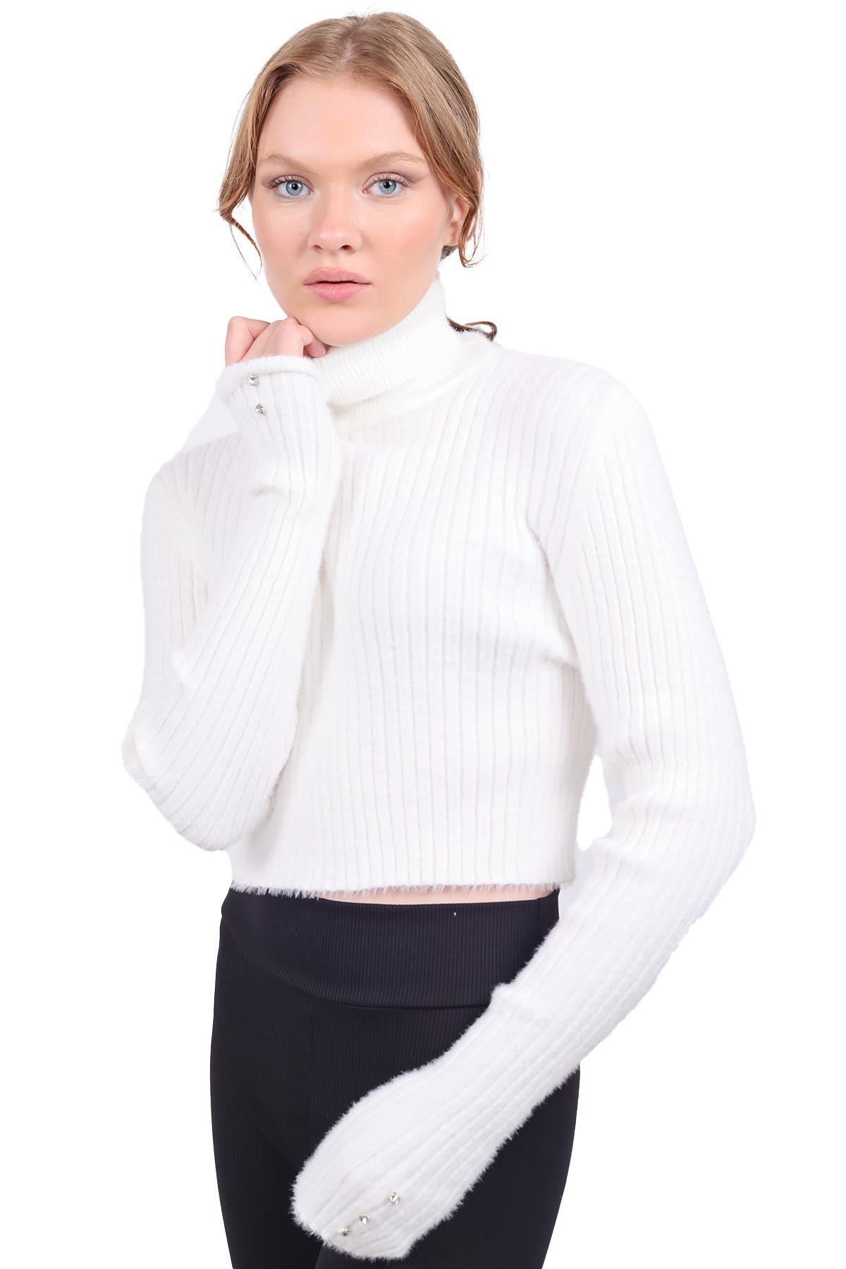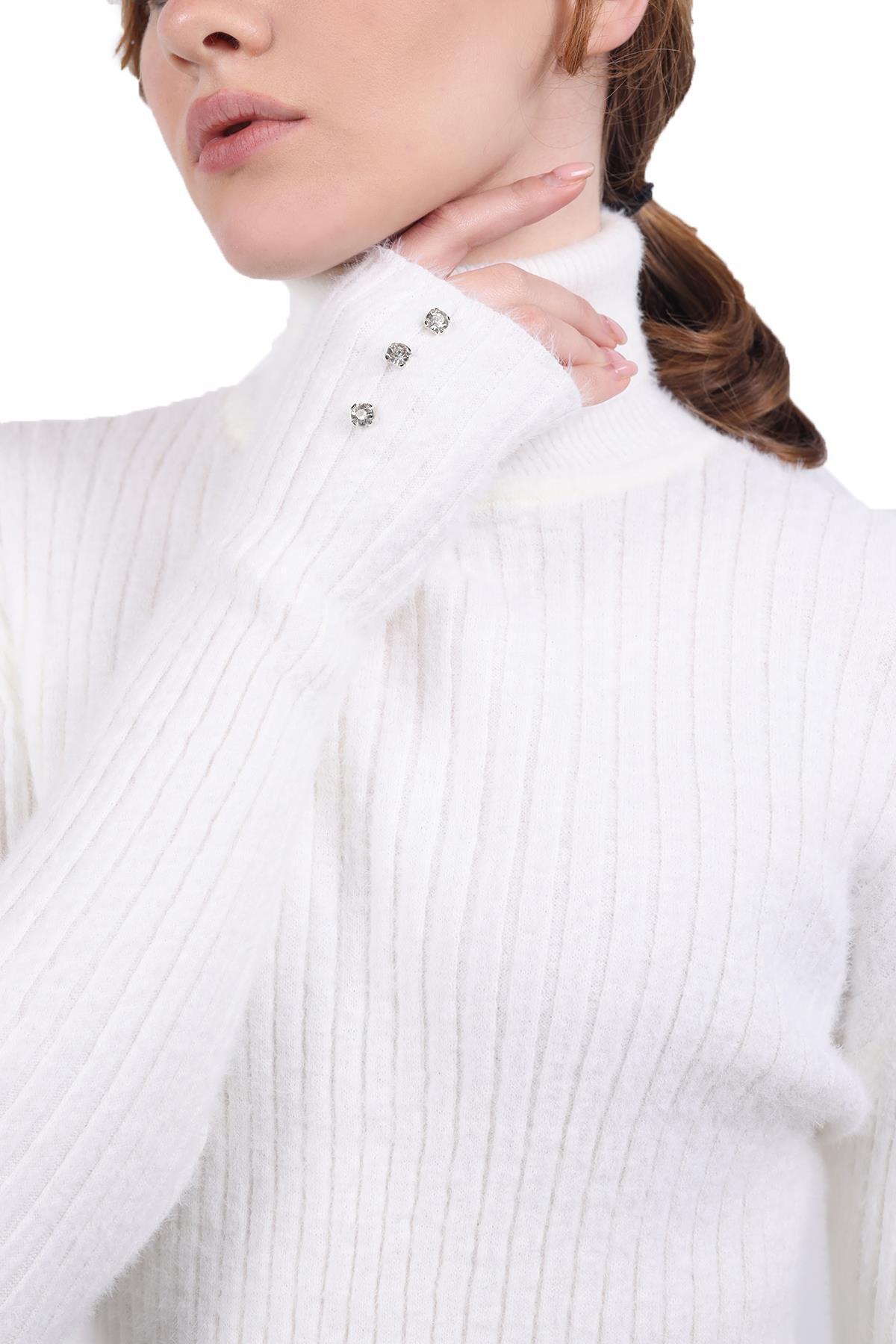 Ekru Boğazlı Kol Taş Detay Yumoş Kazak 6627