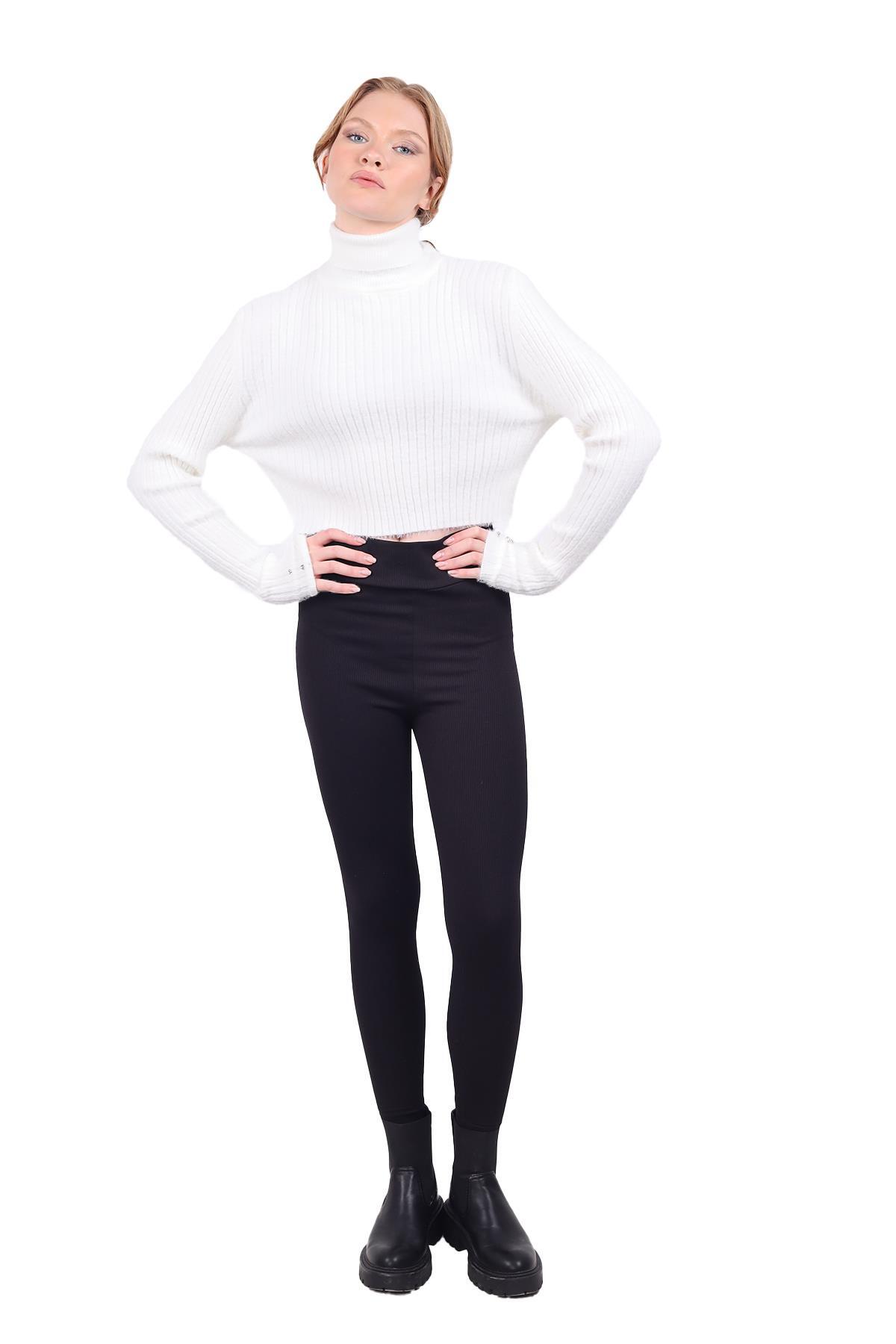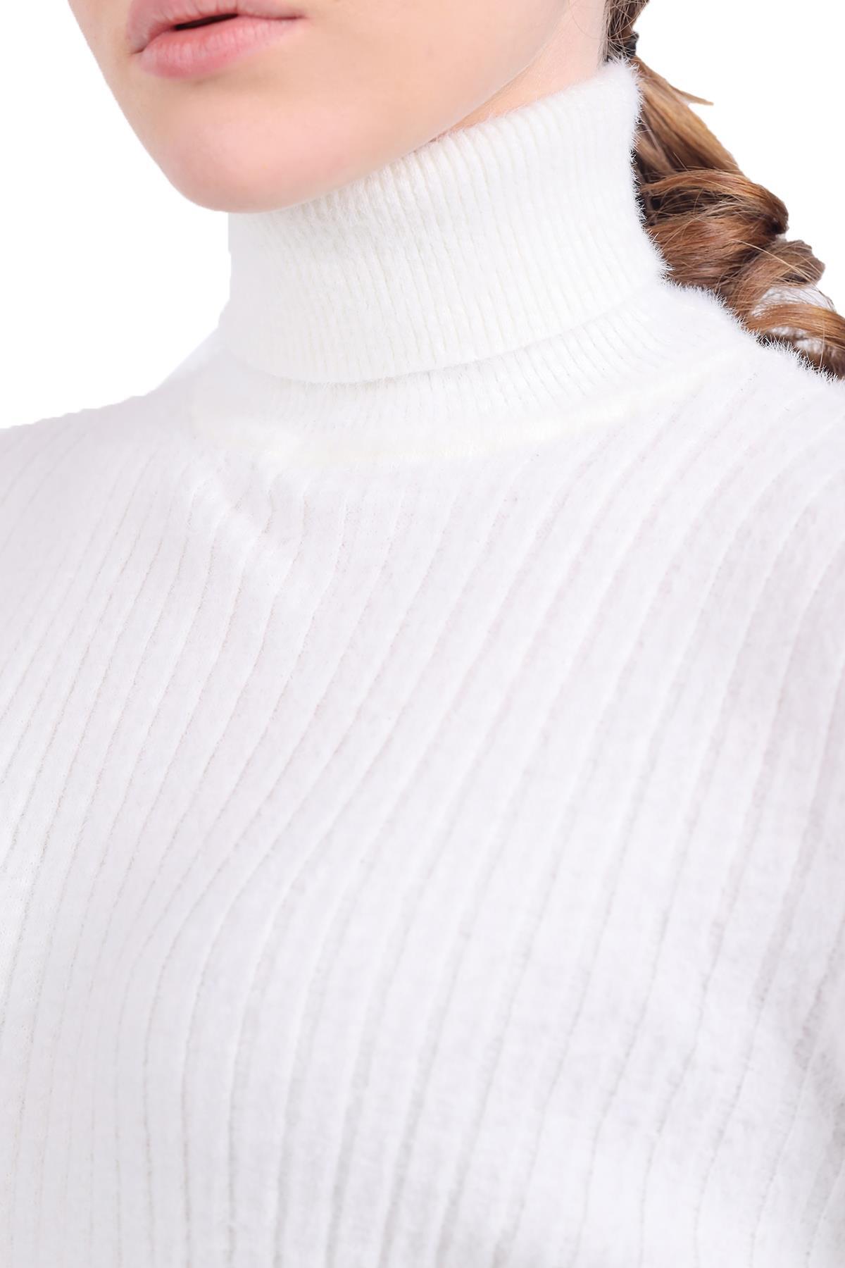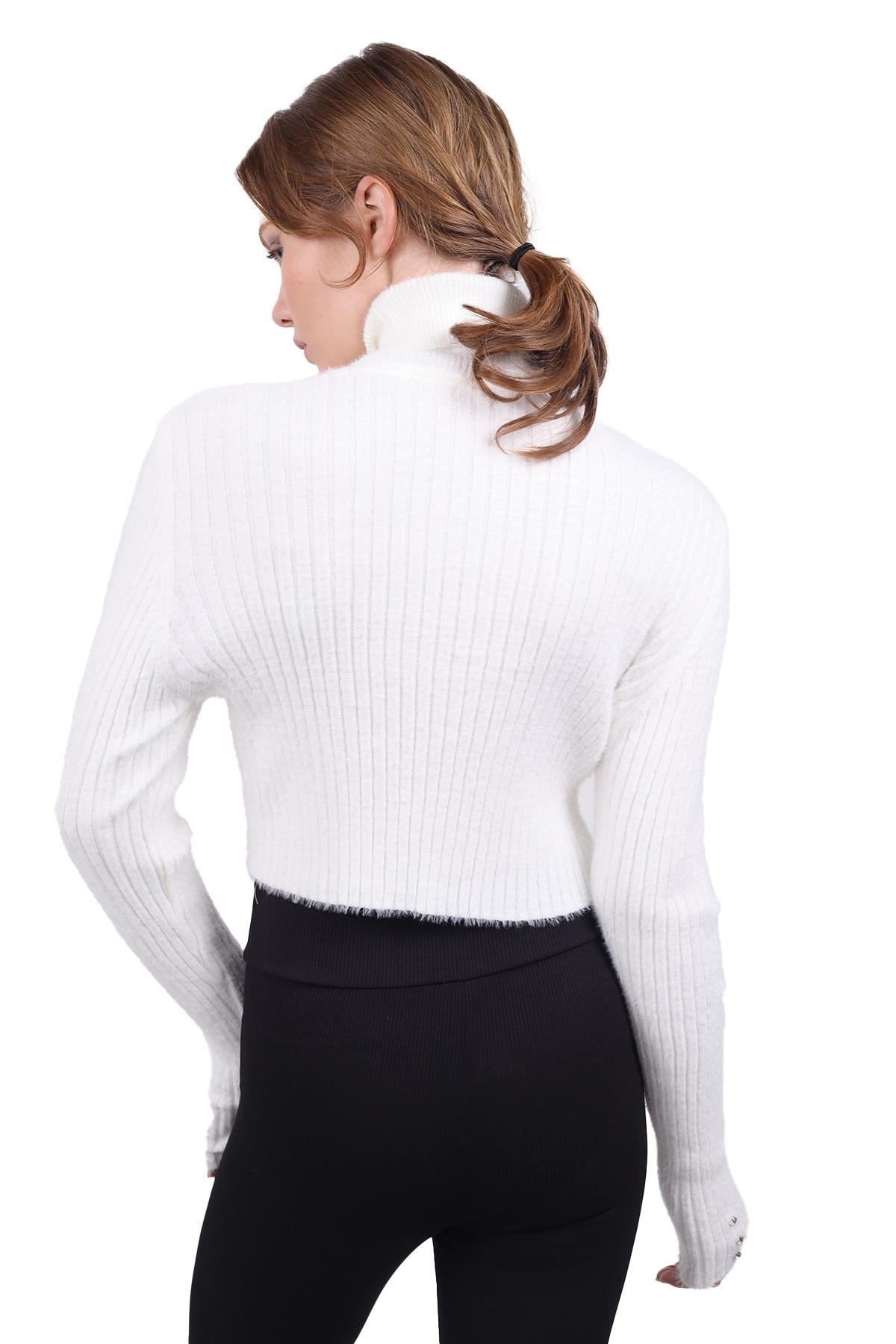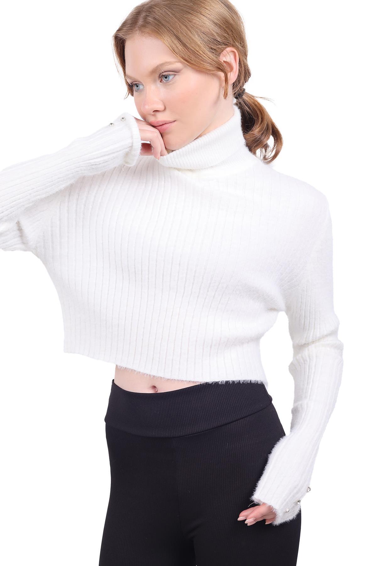 Ekru Boğazlı Kol Taş Detay Yumoş Kazak 6627