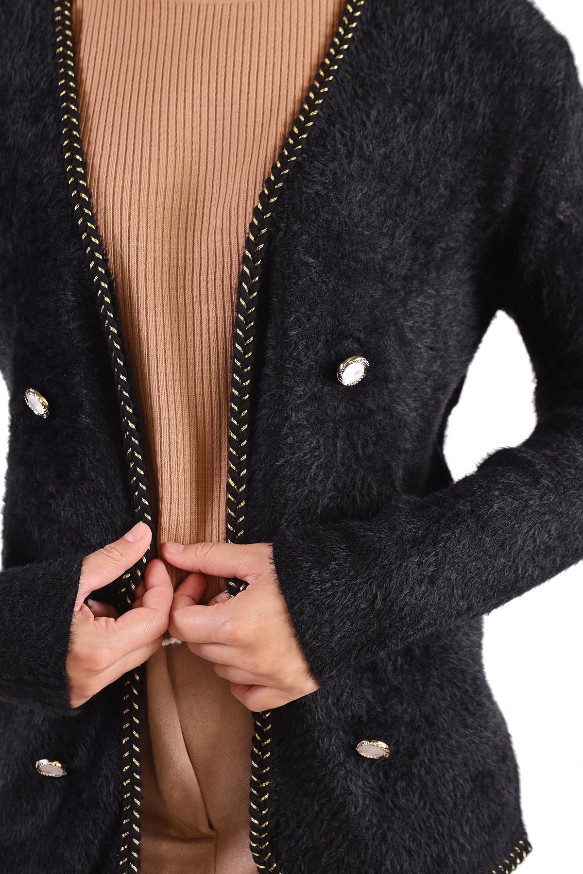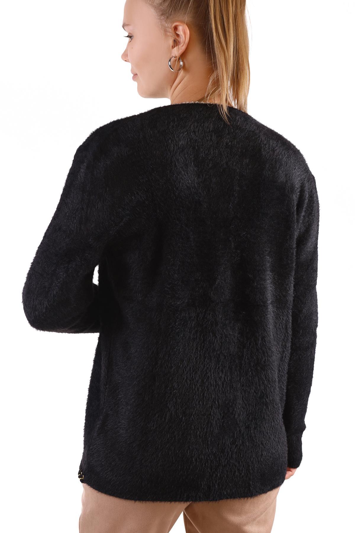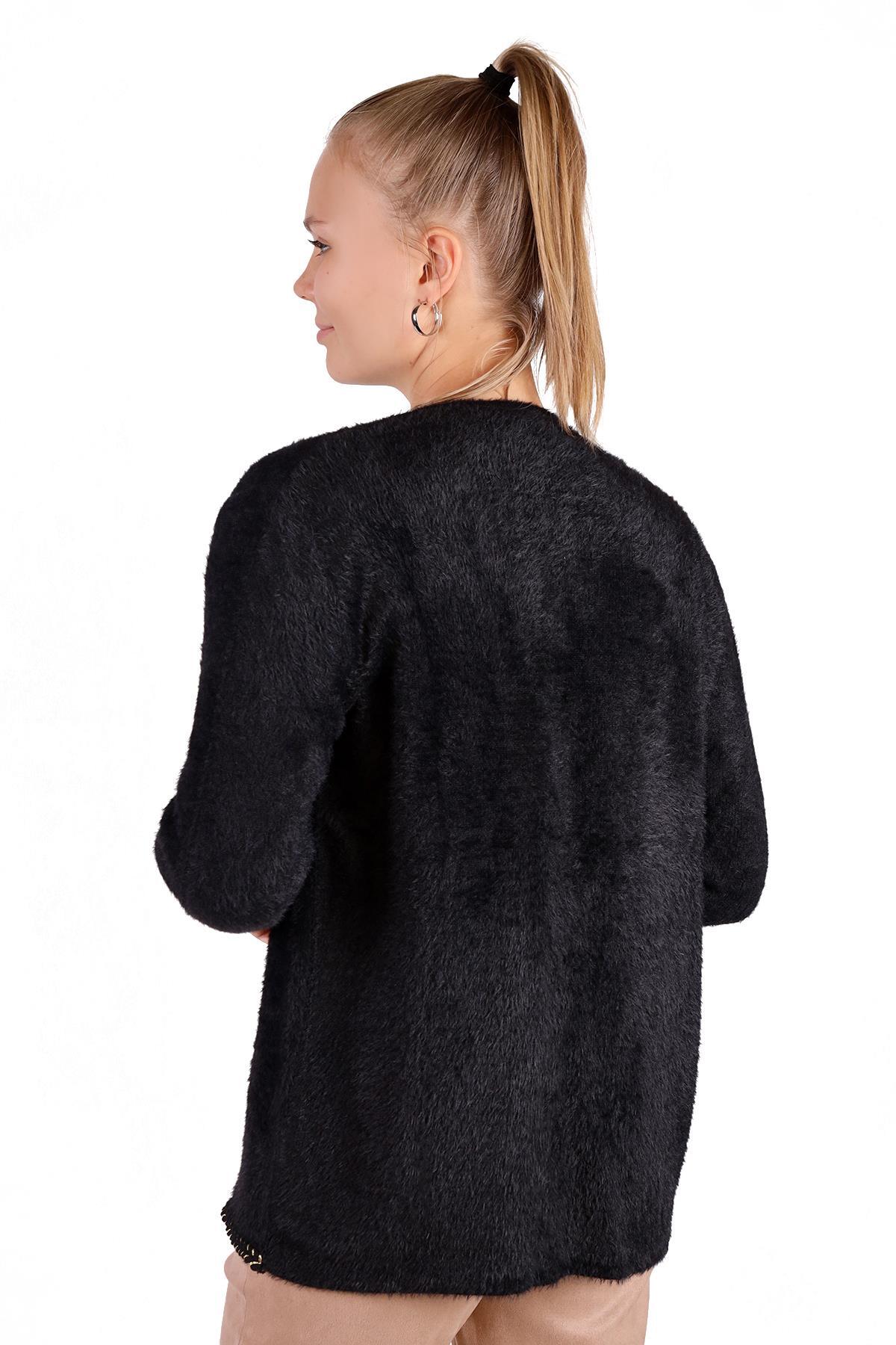 Siyah Örgü Detay Yumoş Hırka 6635