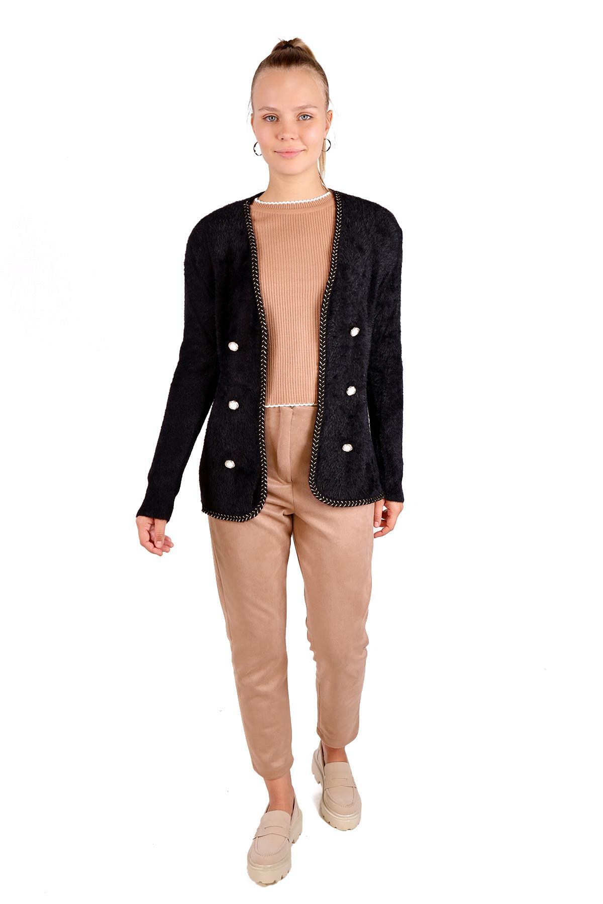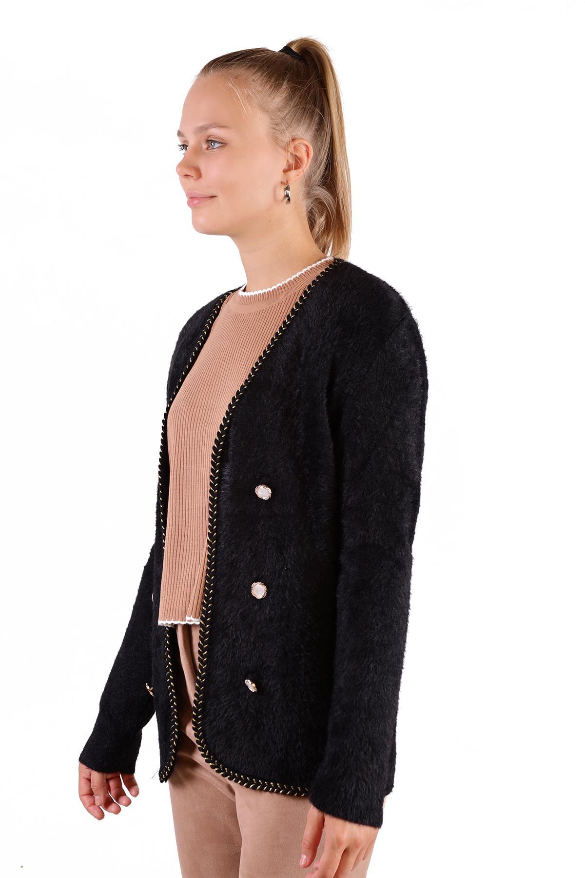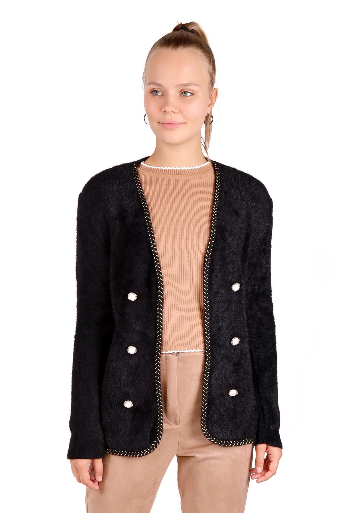 Siyah Örgü Detay Yumoş Hırka 6635