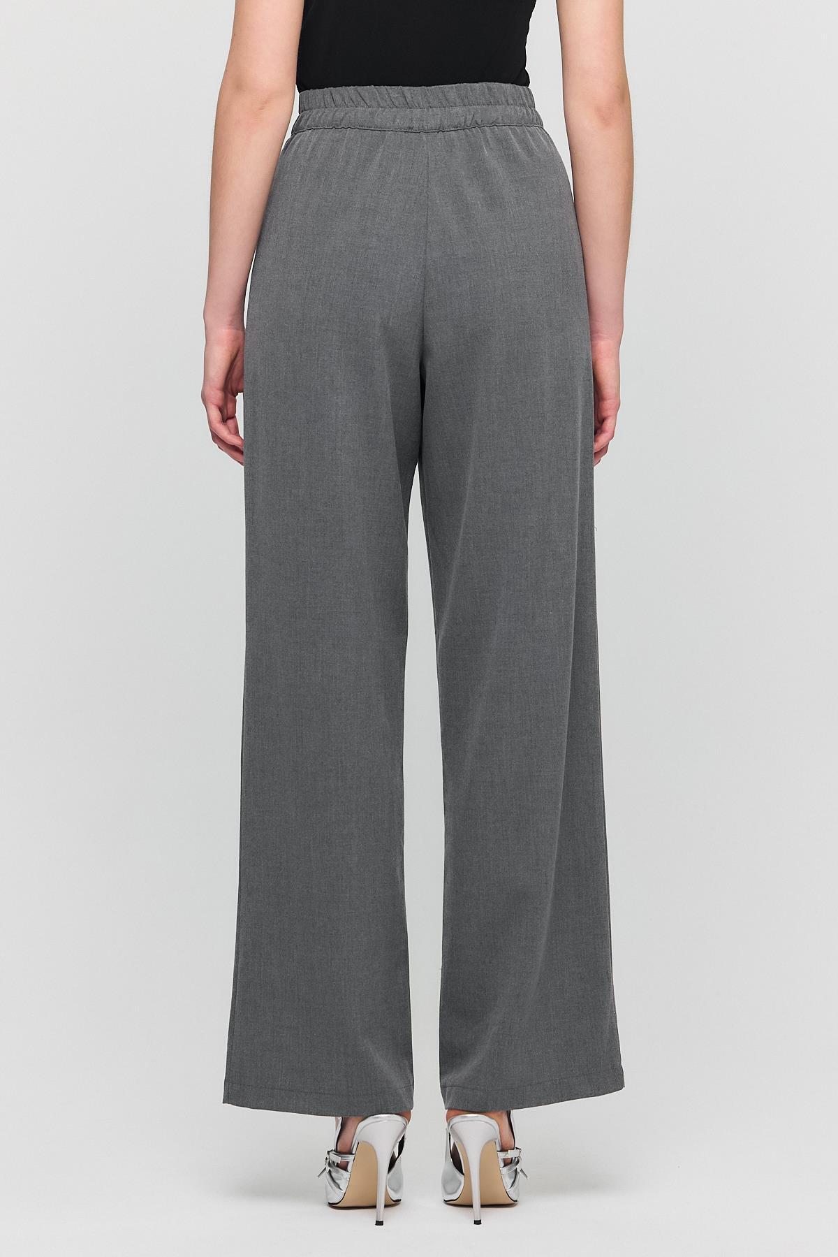 Gri Cırtlı Beli Lastik Detay Pantolon 6642