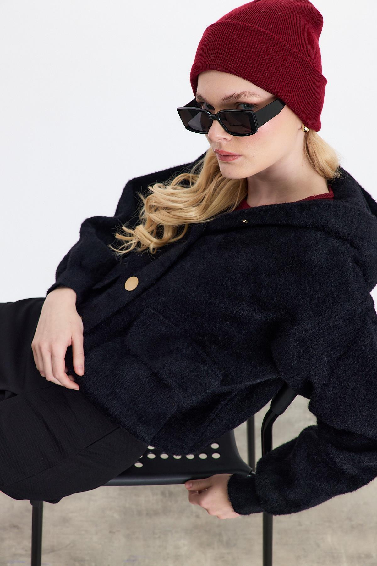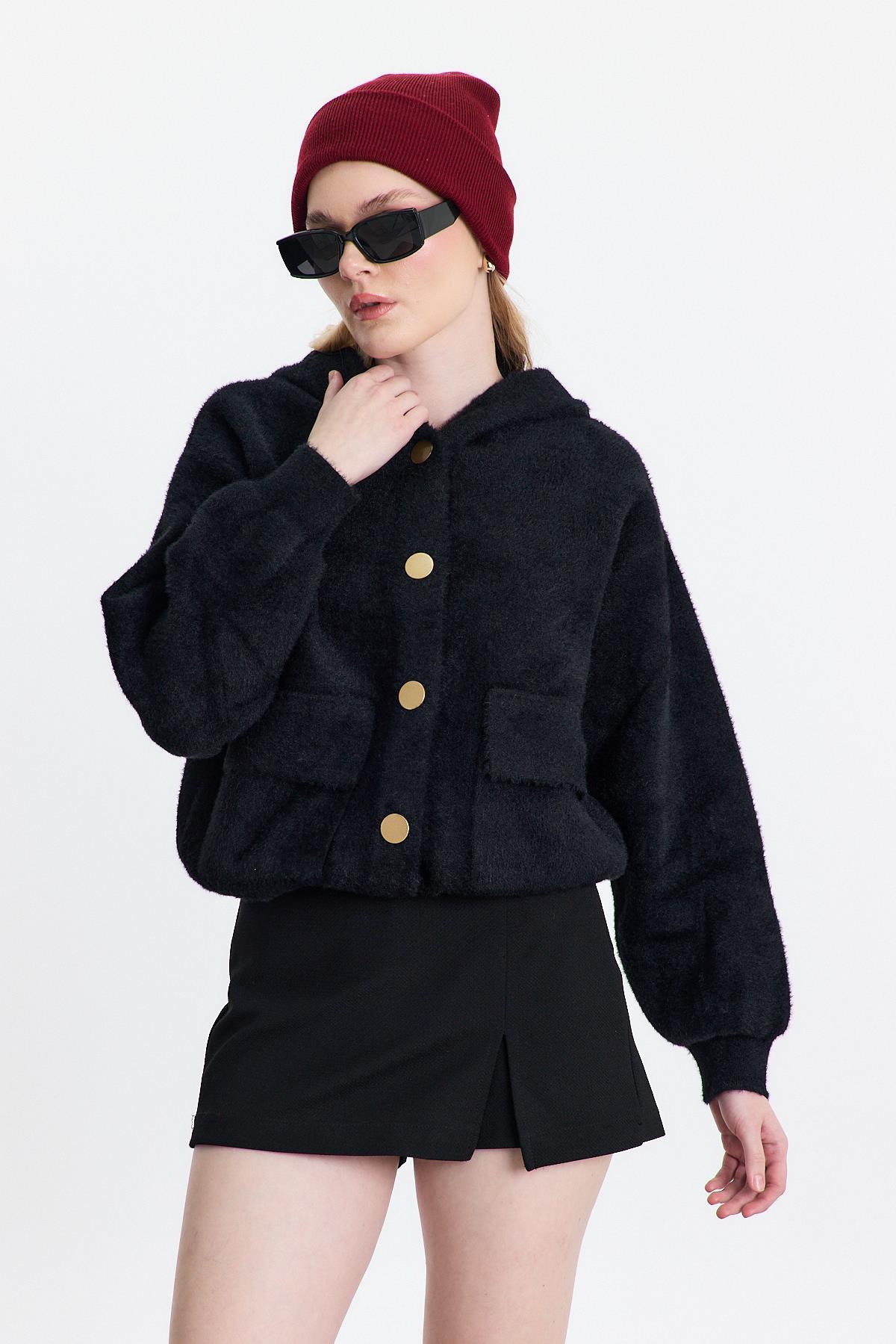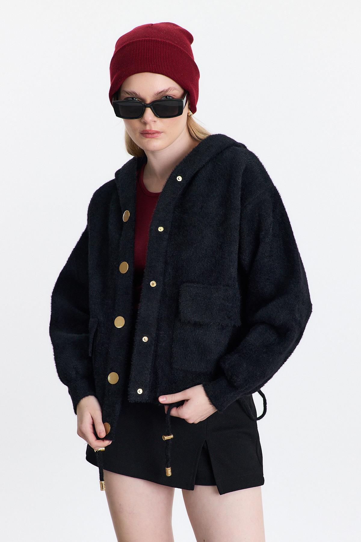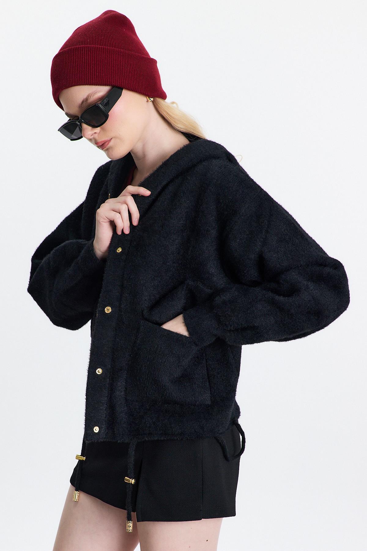 Siyah Pileli Bağlamalı Hırka 8142 - RAYS Siyah Pileli Bağlamalı Hırka 8142 - RAYS (1)