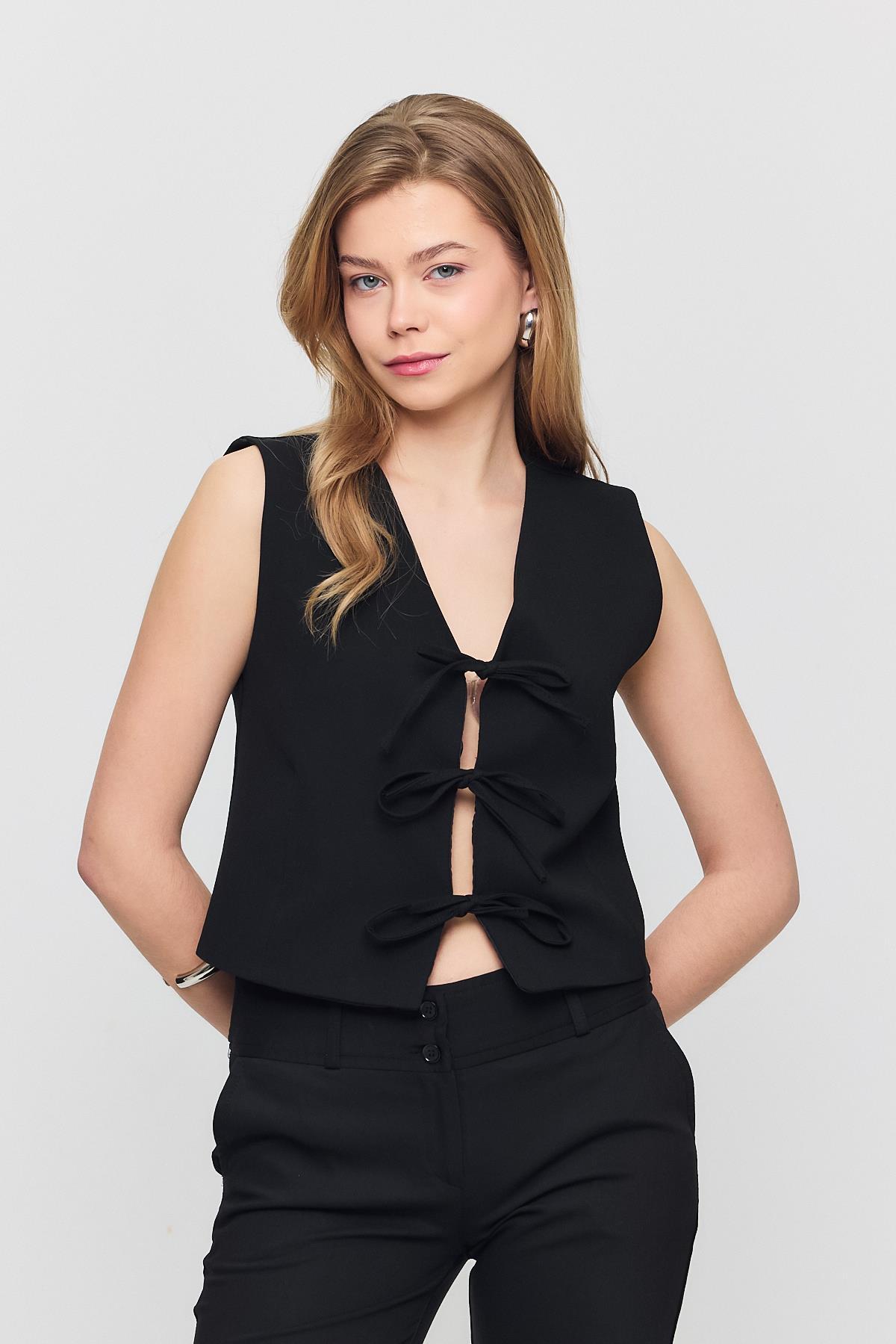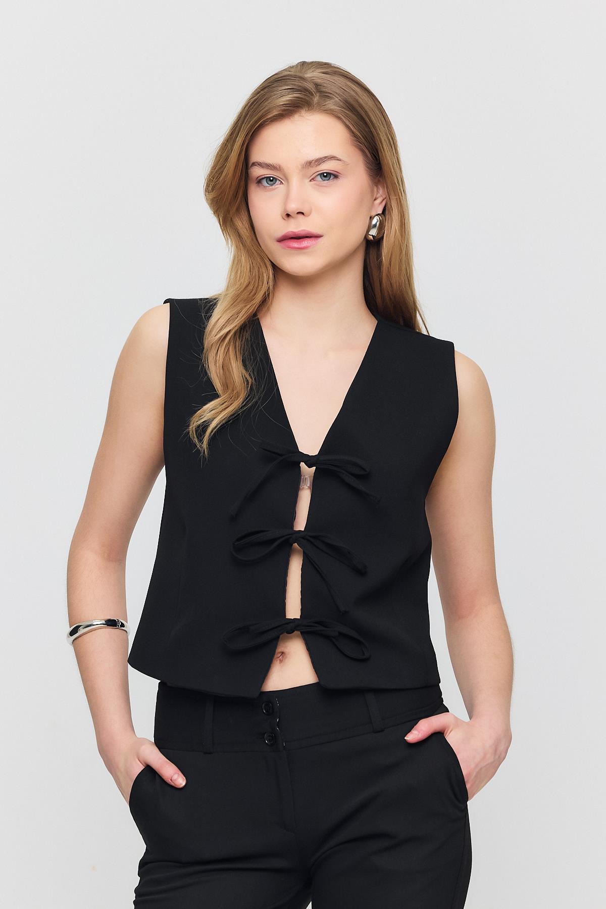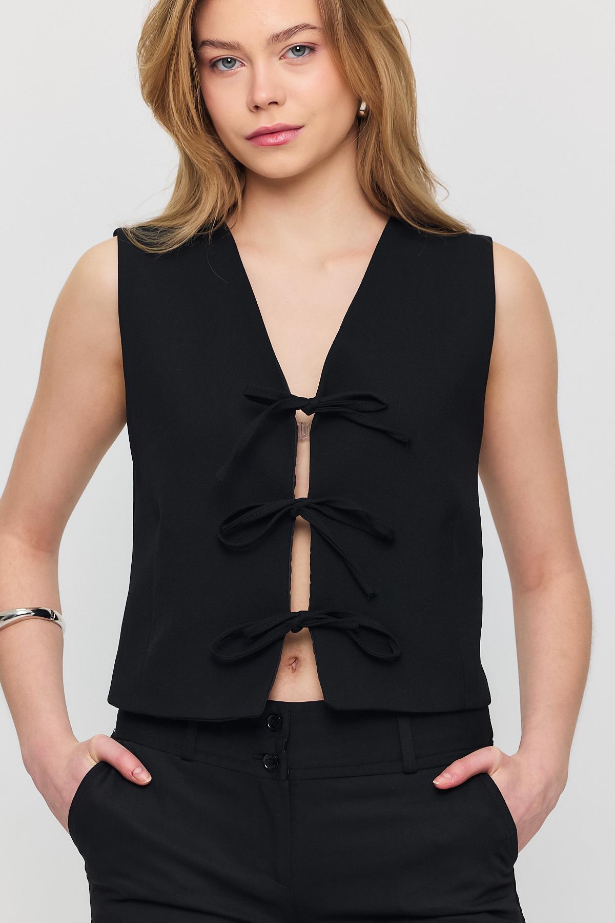 Siyah Bağcıklı Sıfır Kol Yelek 6645