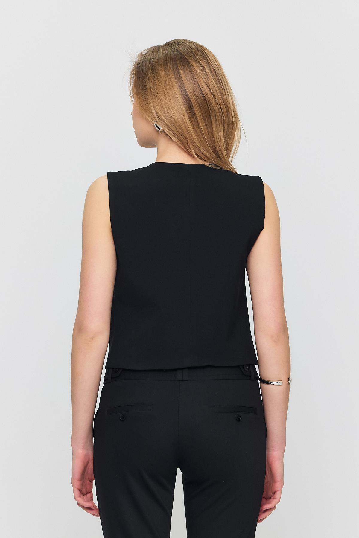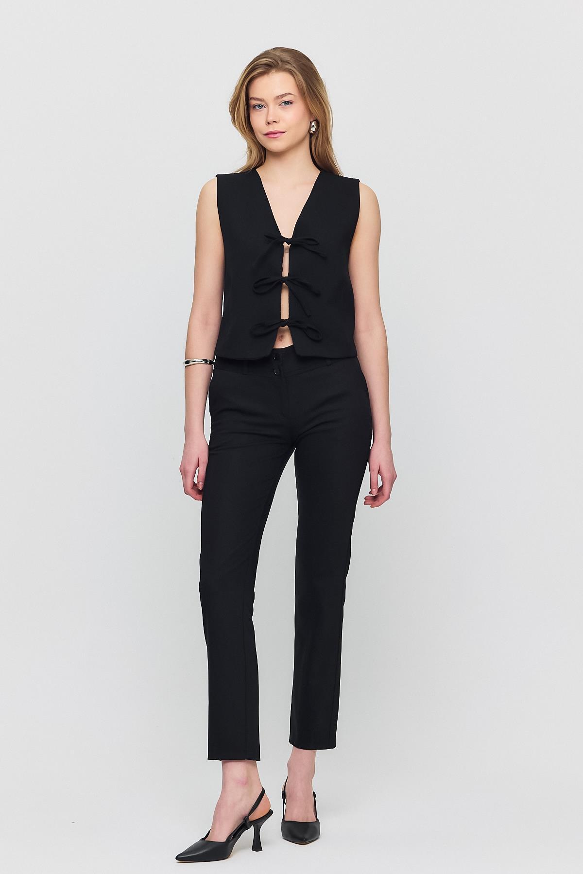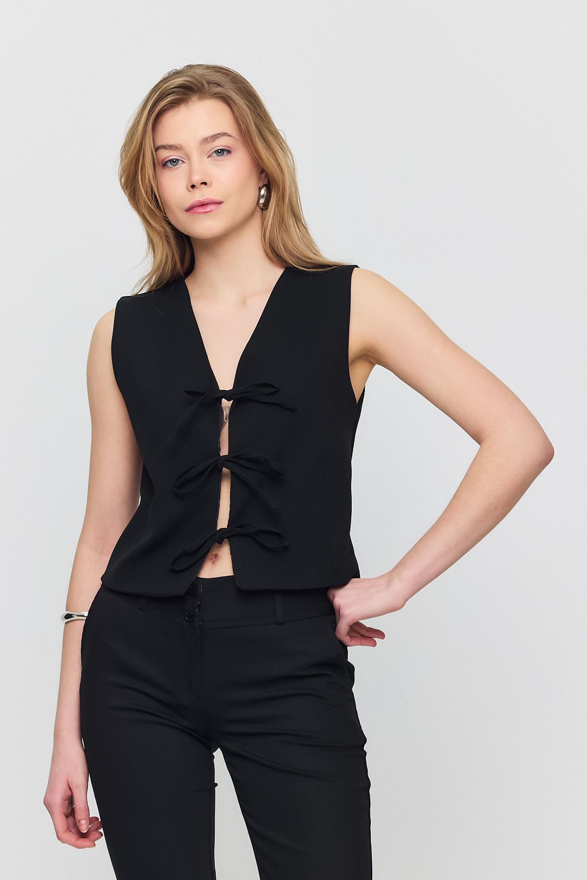 Siyah Bağcıklı Sıfır Kol Yelek 6645