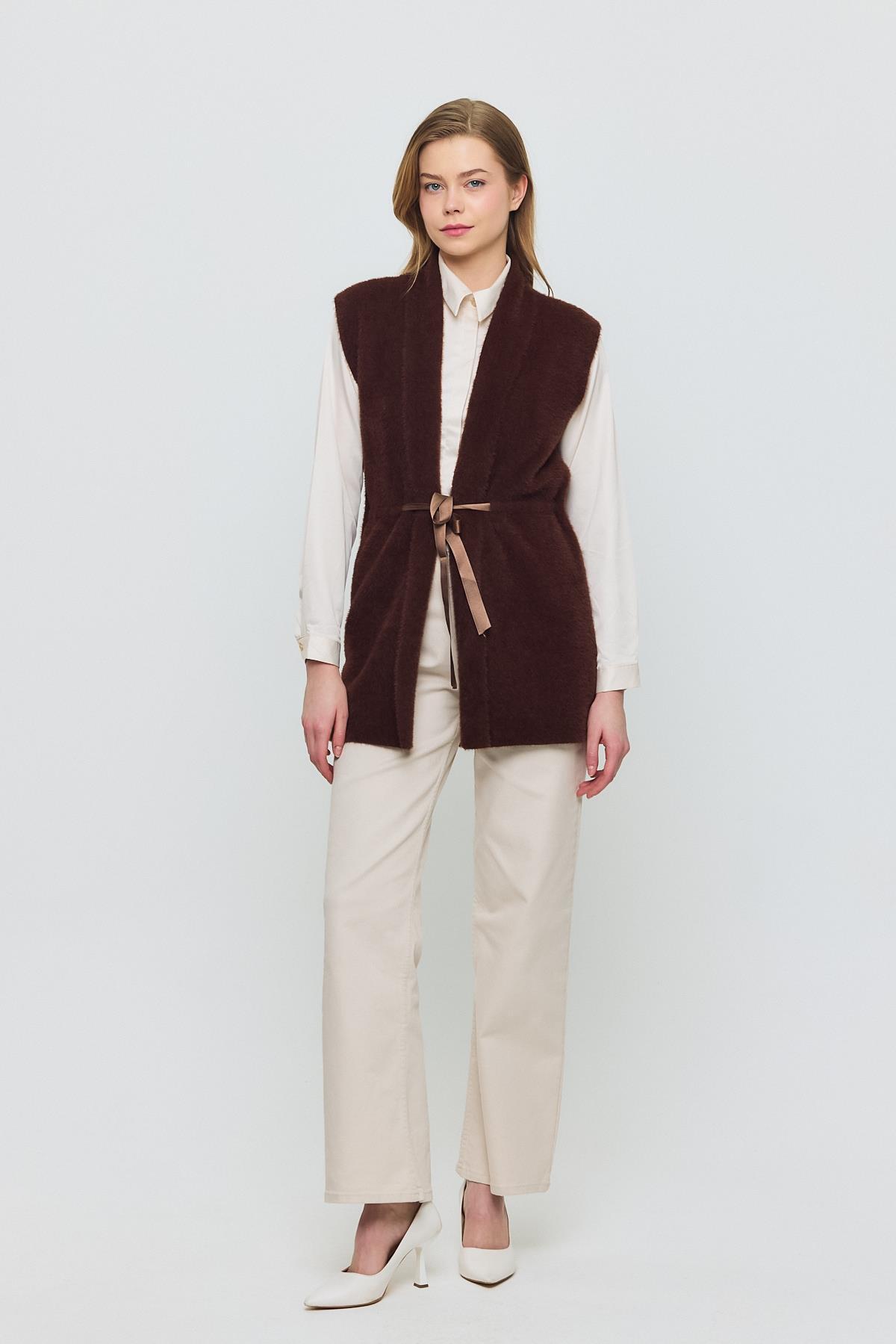 Kahve Gold Düğmeli Kemerli Yelek 8145A