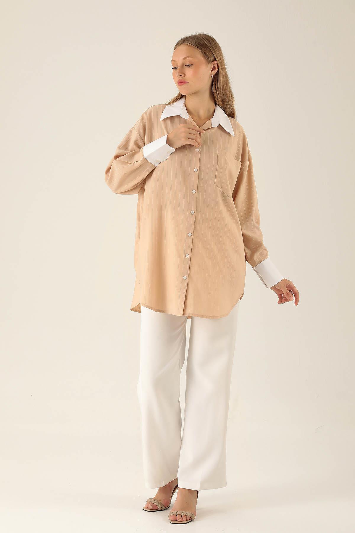 251152 Düğmeli Klasik Gömlek Bej - RAYS