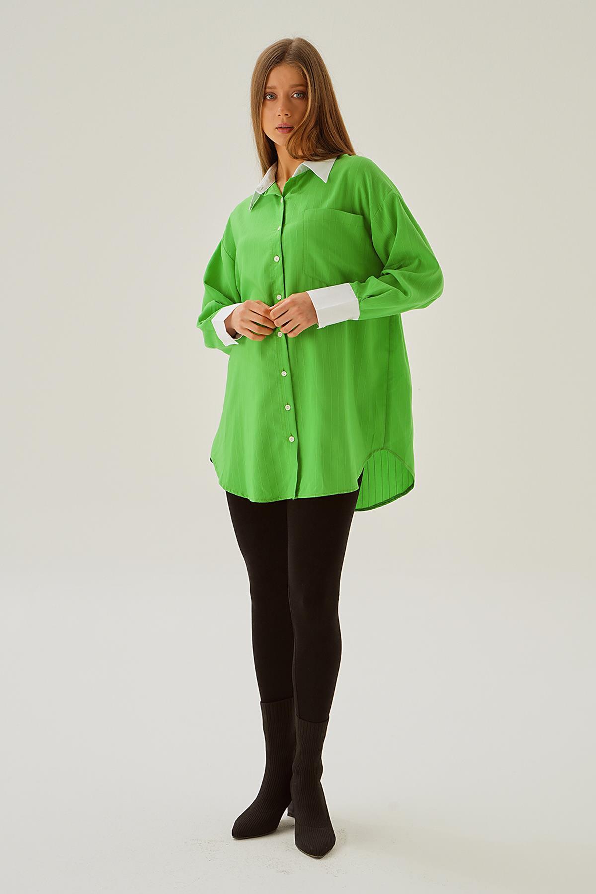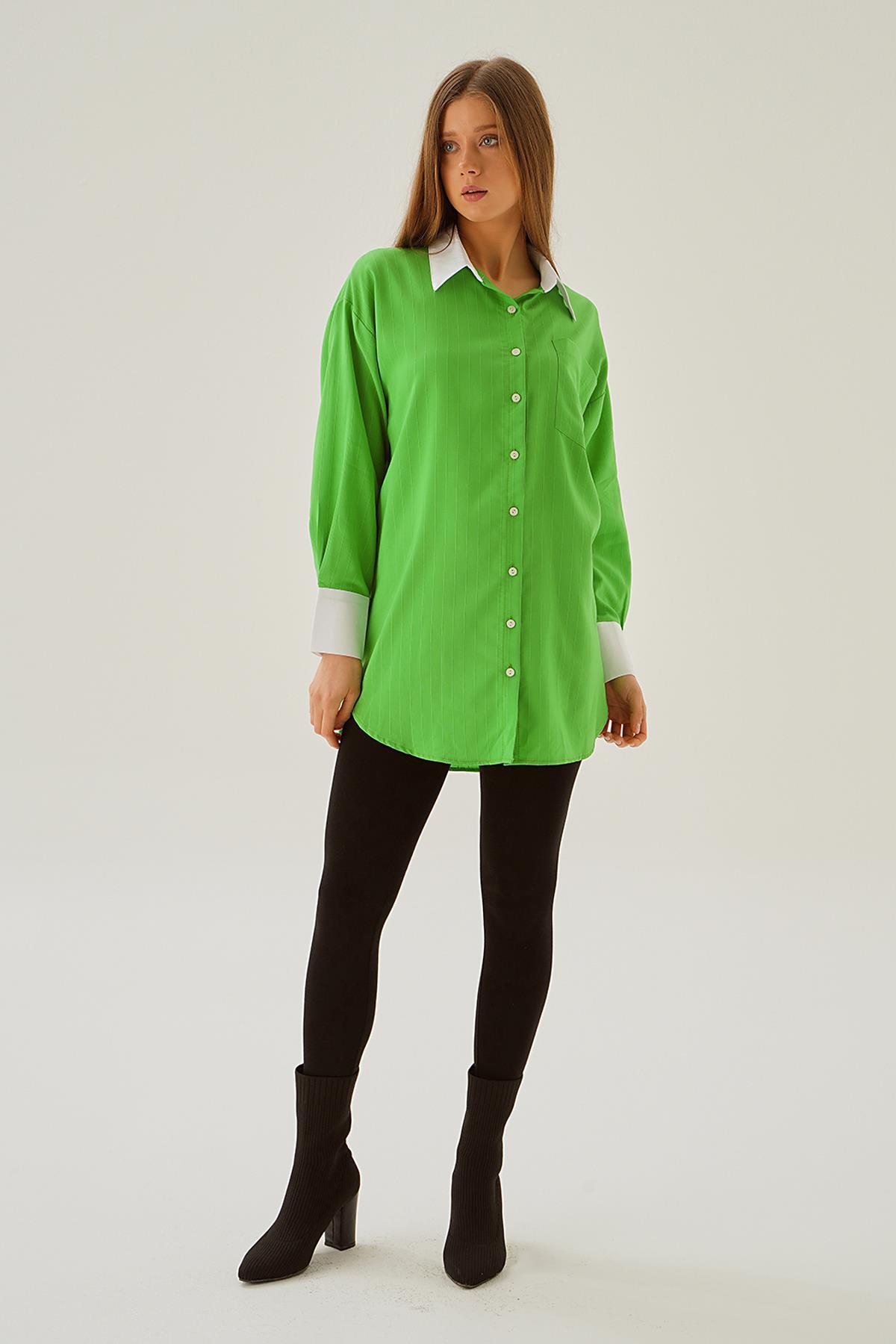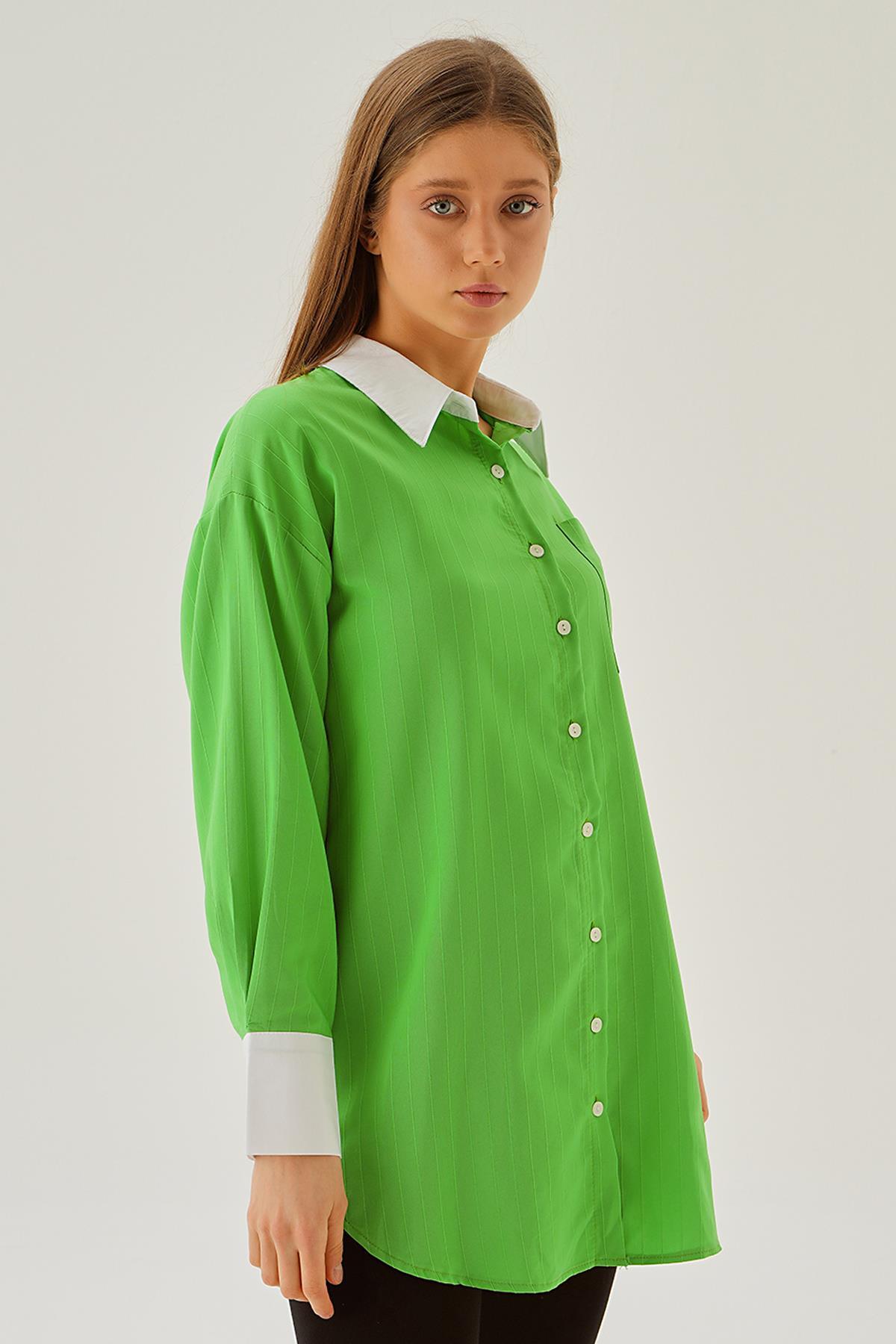 Yeşil Çizgili Salaş Gömlek 5475