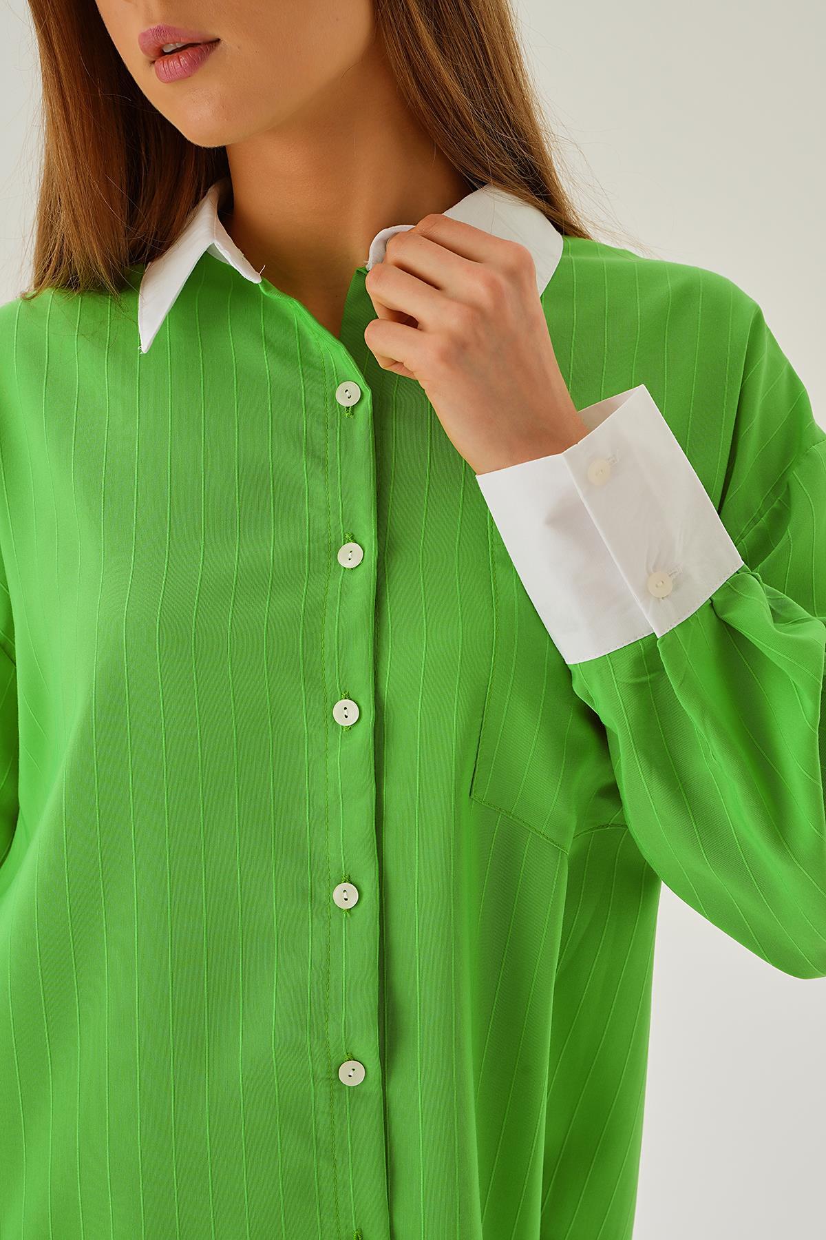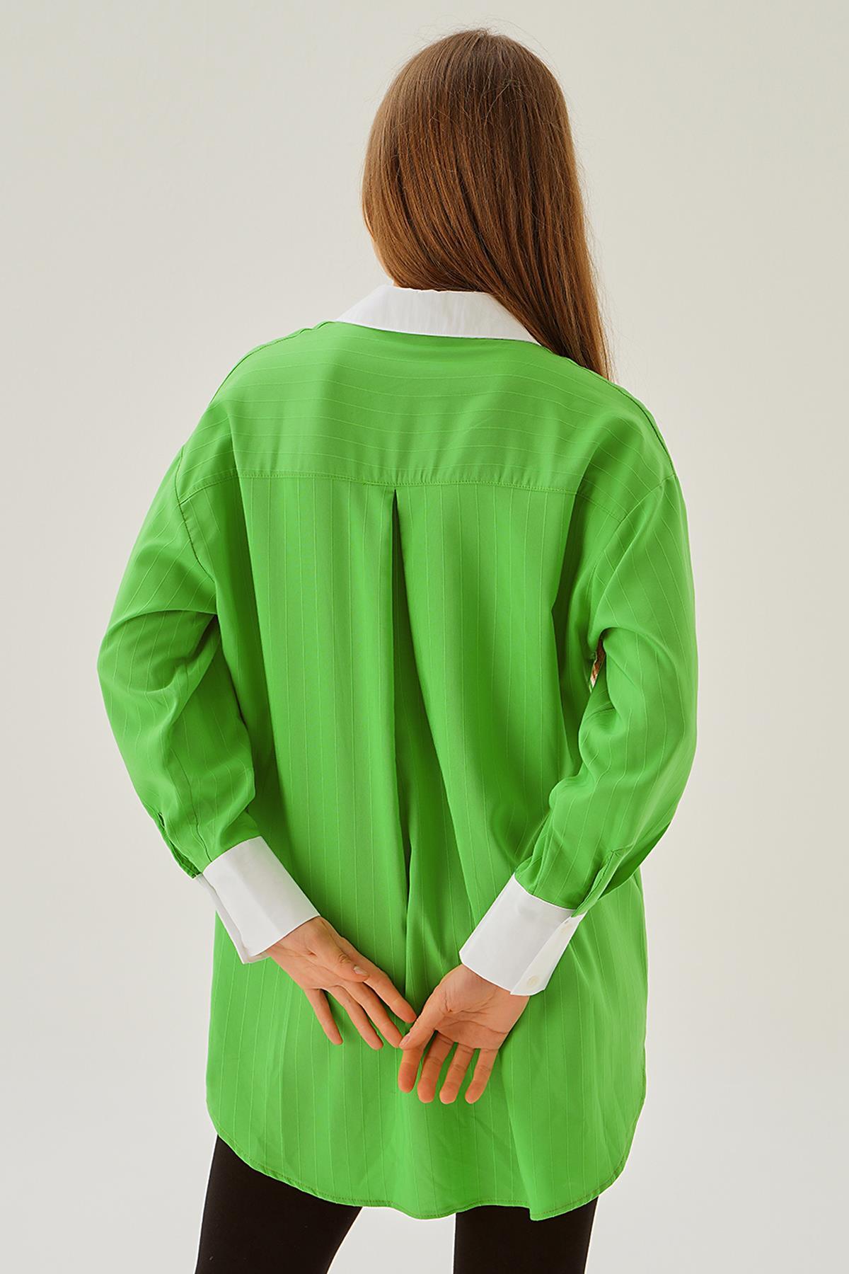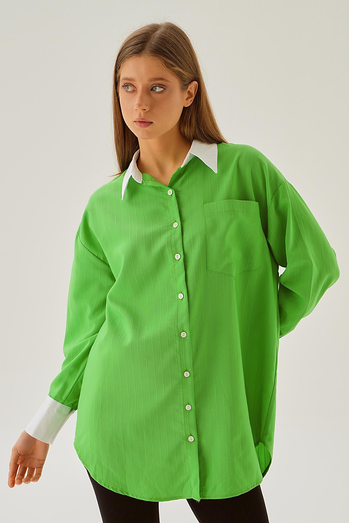 Yeşil Çizgili Salaş Gömlek 5475