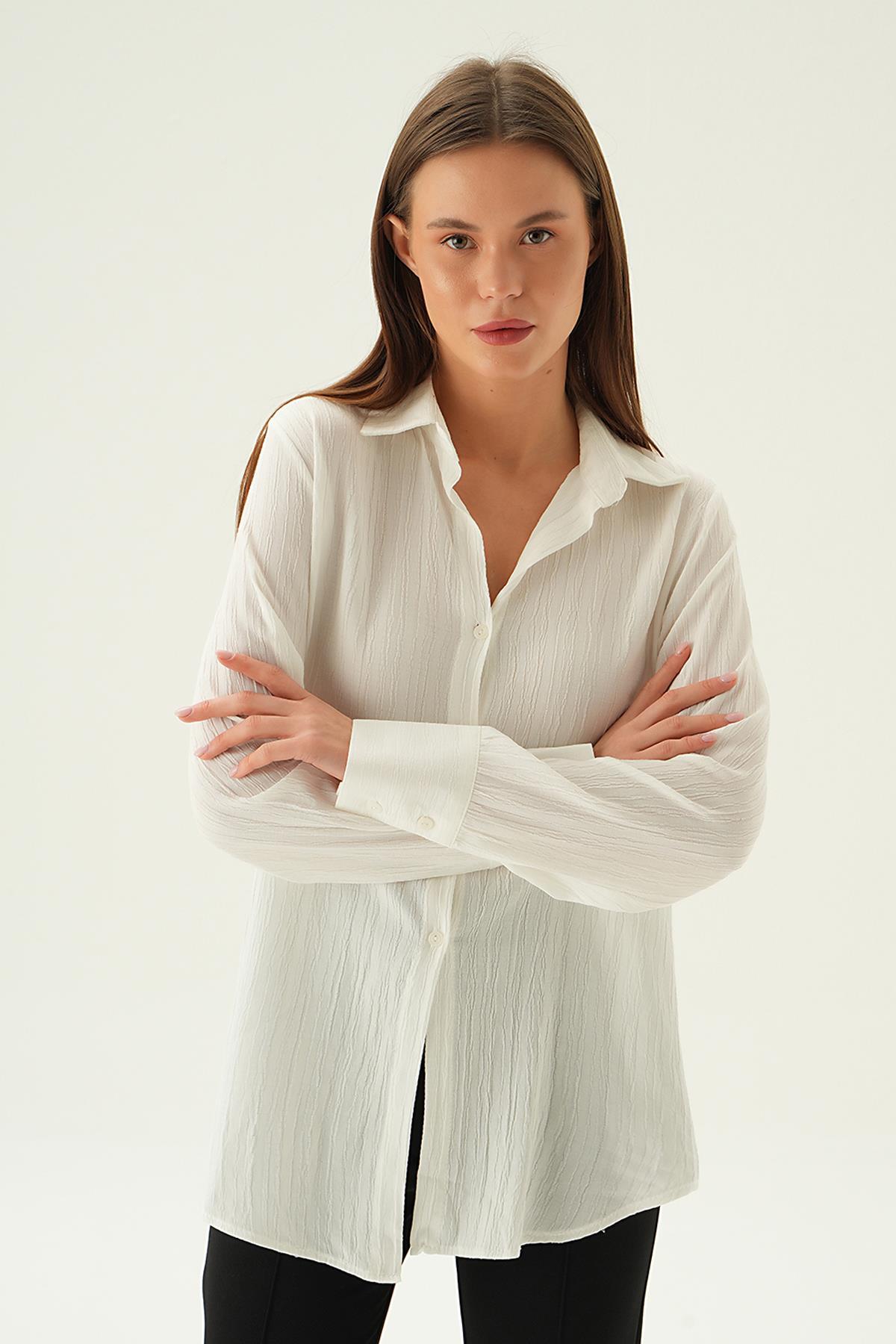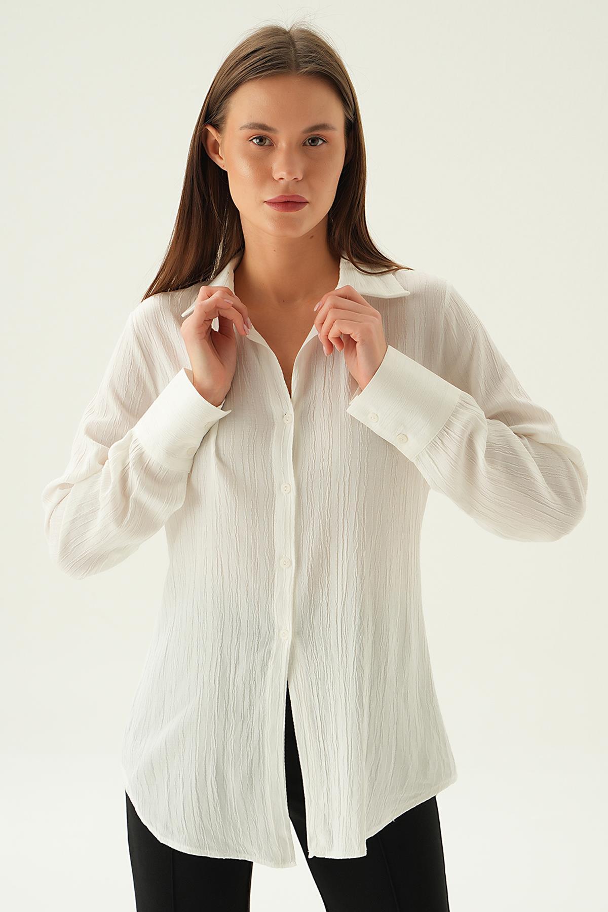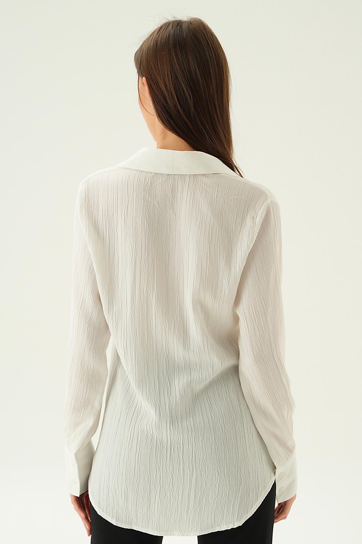 Ekru Kol Düğme Detay Gömlek 6676-1