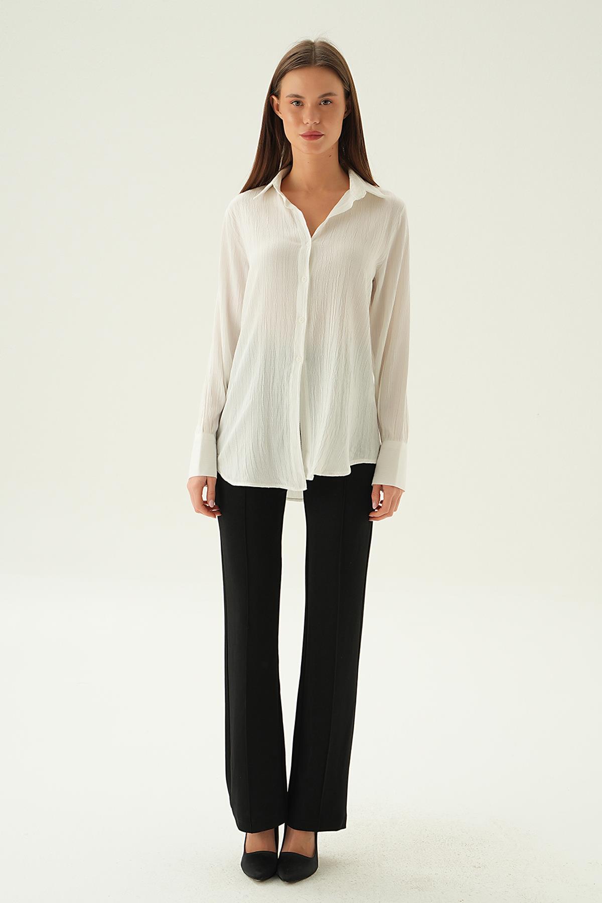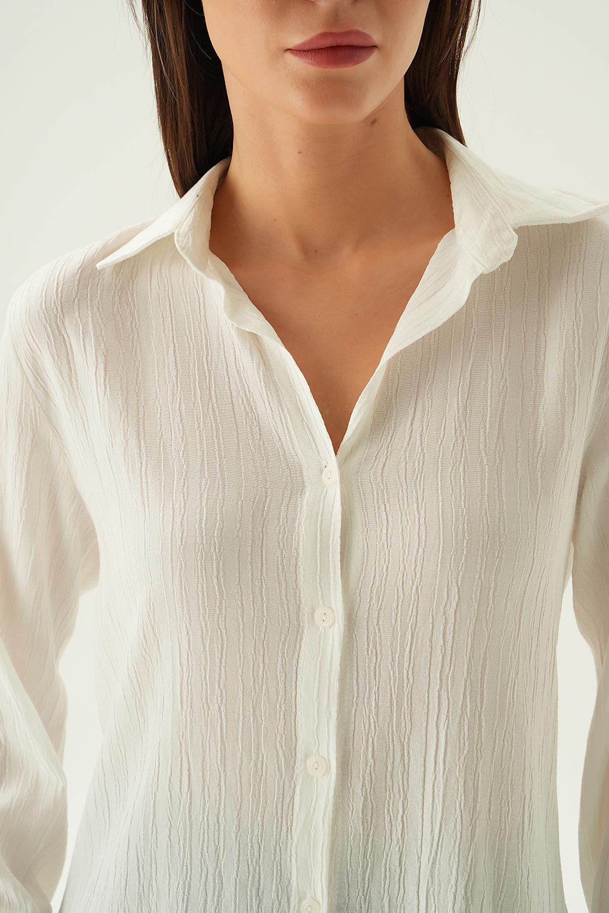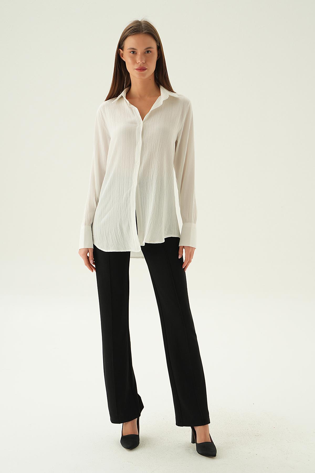 Ekru Kol Düğme Detay Gömlek 6676-1
