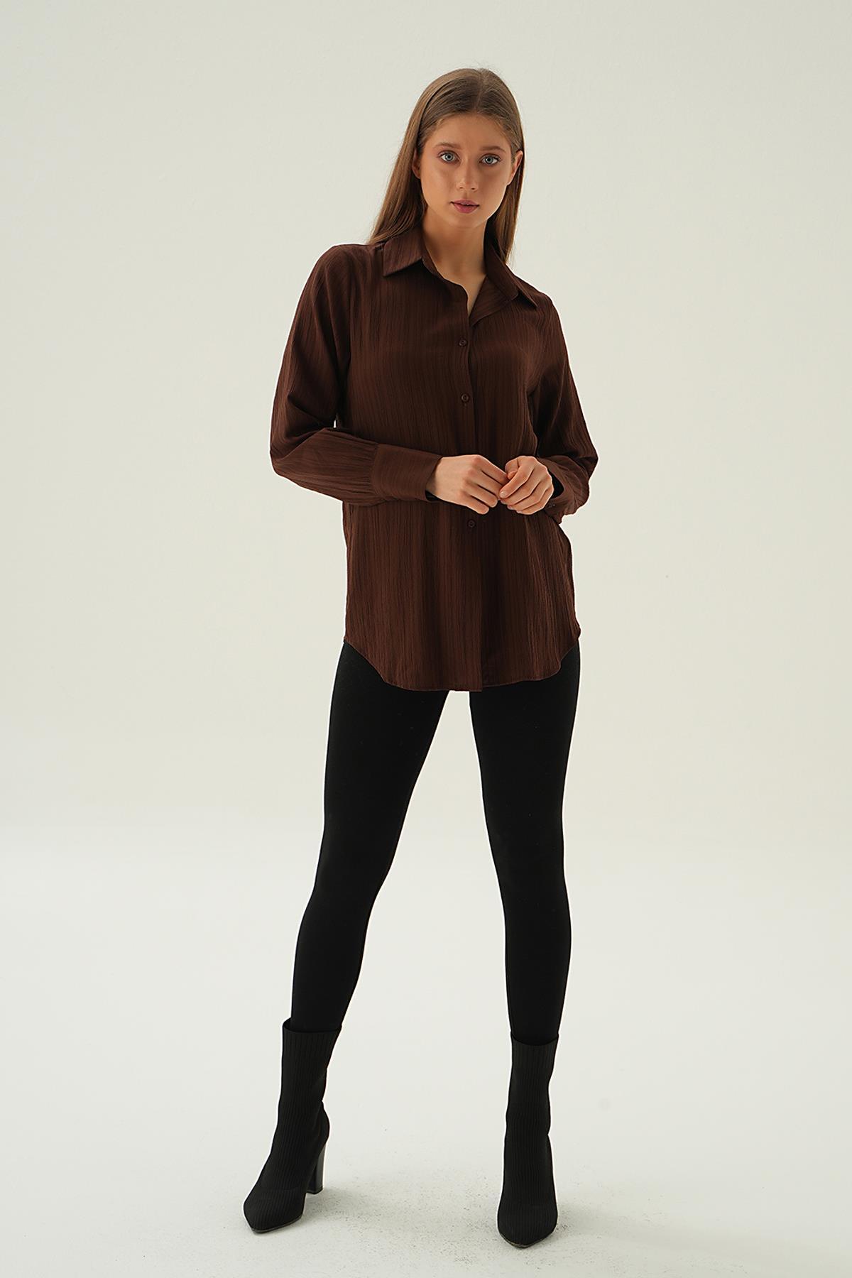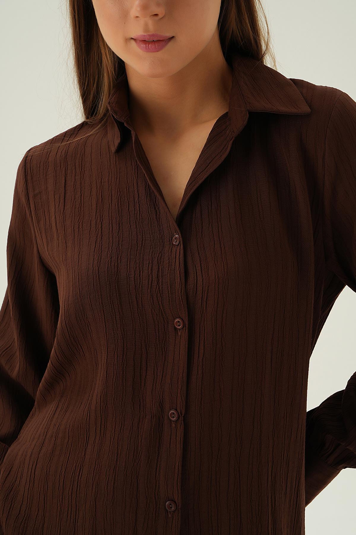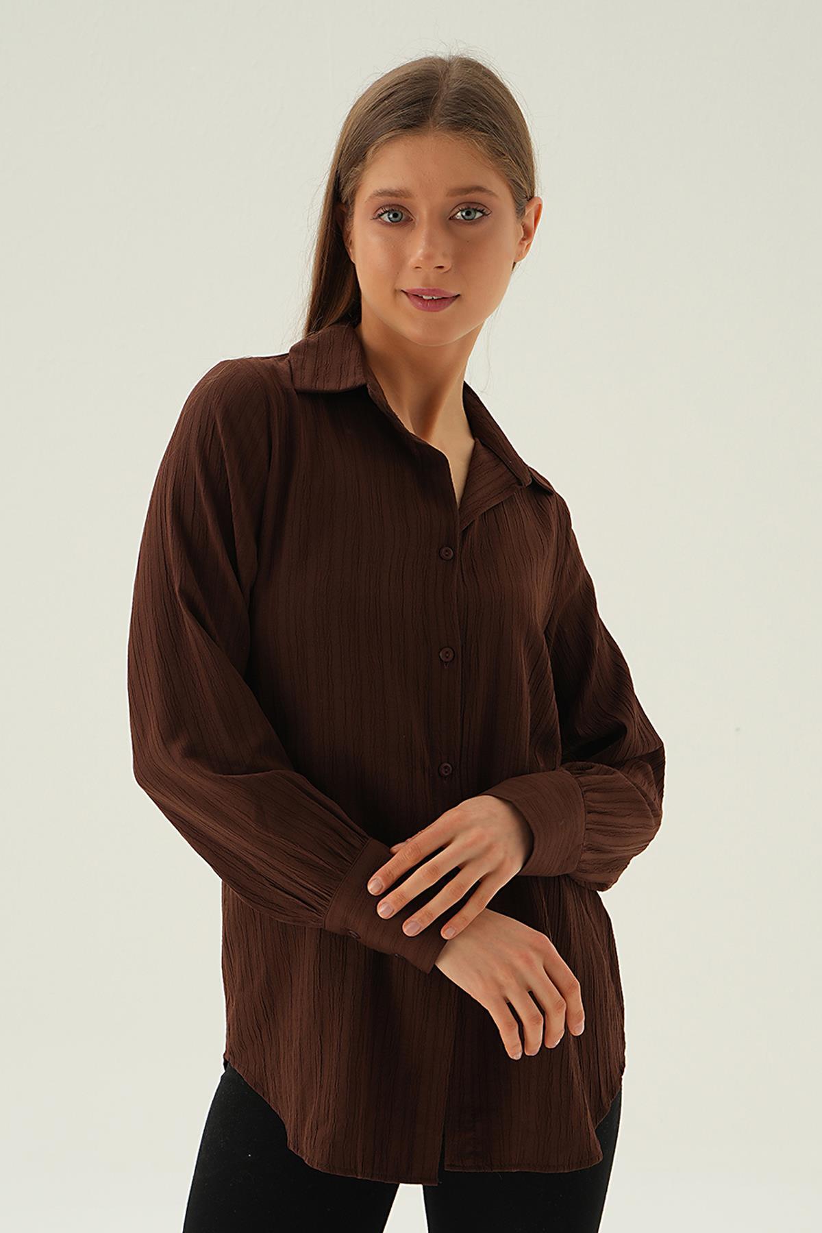 Kahve Kol Düğme Detay Gömlek 6676-1
