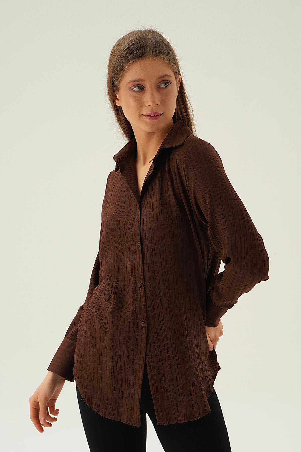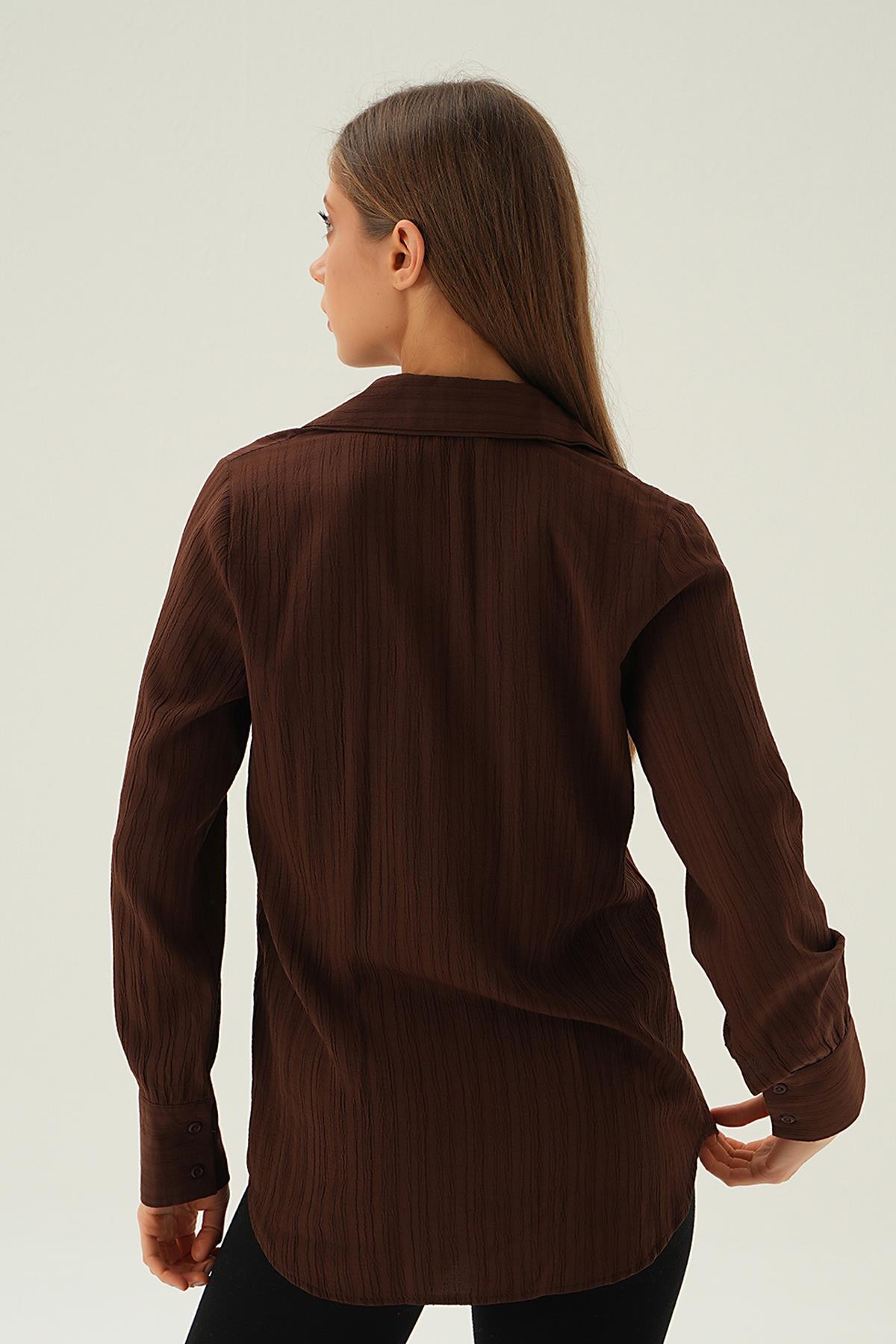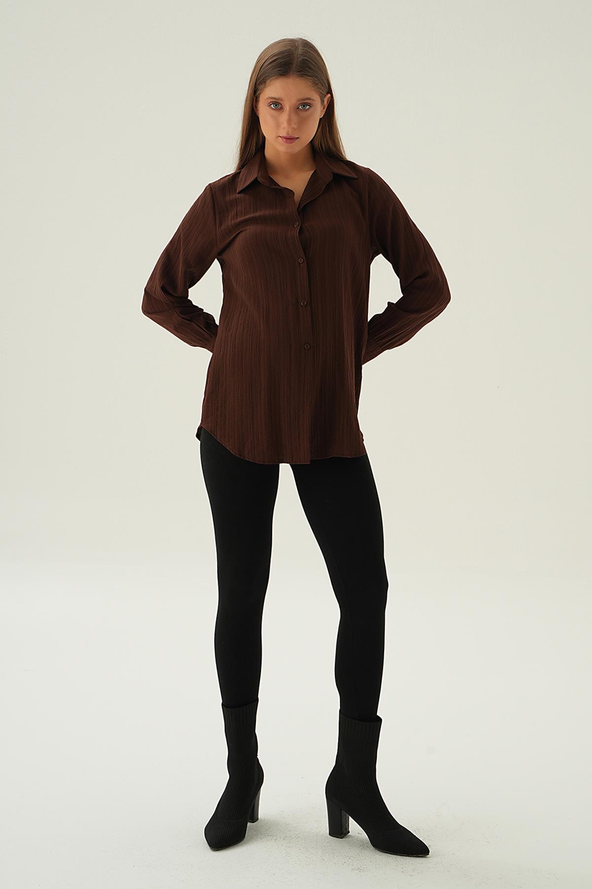 Kahve Kol Düğme Detay Gömlek 6676-1
