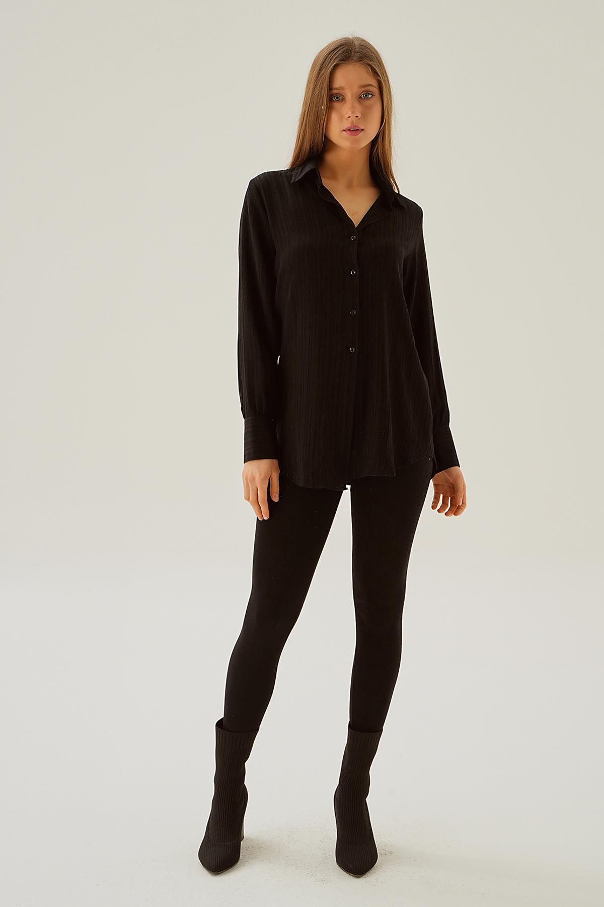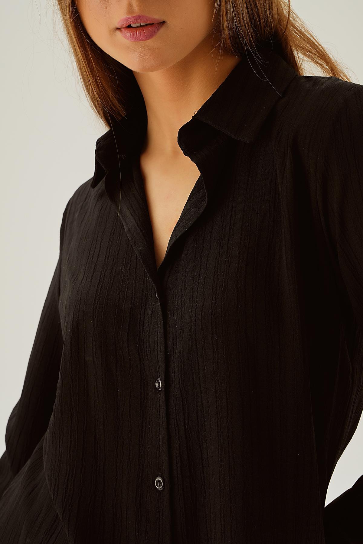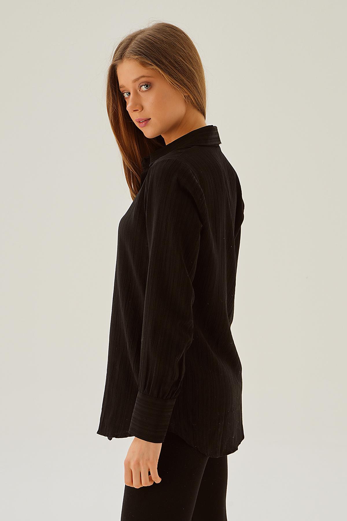 Siyah Kol Düğme Detay Gömlek 6676-1