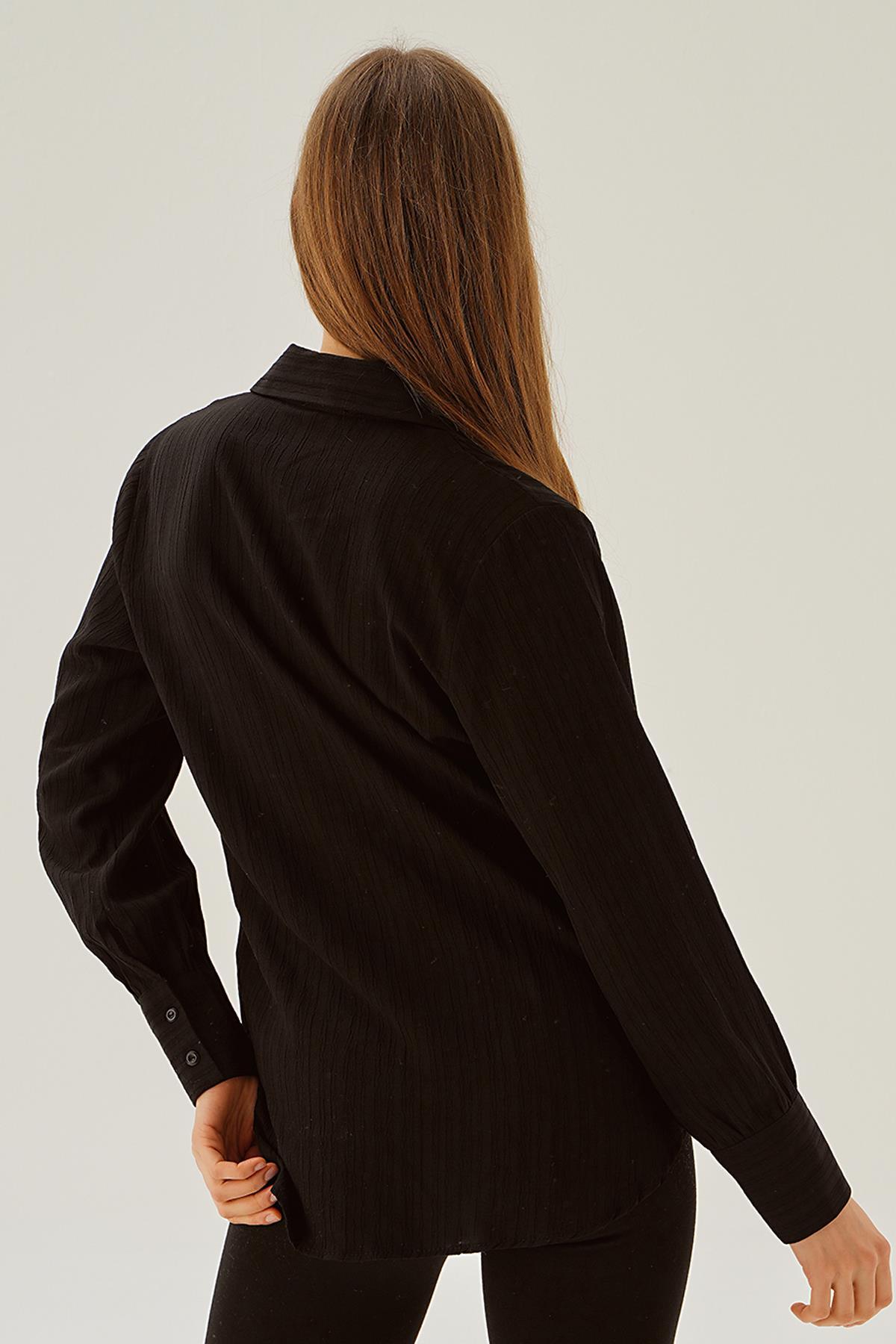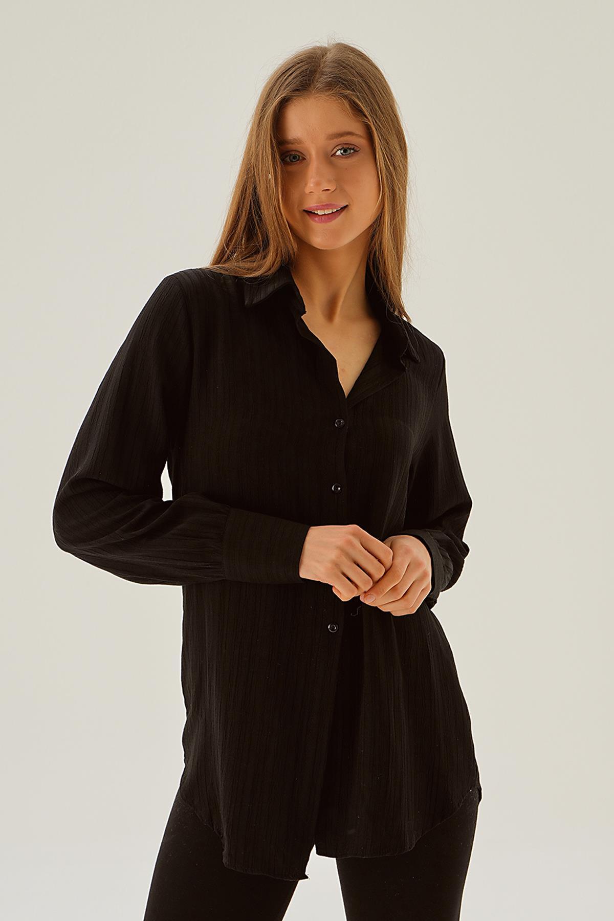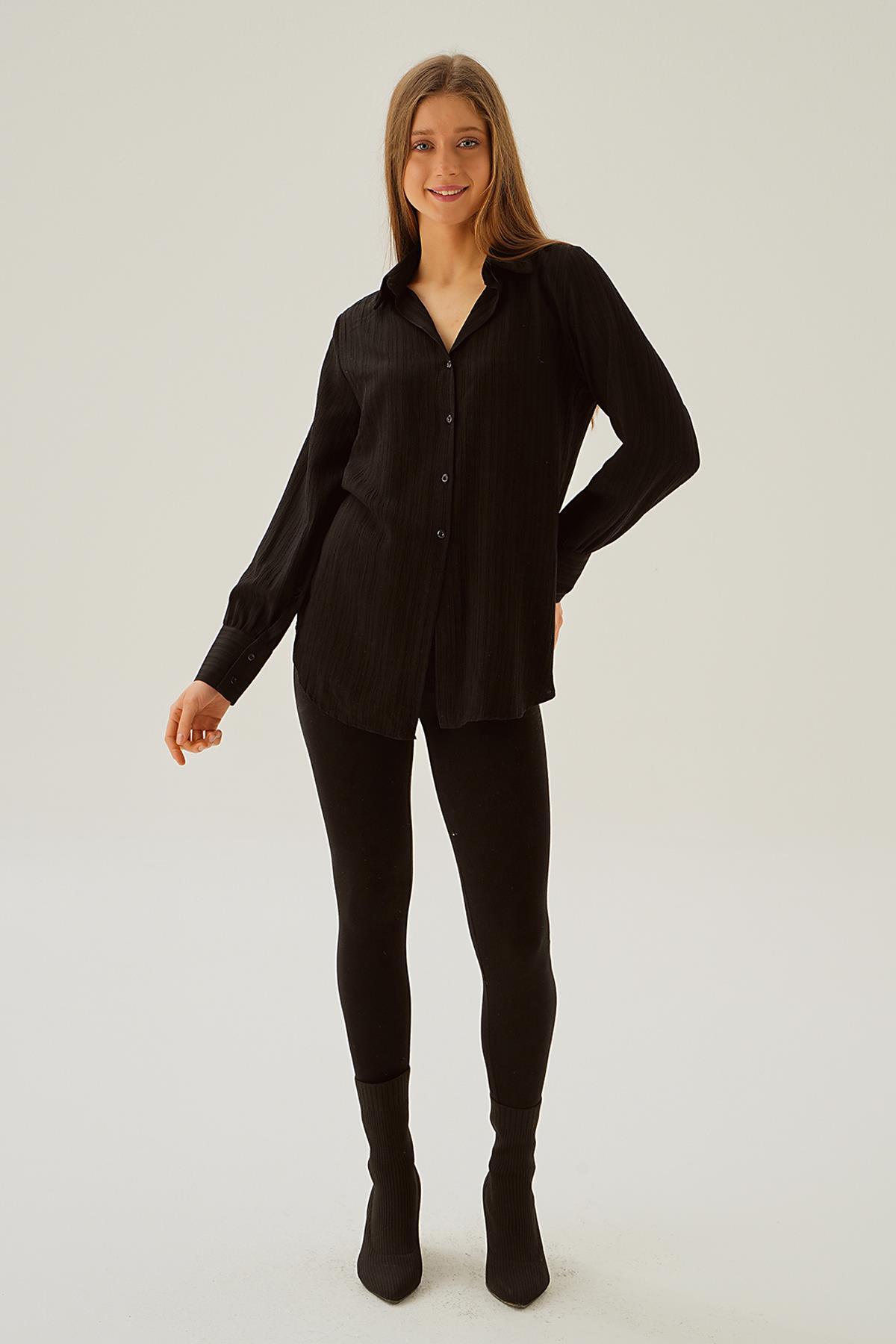 Siyah Kol Düğme Detay Gömlek 6676-1