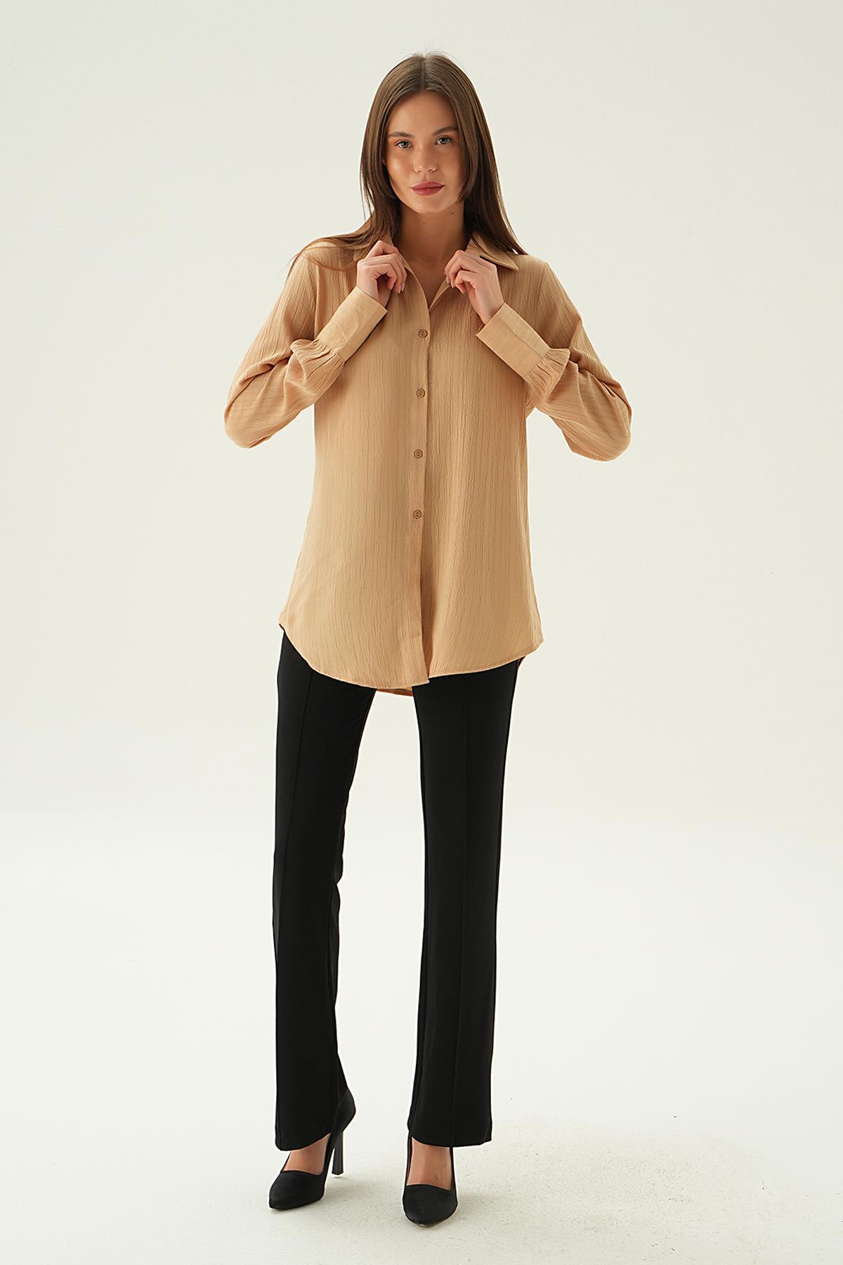 Kahve Çizgili Oversize Gömlek 5460 - RAYS Kahve Çizgili Oversize Gömlek 5460 - RAYS (1)
