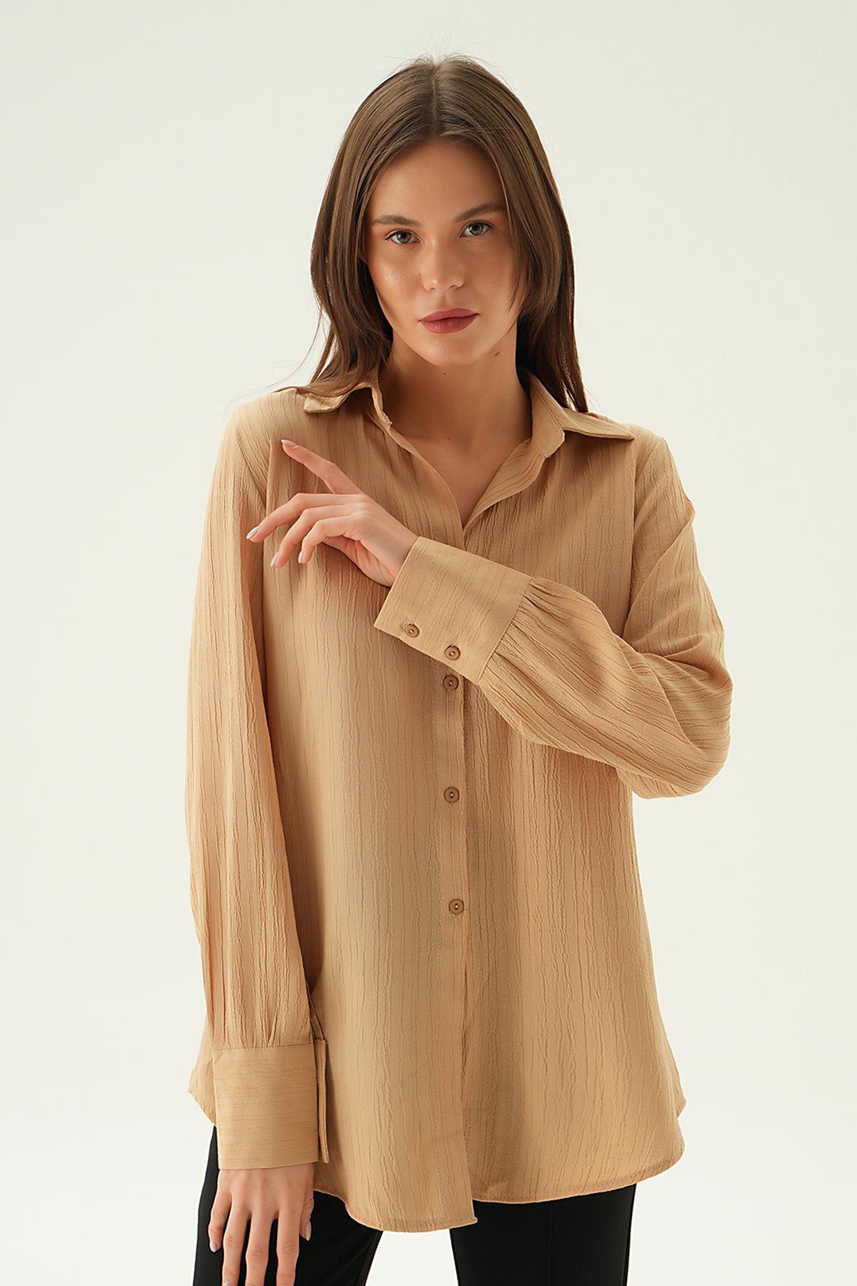 Vizon Çizgili Salaş Gömlek 5475 - RAYS Vizon Çizgili Salaş Gömlek 5475 - RAYS (1)