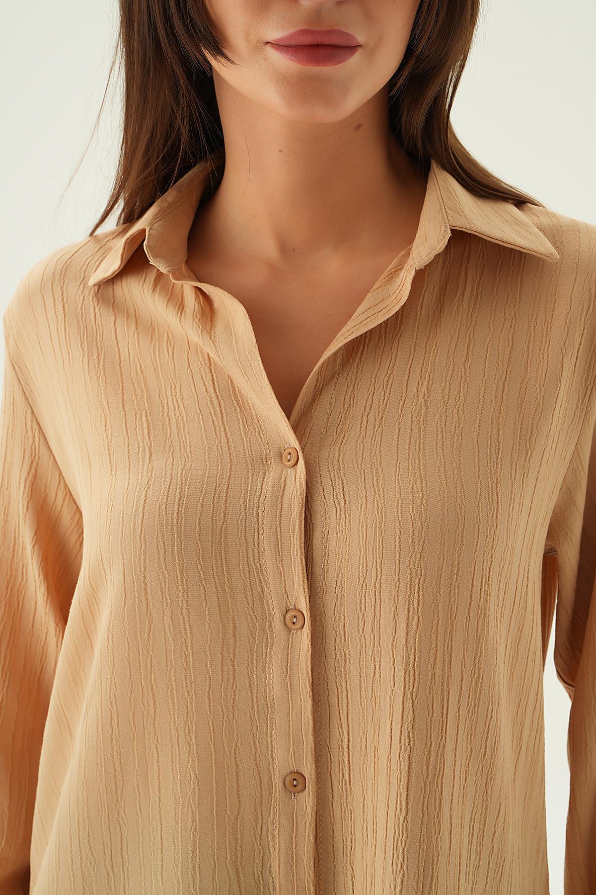 Vizon Kol Düğme Detay Gömlek 6676-1
