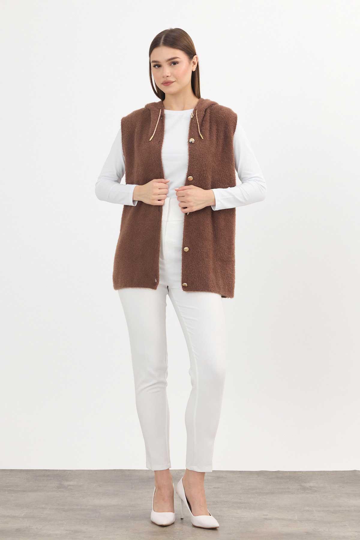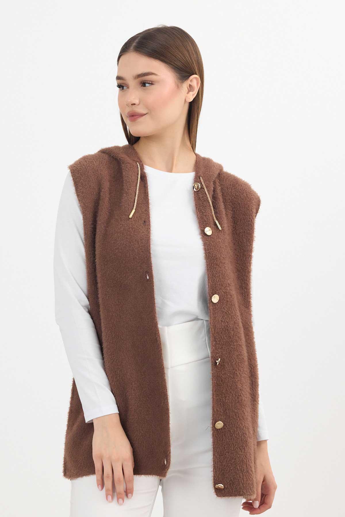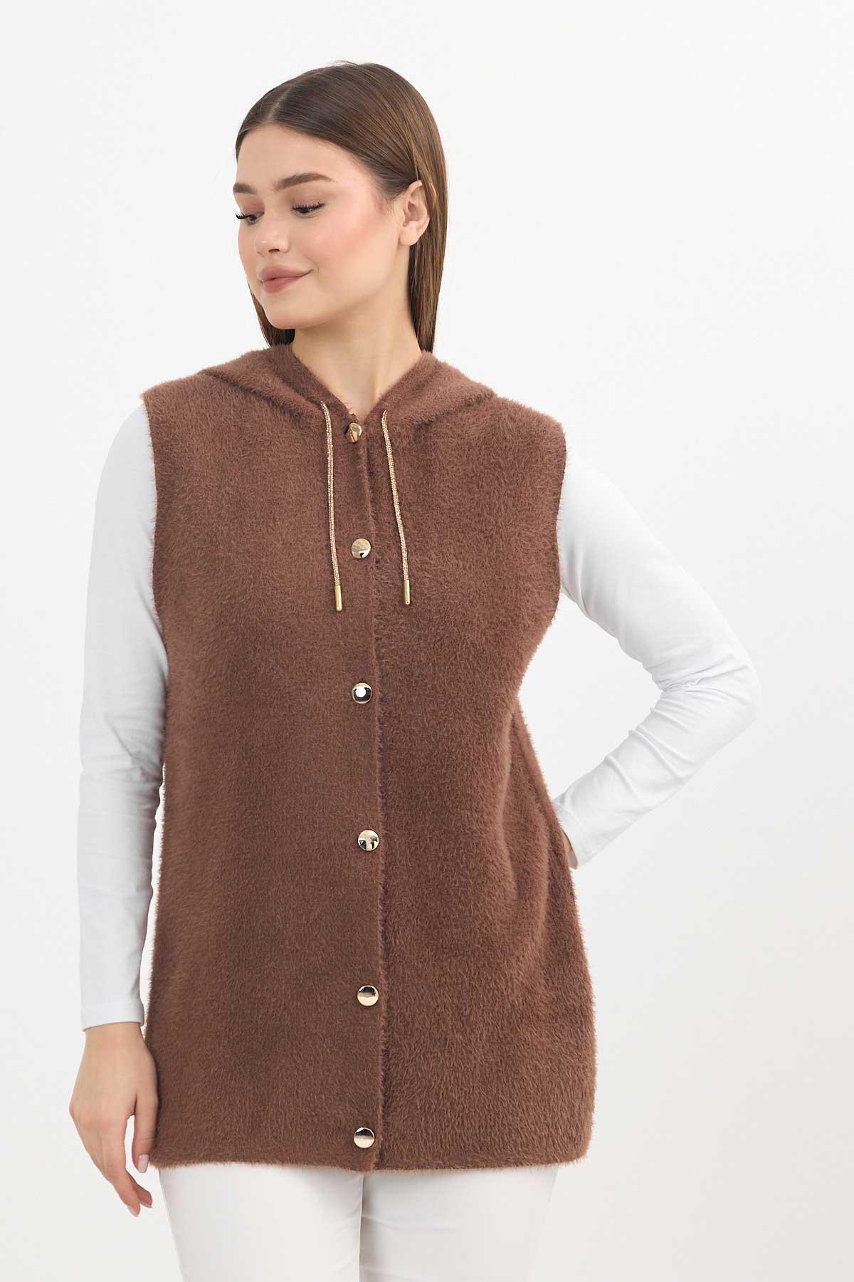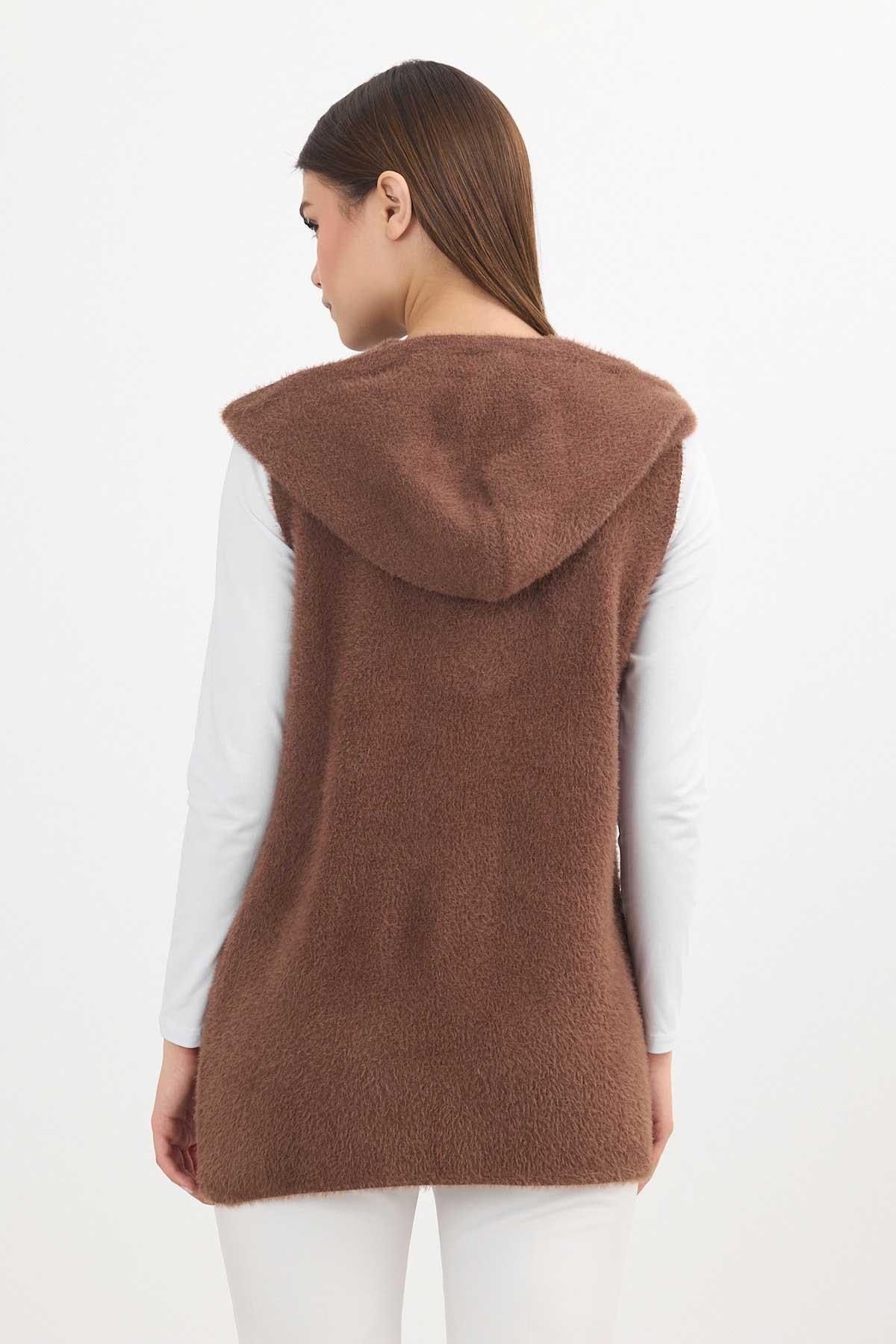Kahve Kapüşonlu Yumoş Yelek 6681